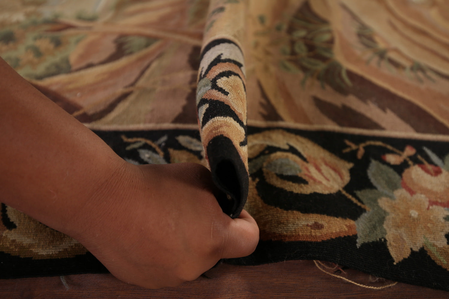 A Beautiful Genuine France Tapestries rug is Hand Woven by skillful weavers in France with 100% Wool Material. This rug is in New, First Quality condition. dimensions are 5' 11'' X 4' 9'' in foot and 180 X 145 in centimeter. the primary color is Beige & Ivories.