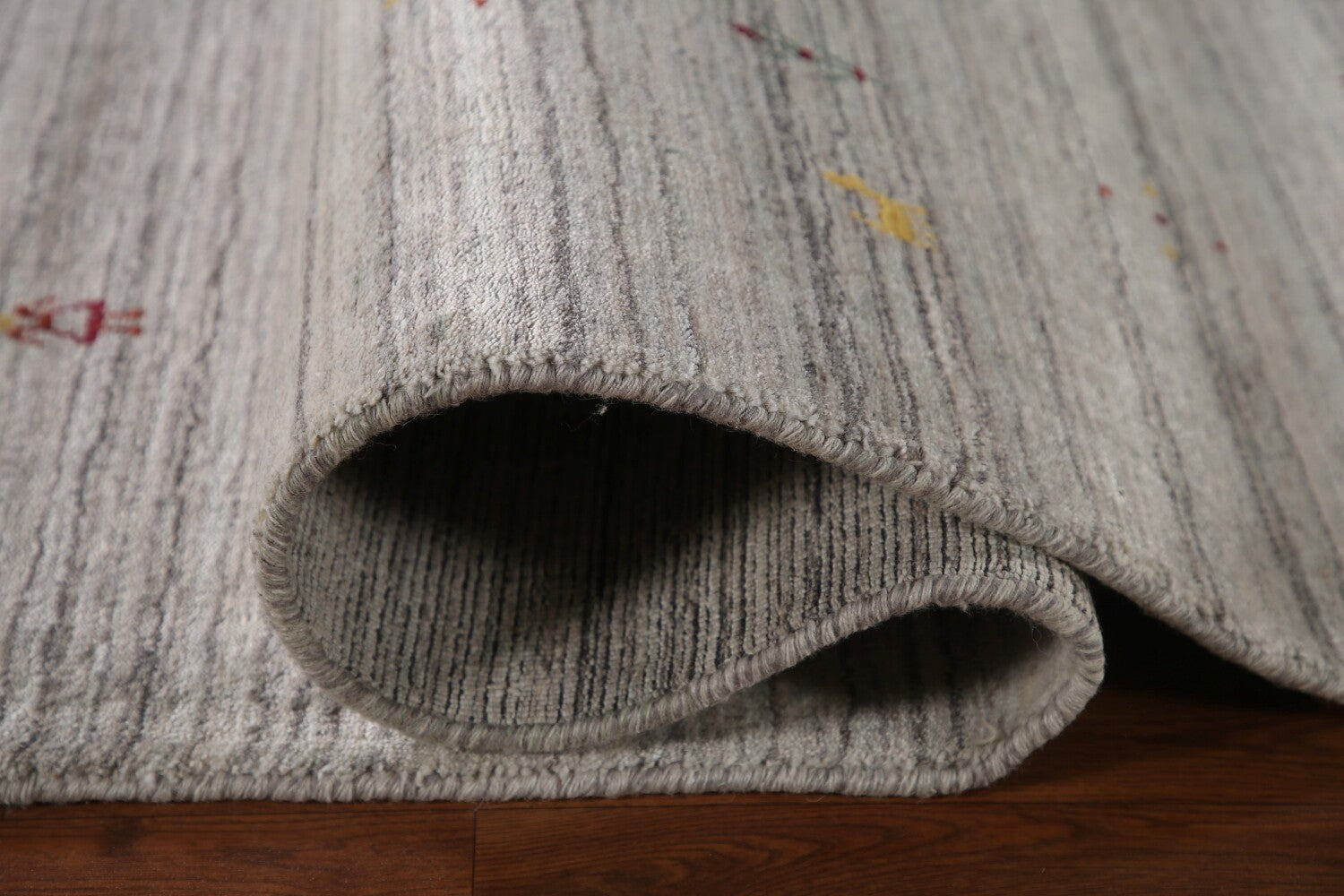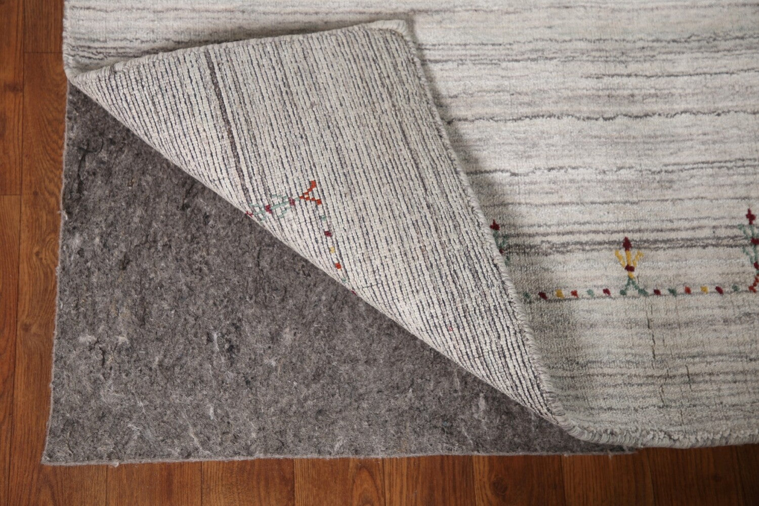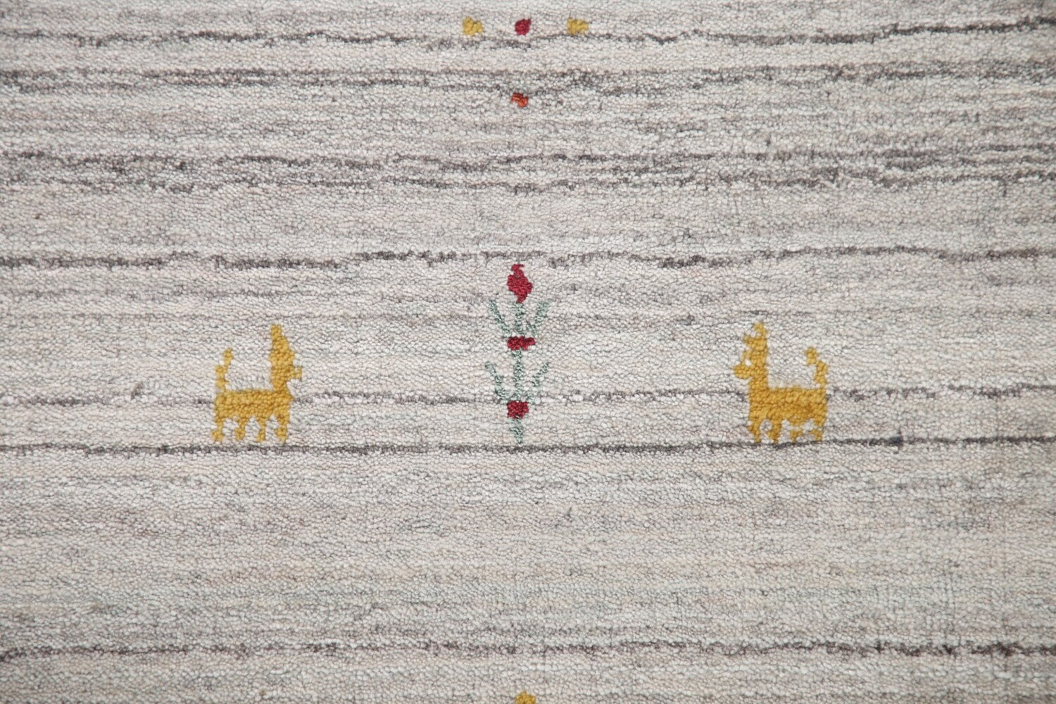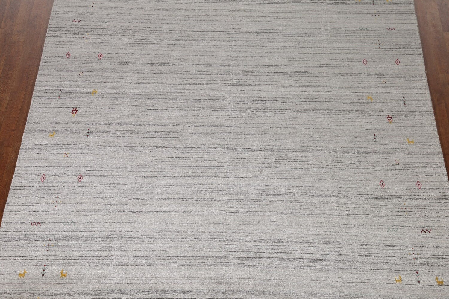 A Beautiful Genuine India Gabbeh rug is Hand Knotted by skillful weavers in India with 100% Wool Material. This rug is in New, First Quality condition. dimensions are 9' 11'' X 8' 0'' in foot and 302 X 244 in centimeter. the primary color is Greys & Charcoal.