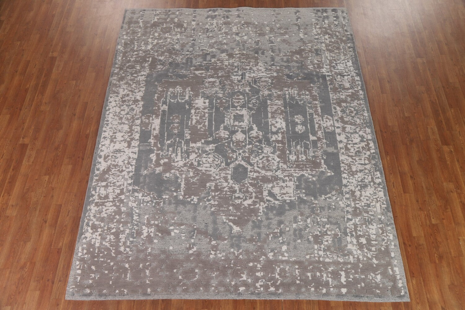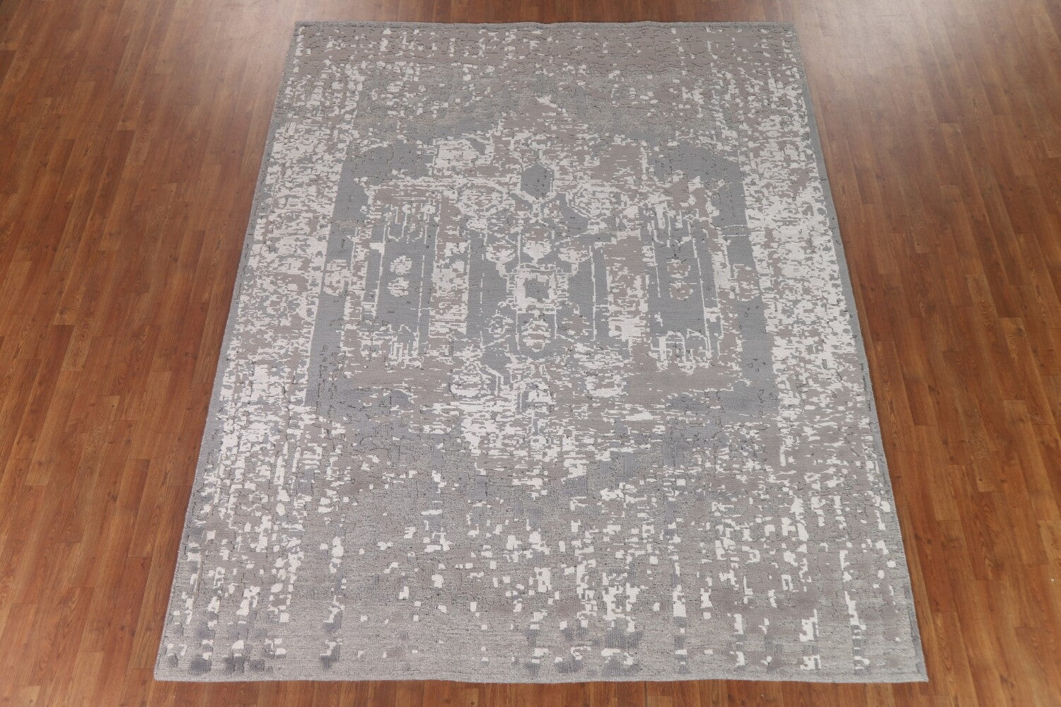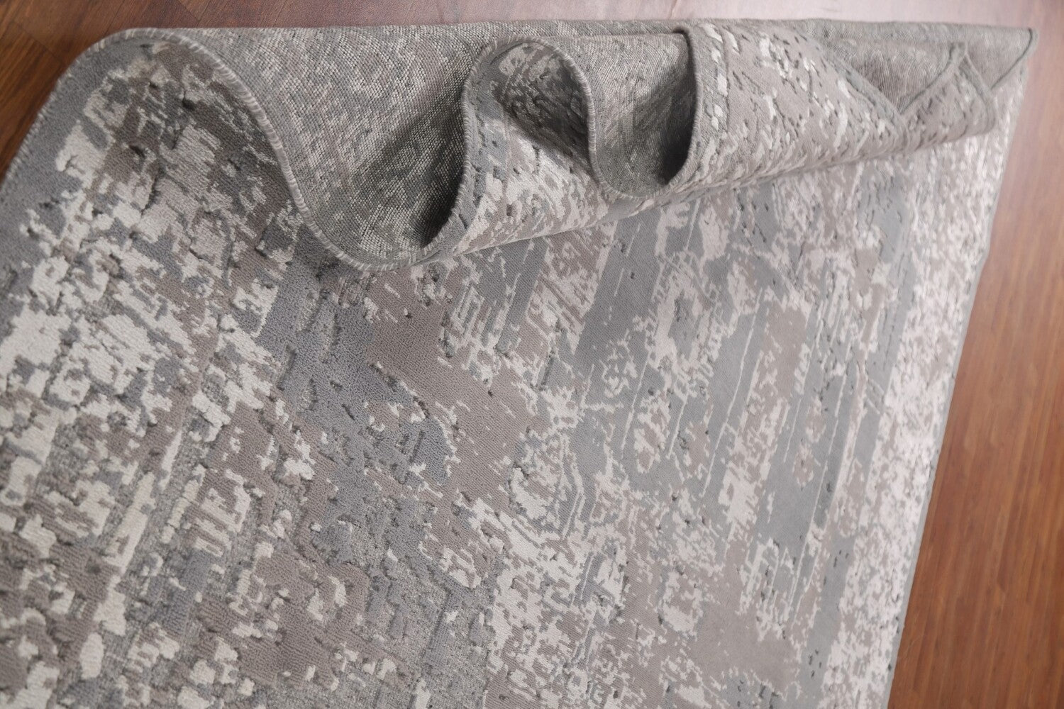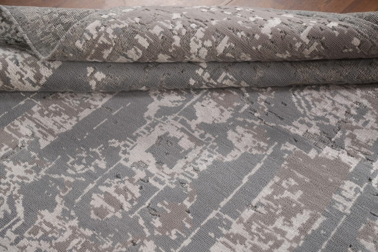 A Beautiful Genuine India Abstract rug is Hand Knotted by skillful weavers in India with 100% Wool Material. This rug is in New, First Quality condition. dimensions are 9' 9'' X 7' 10'' in foot and 297 X 239 in centimeter. the primary color is Greys & Charcoal.