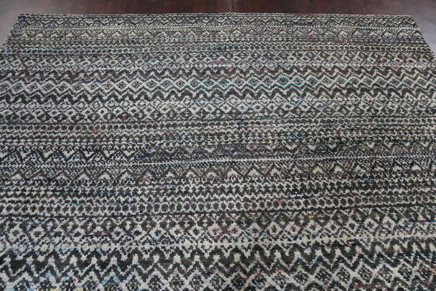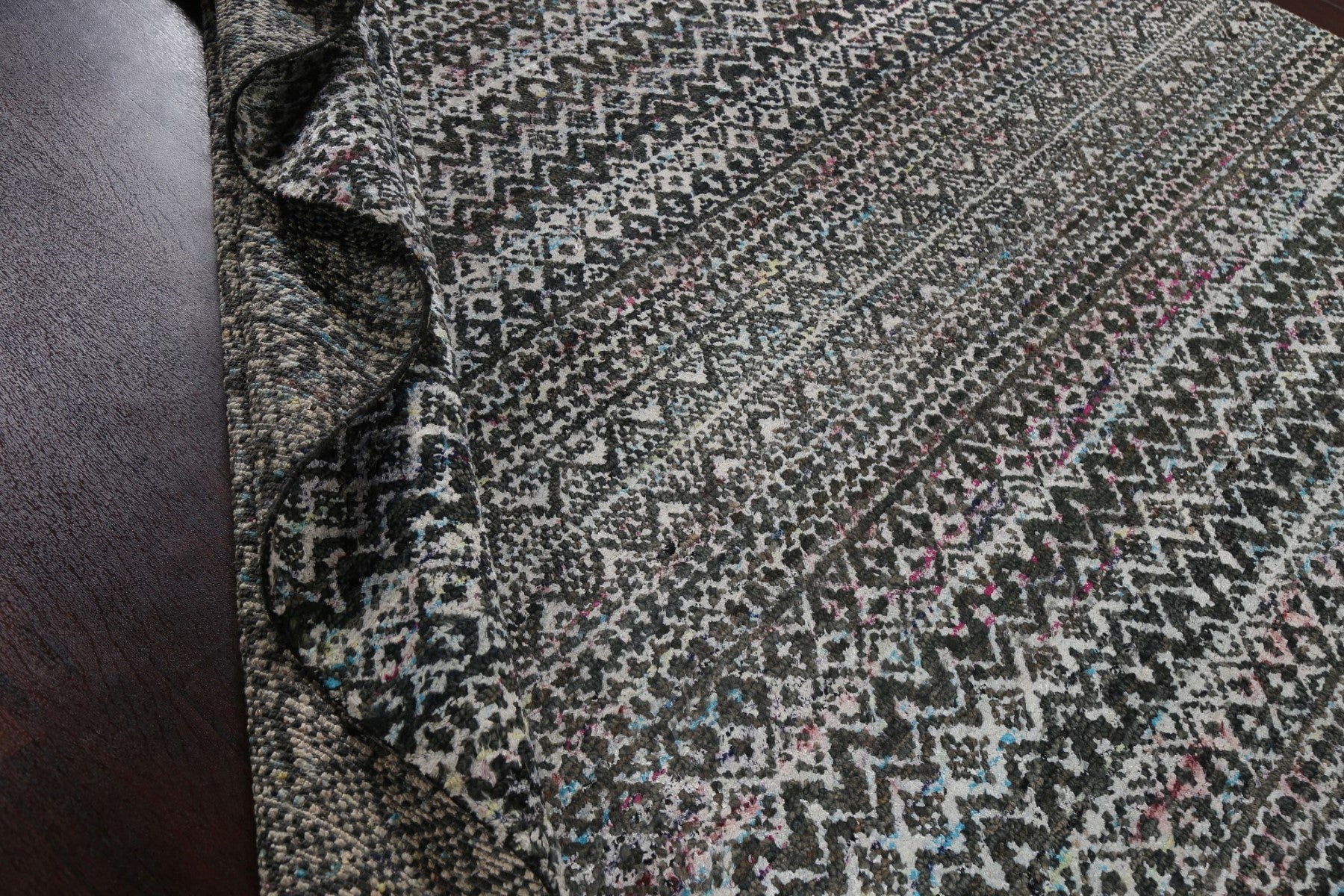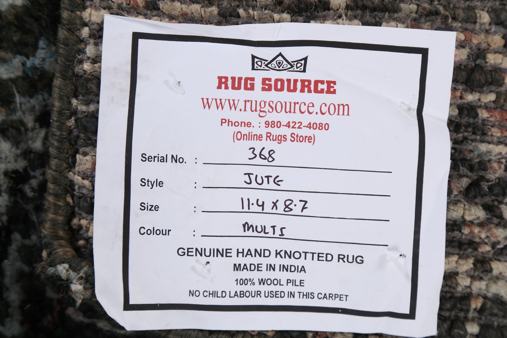 A Beautiful Genuine India Abstract rug is Hand Knotted by skillful weavers in India with Jute Material. This rug is in New, First Quality condition. dimensions are 11' 4'' X 8' 7'' in foot and 345 X 262 in centimeter. the primary color is Beige & Ivories.