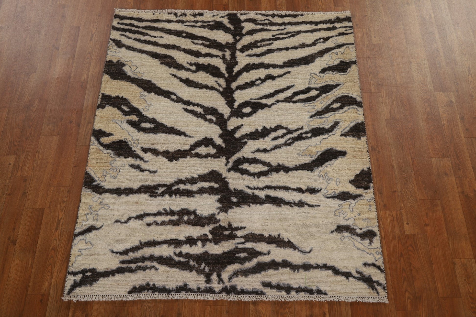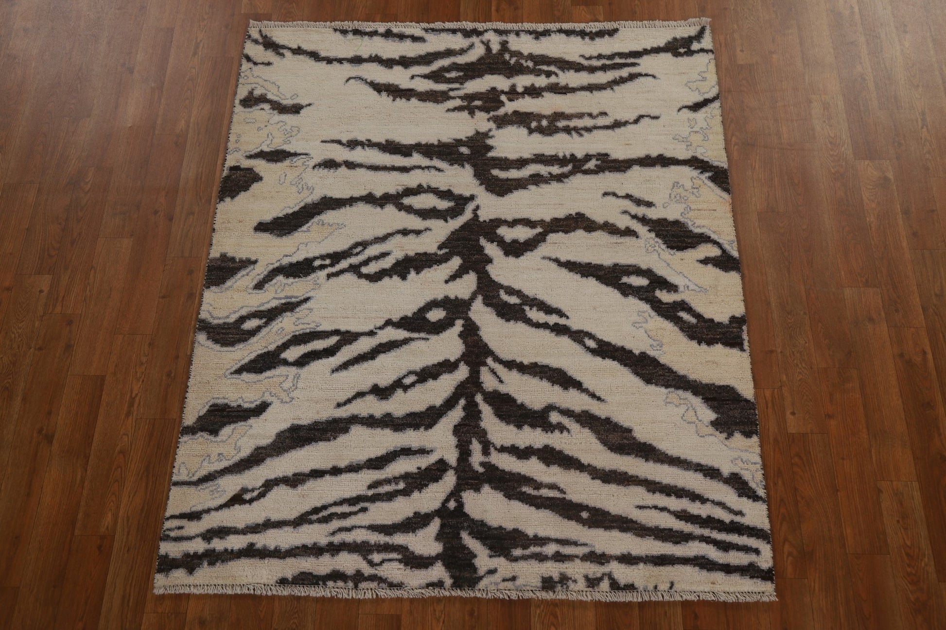 A Beautiful Genuine Turkey Abstract rug is Hand Knotted by skillful weavers in Turkey with 100% Wool Material. This rug is in New, First Quality condition. dimensions are 4' 9'' X 4' 0'' in foot and  145 X 122 in centimeter. the primary color is Beige & Ivories.