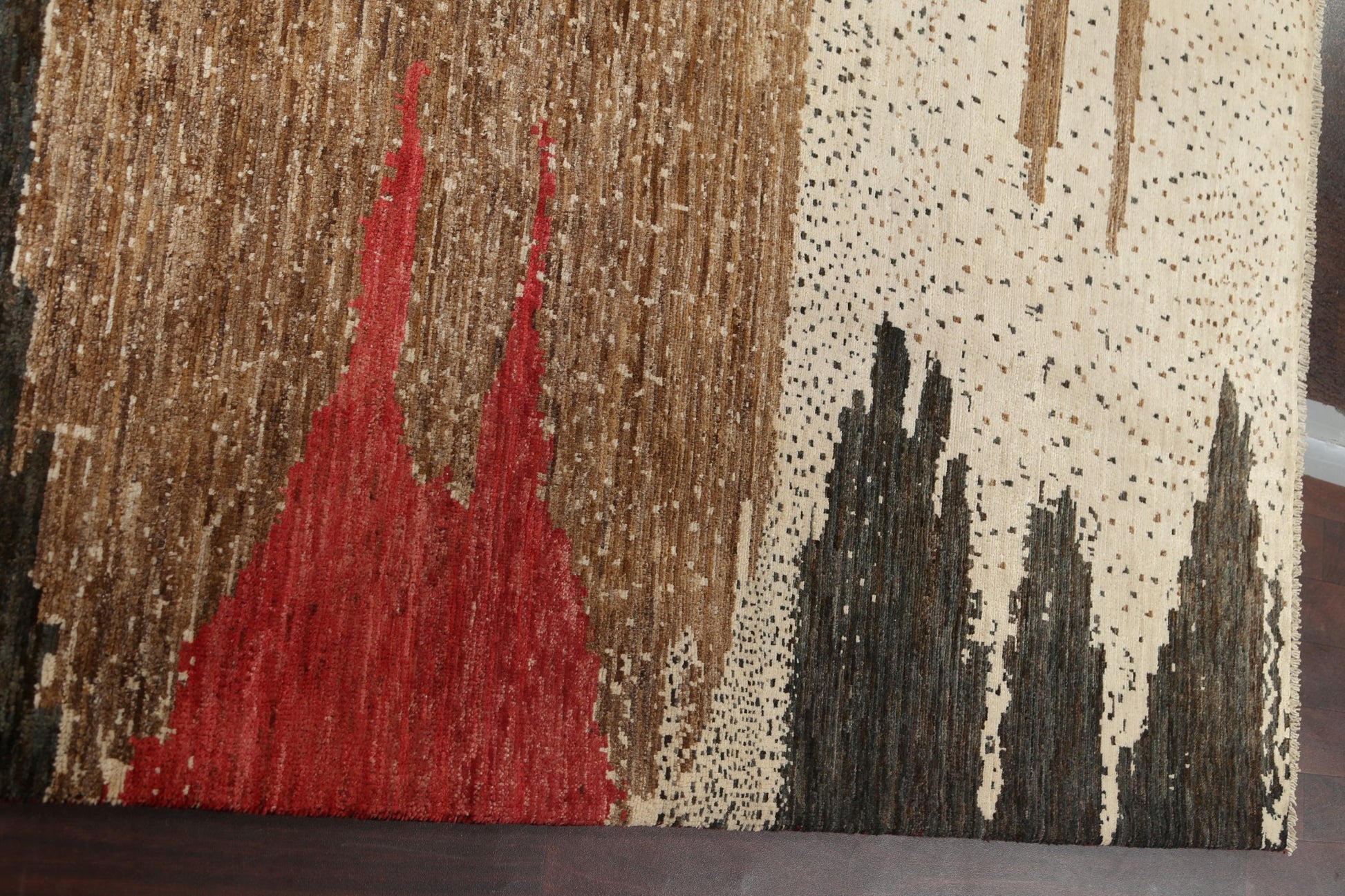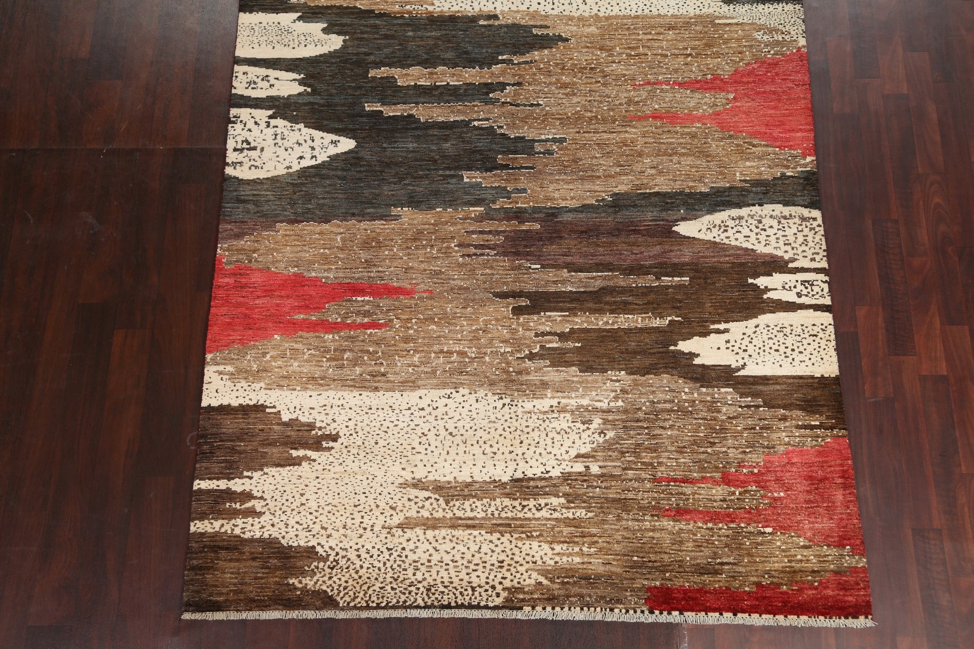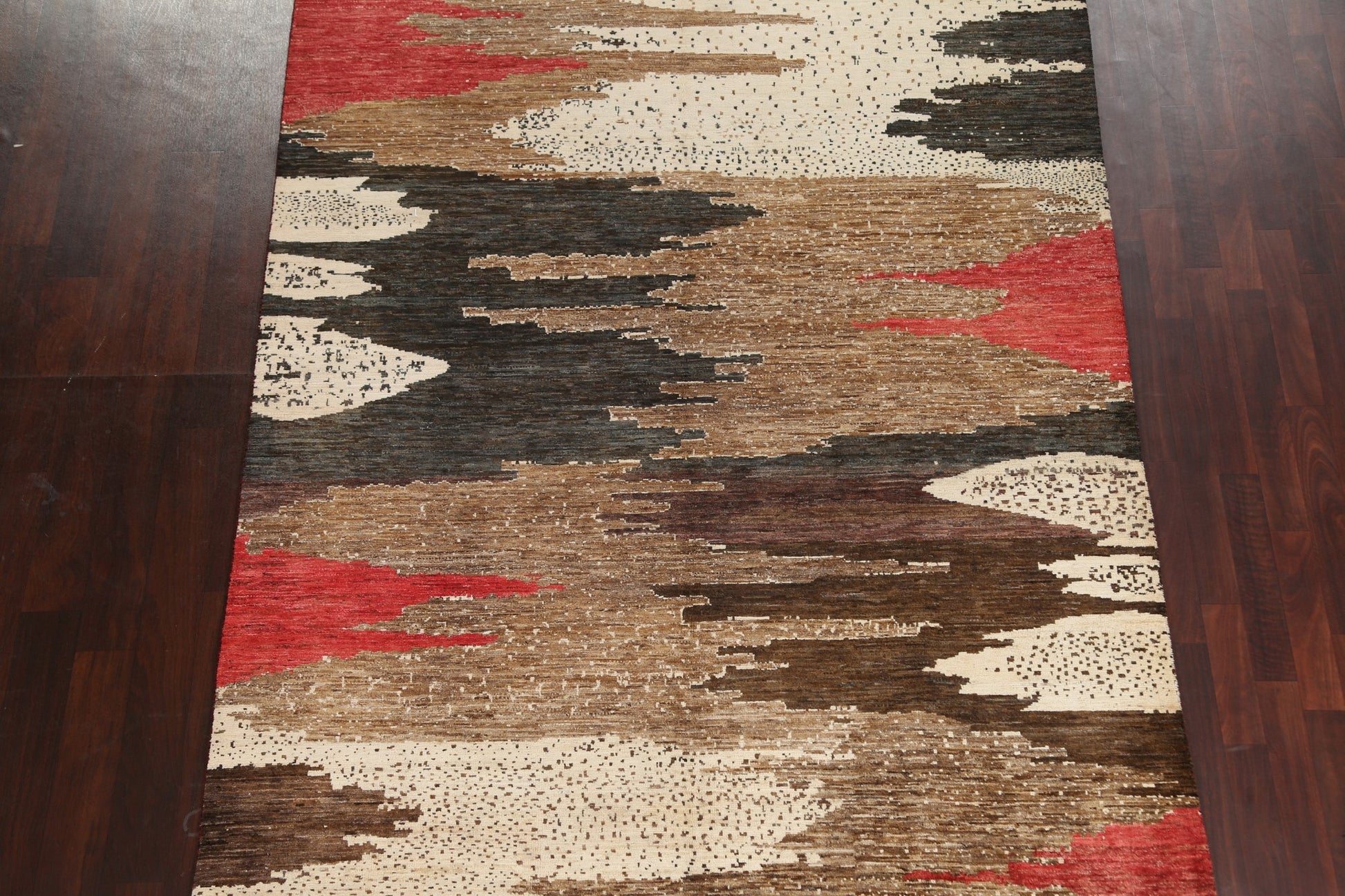 A Beautiful Genuine Pakistan Abstract rug is Hand Knotted by skillful weavers in Pakistan with 100% Wool Material. This rug is in New, First Quality condition. dimensions are 9' 7'' X 6' 5'' in foot and 292 X 196 in centimeter. the primary color is Multi-Colored.