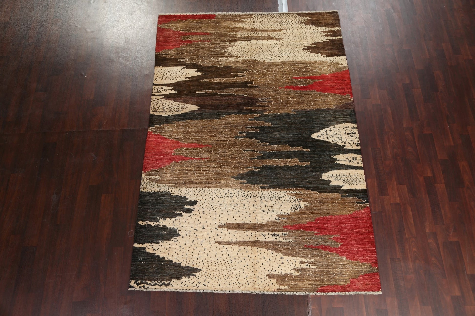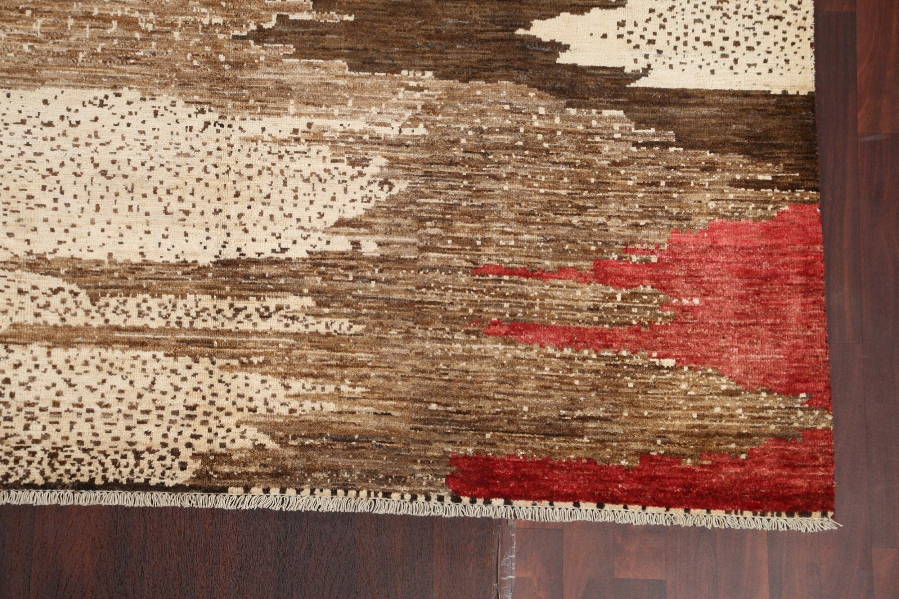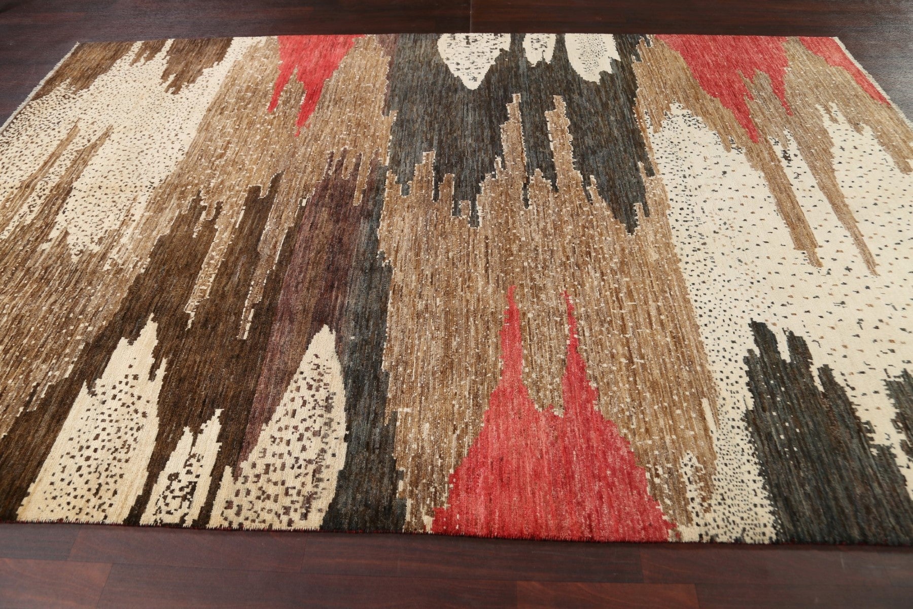 A Beautiful Genuine Pakistan Abstract rug is Hand Knotted by skillful weavers in Pakistan with 100% Wool Material. This rug is in New, First Quality condition. dimensions are 9' 7'' X 6' 5'' in foot and 292 X 196 in centimeter. the primary color is Multi-Colored.