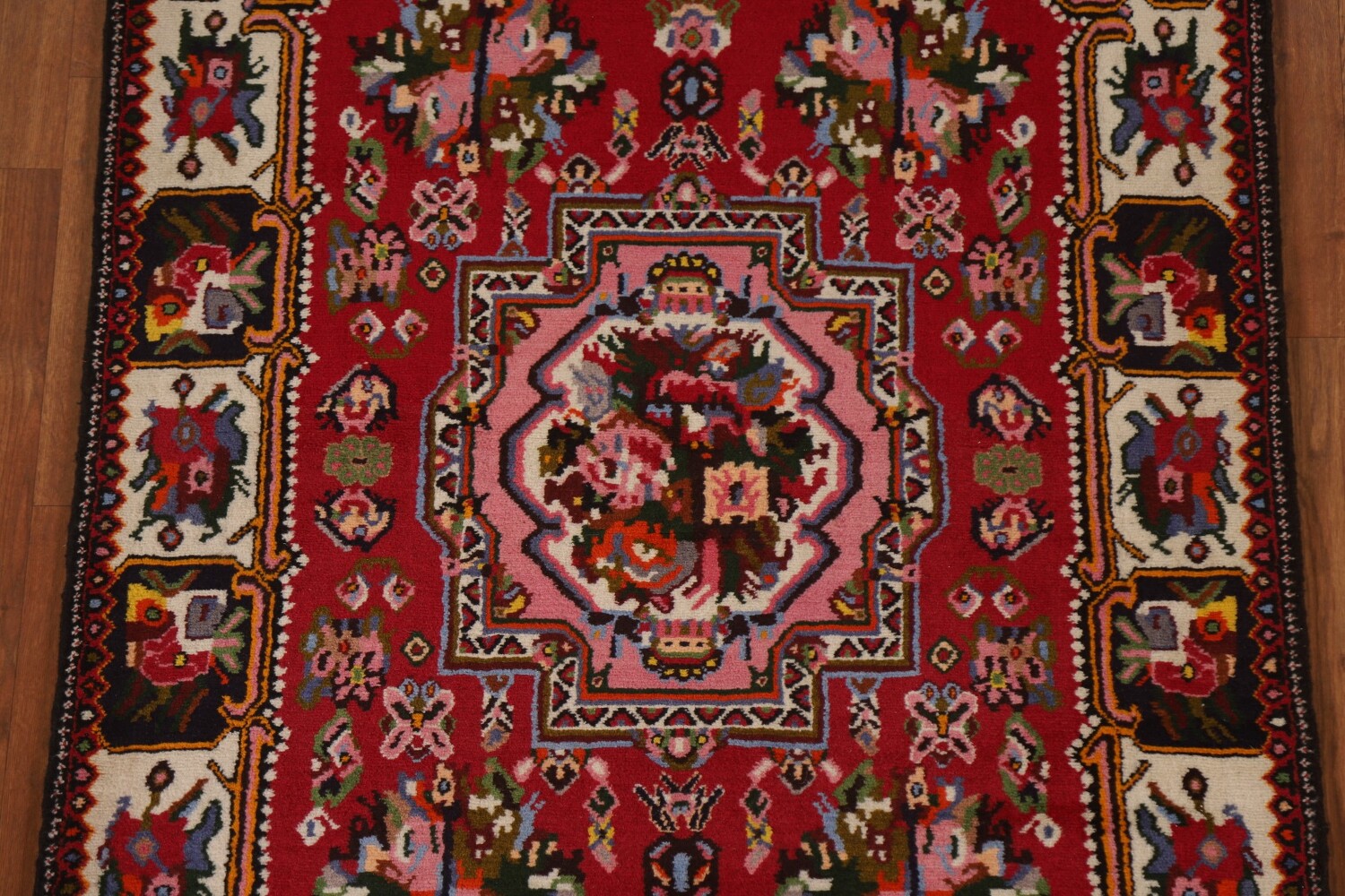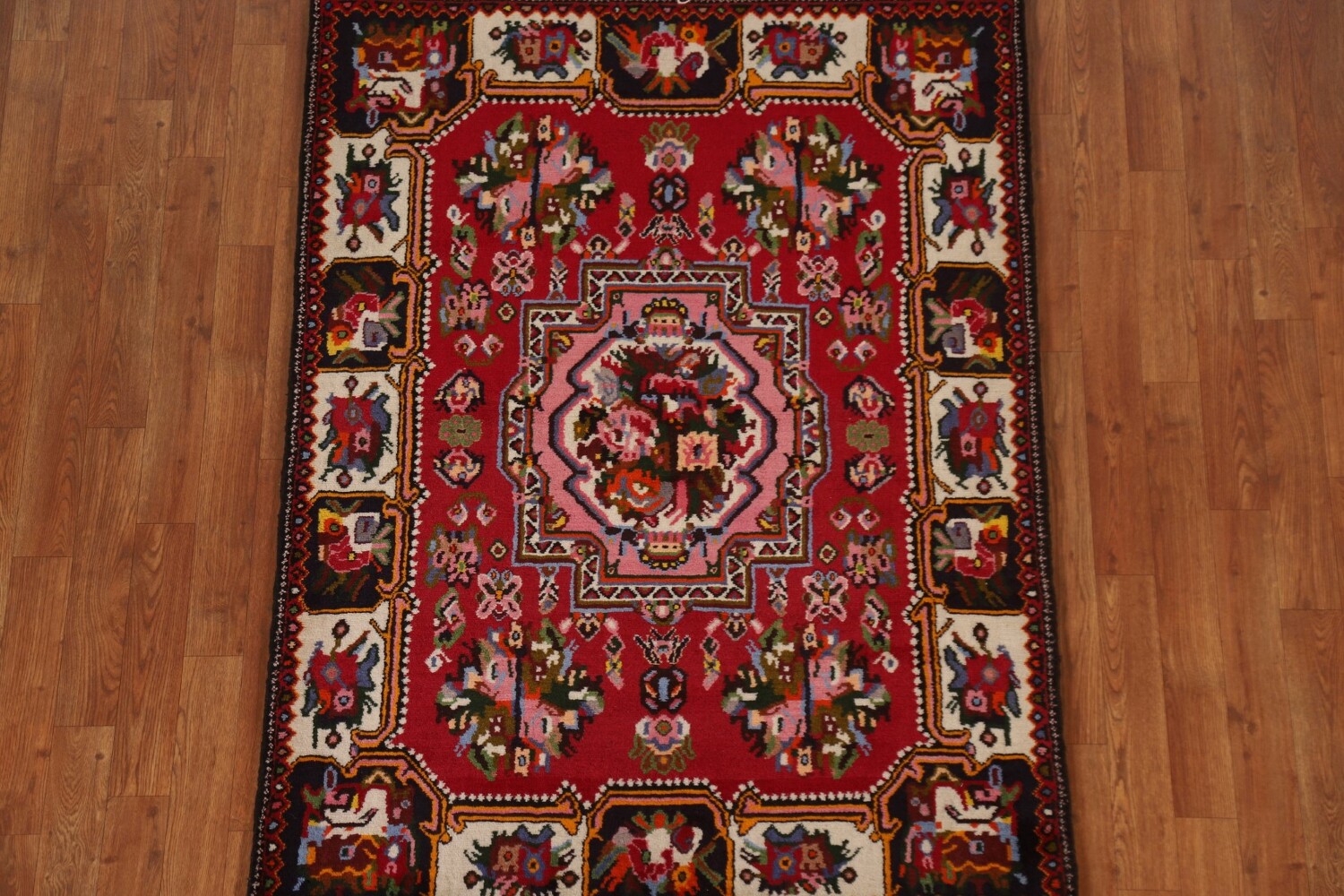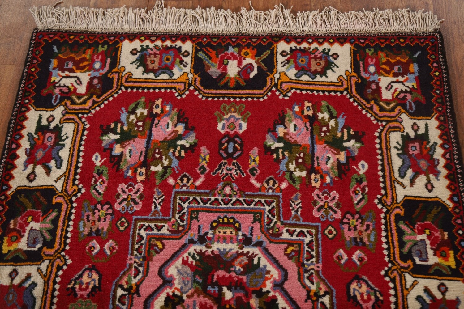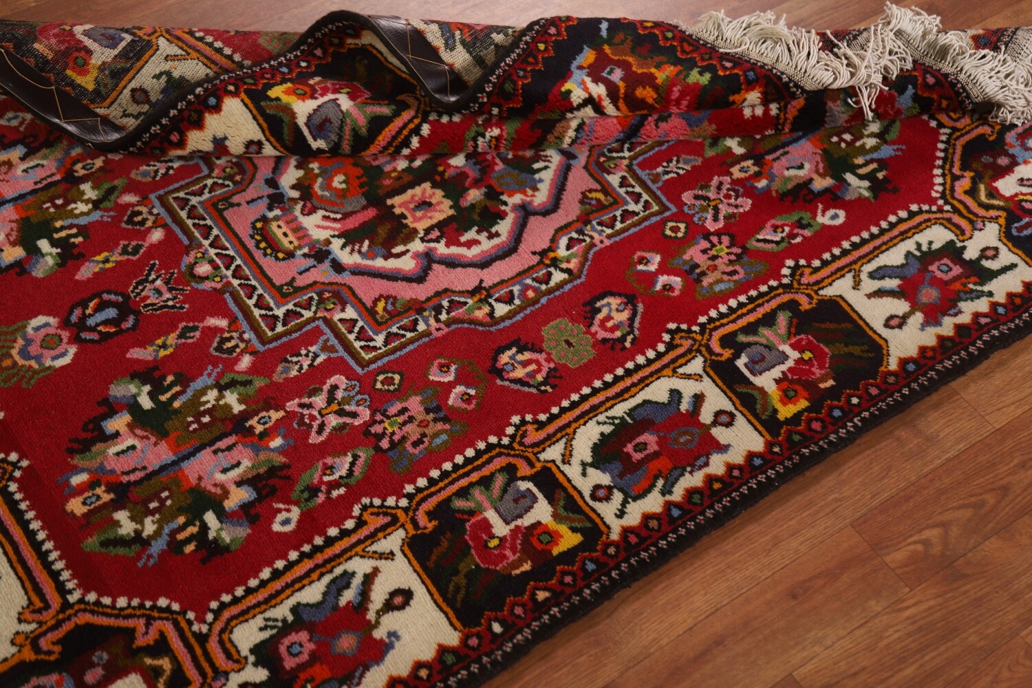 A Beautiful Genuine Persia ( Persia ) Bakhtiari rug is Hand Knotted by skillful weavers in Persia ( Persia ) with 100% Wool Material. This rug is in New, First Quality condition. dimensions are 4' 10'' X 3' 8'' in foot and 147 X 112 in centimeter. the primary color is Red.