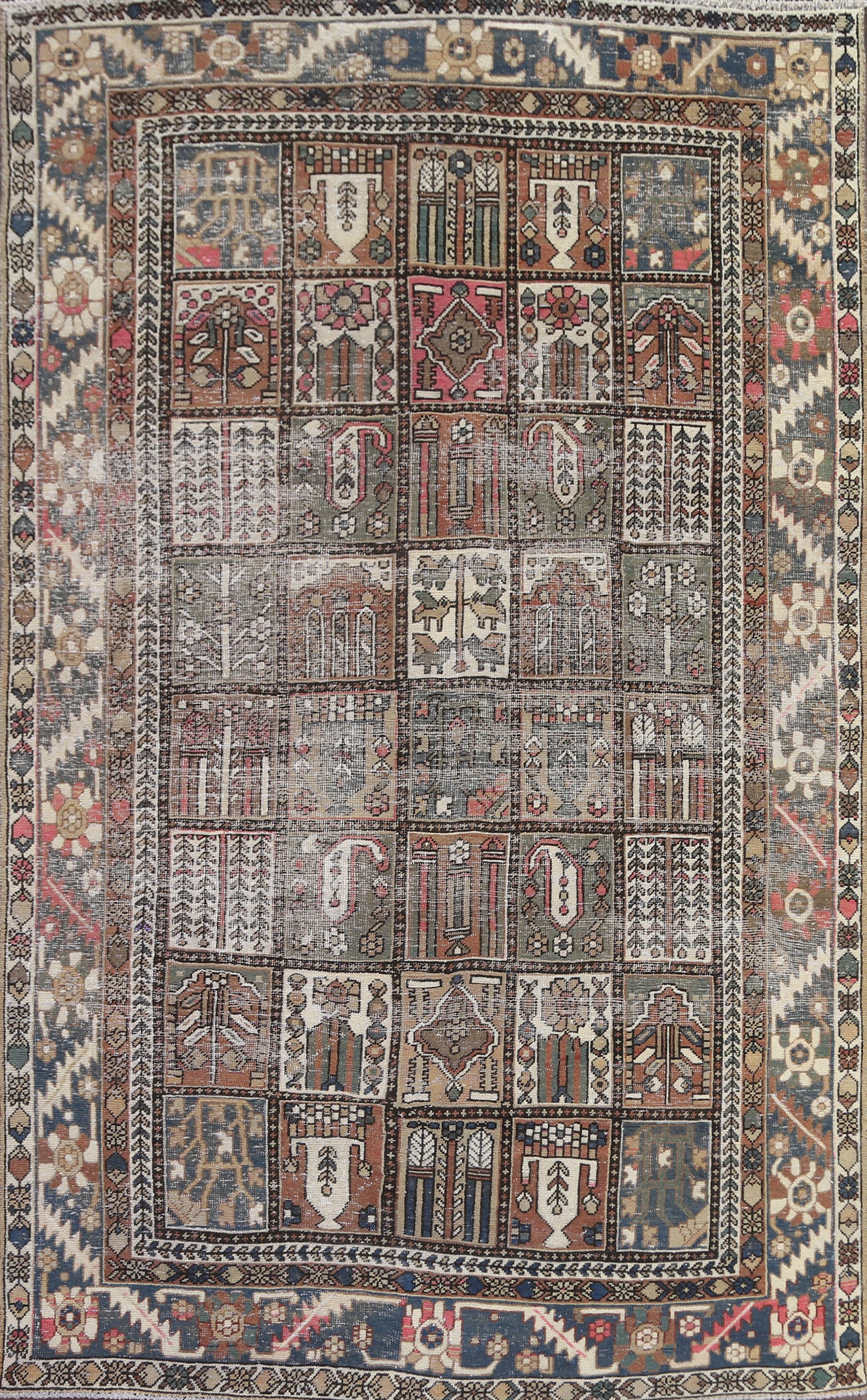 A Beautiful Genuine Persia ( Persia ) Bakhtiari rug is Hand Knotted by skillful weavers in Persia ( Persia ) with 100% Wool Material. This rug is in Good (Evenly Low Pile) condition. dimensions are 9' 11'' X 6' 5'' in foot and 302 X 196 in centimeter. the primary color is Multi-Colored.