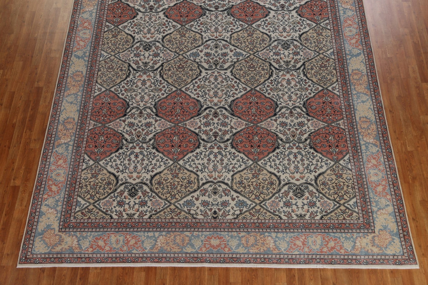 A Beautiful Genuine Turkey Bakhtiari rug is Hand Knotted by skillful weavers in Turkey with 100% Wool Material. This rug is in New, First Quality condition. dimensions are 12' 9'' X 9' 10'' in foot and 389 X 300 in centimeter. the primary color is Beige & Ivories.