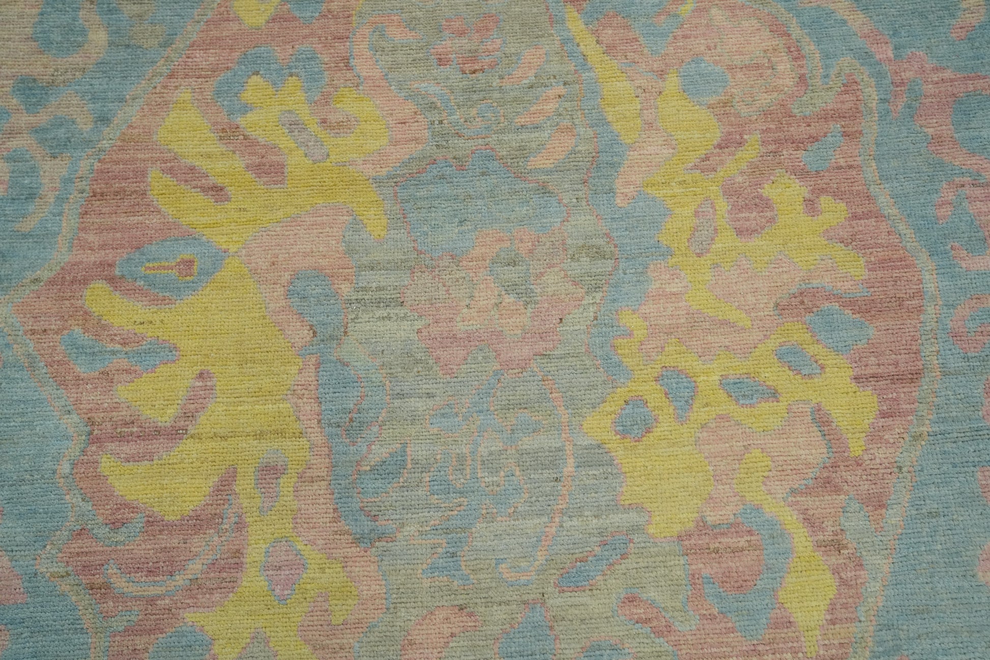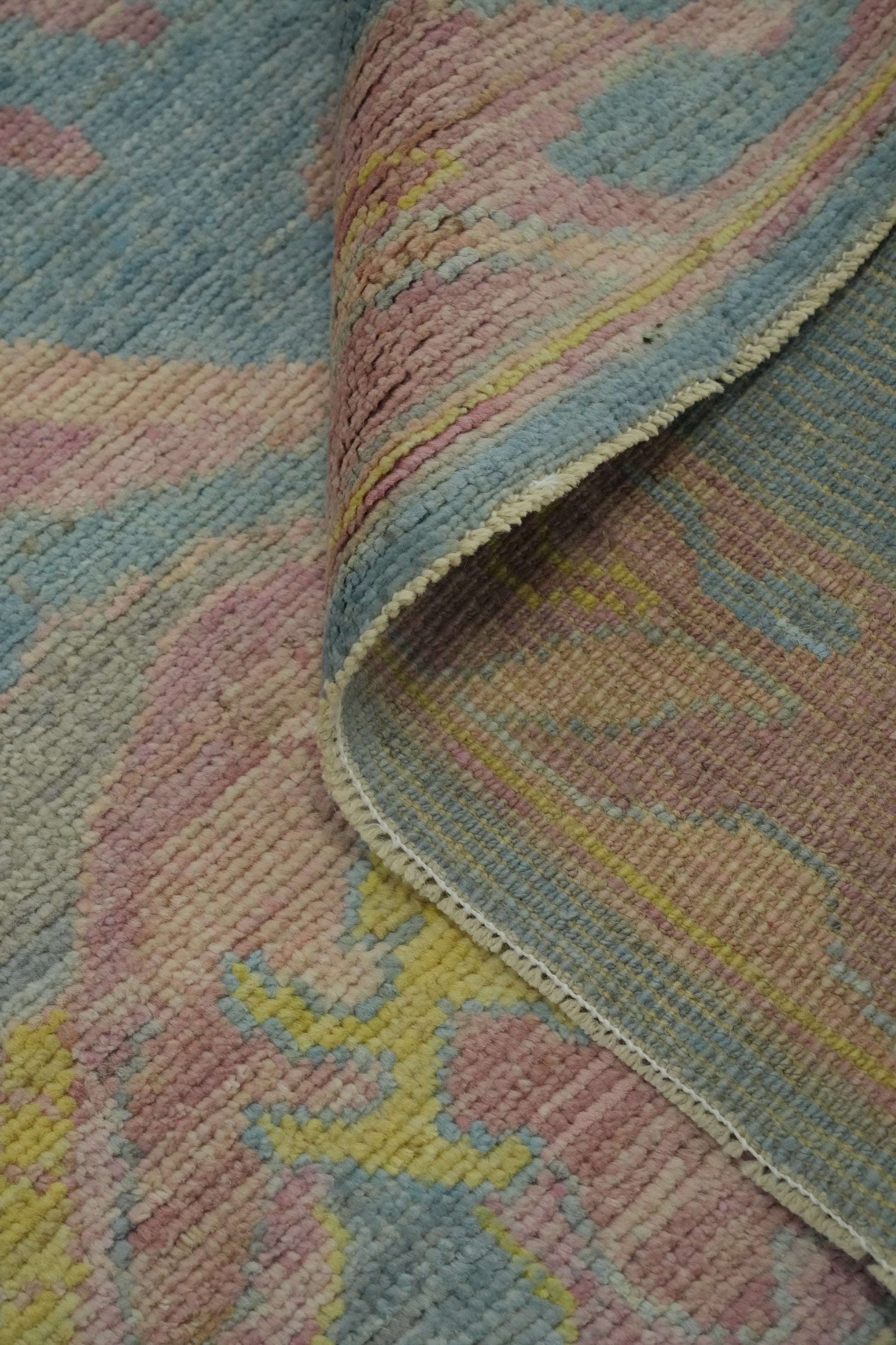 Handmade Blue Floral Oushak Vegetable Dye Area Rug 9x12