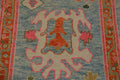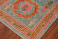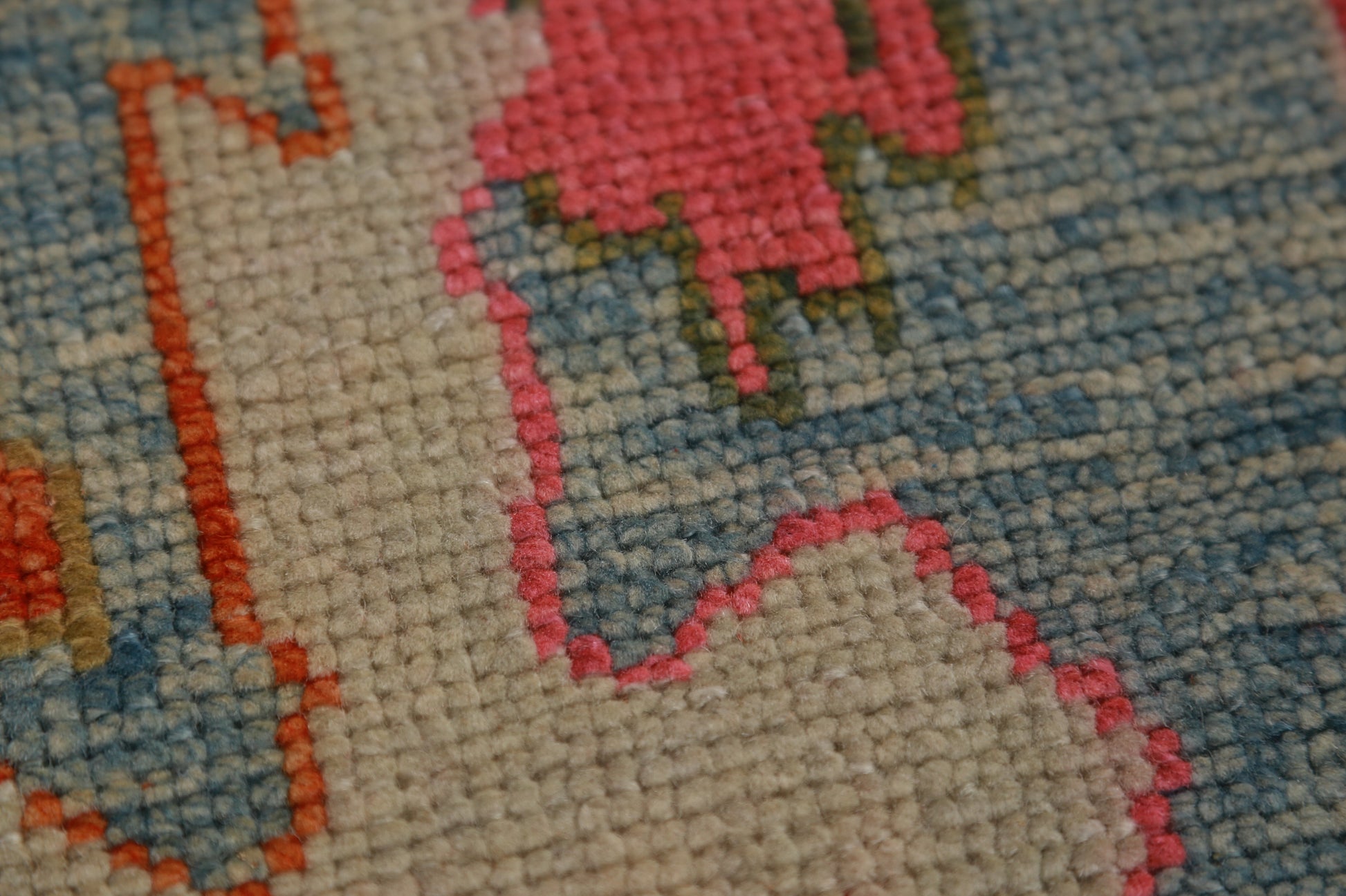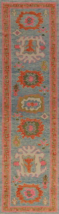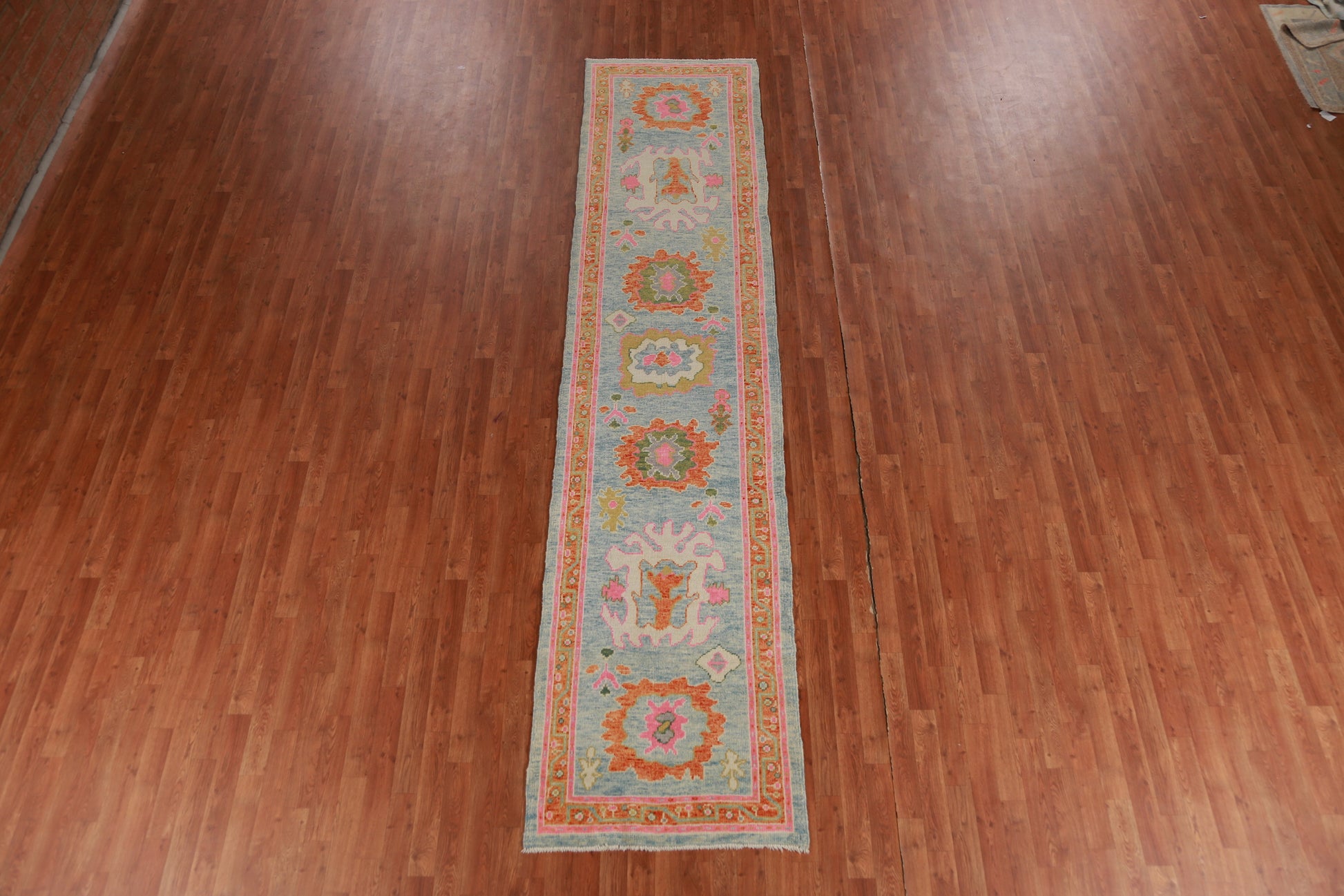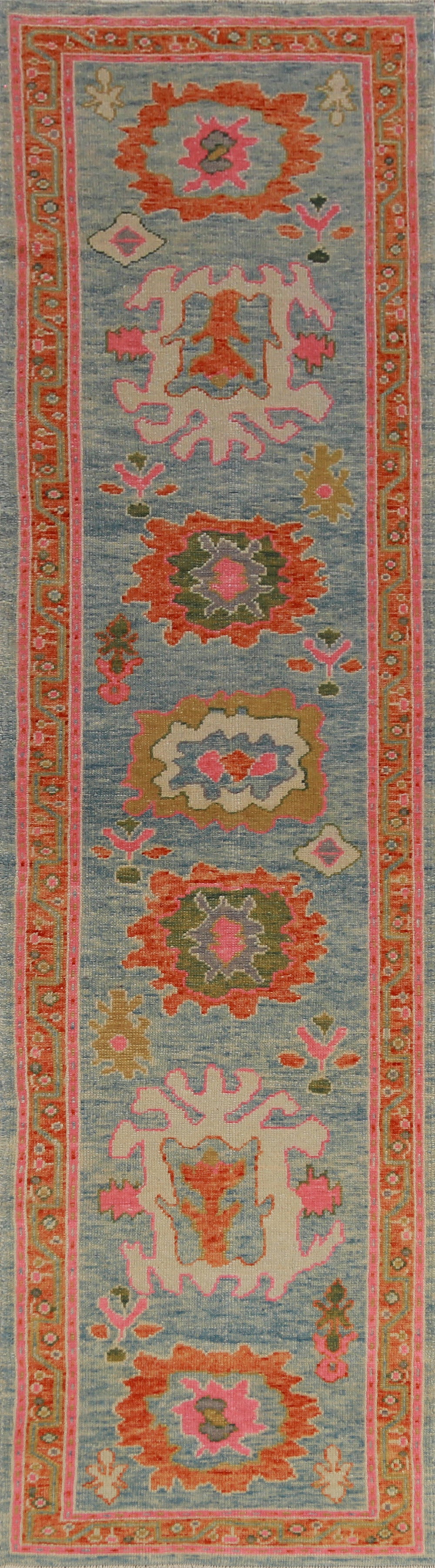 Handmade Blue Floral Oushak Vegetable Dye Runner Rug 3x13