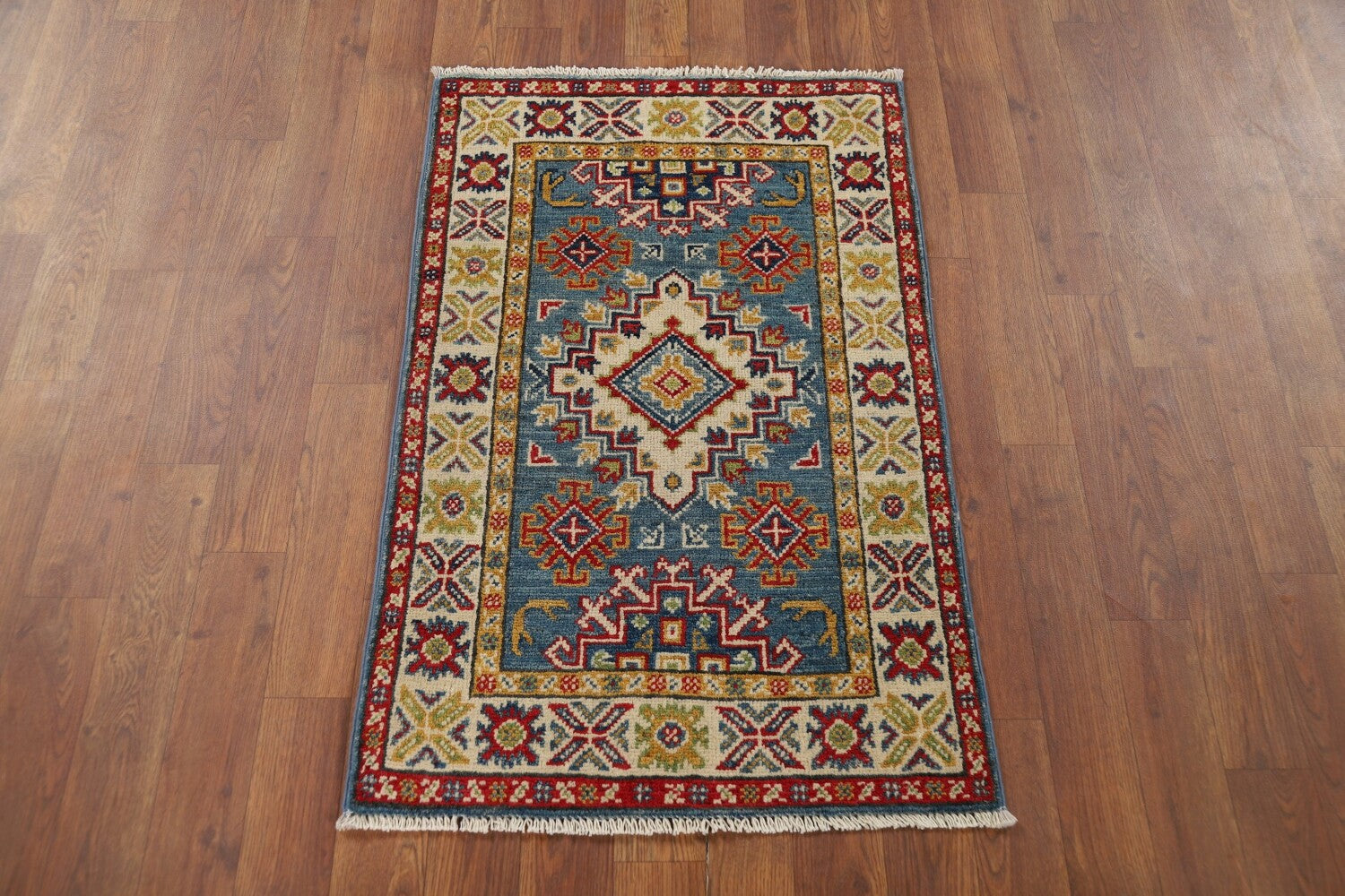 Handmade Blue Kazak Accent Rug 2x3
