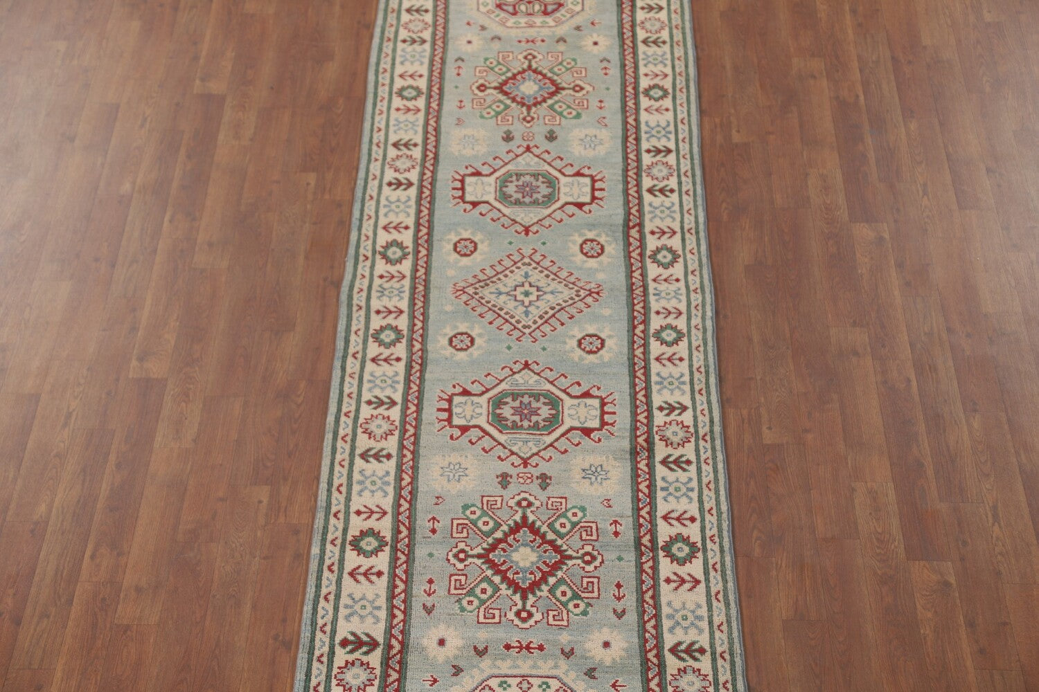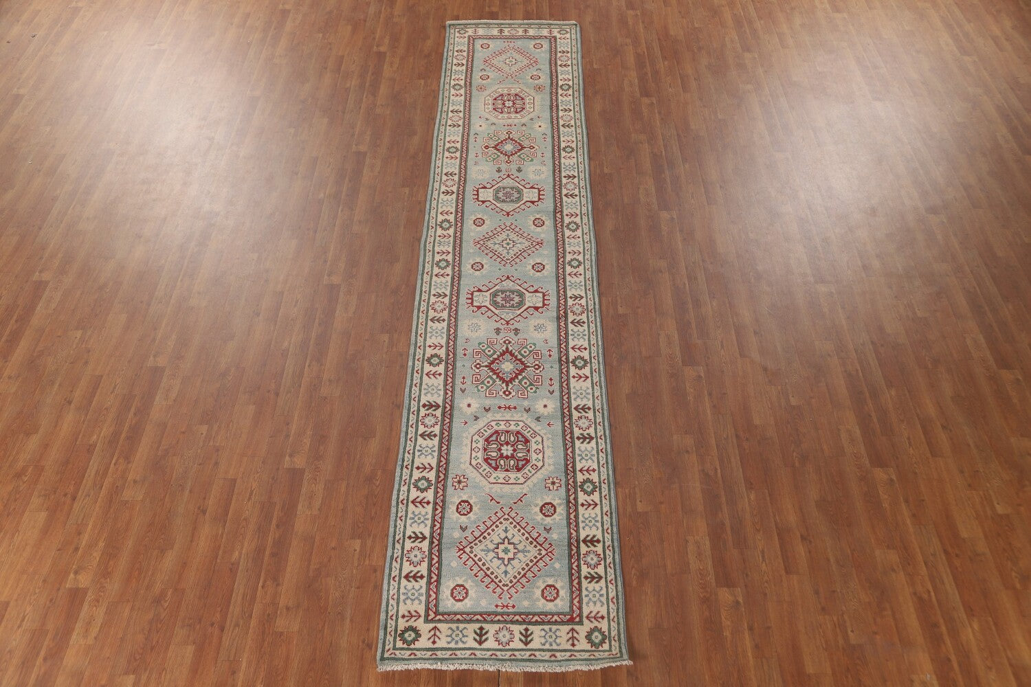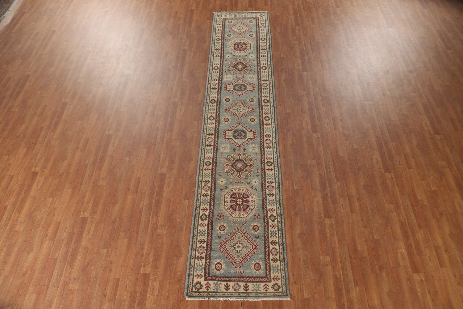 Handmade Blue Kazak Oriental Runner Rug 3x13