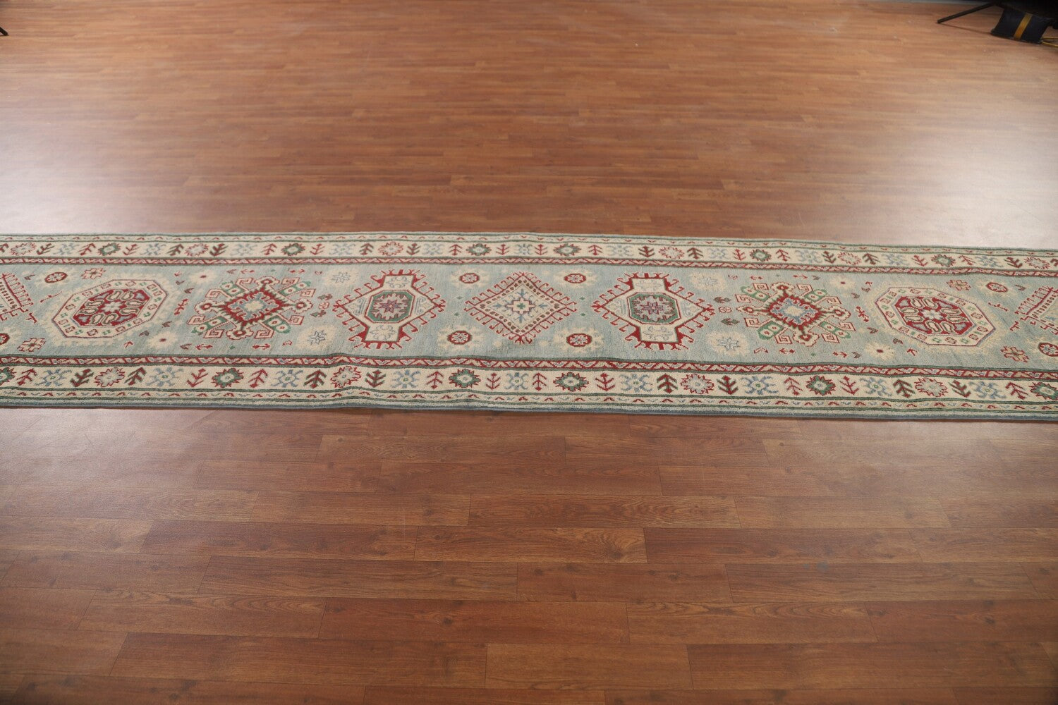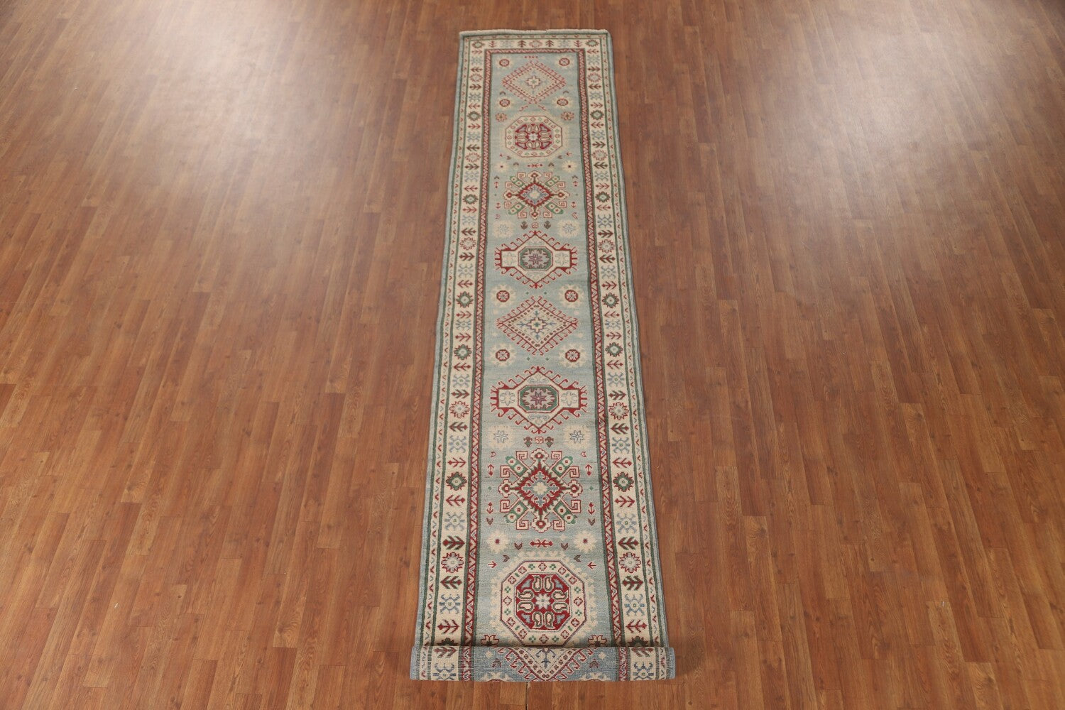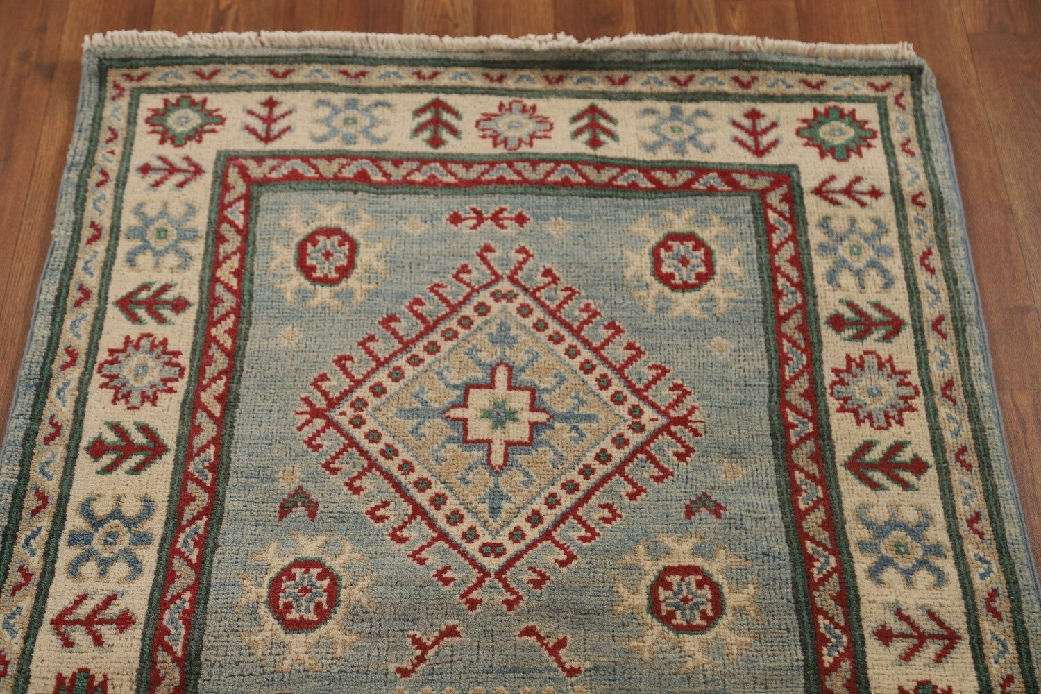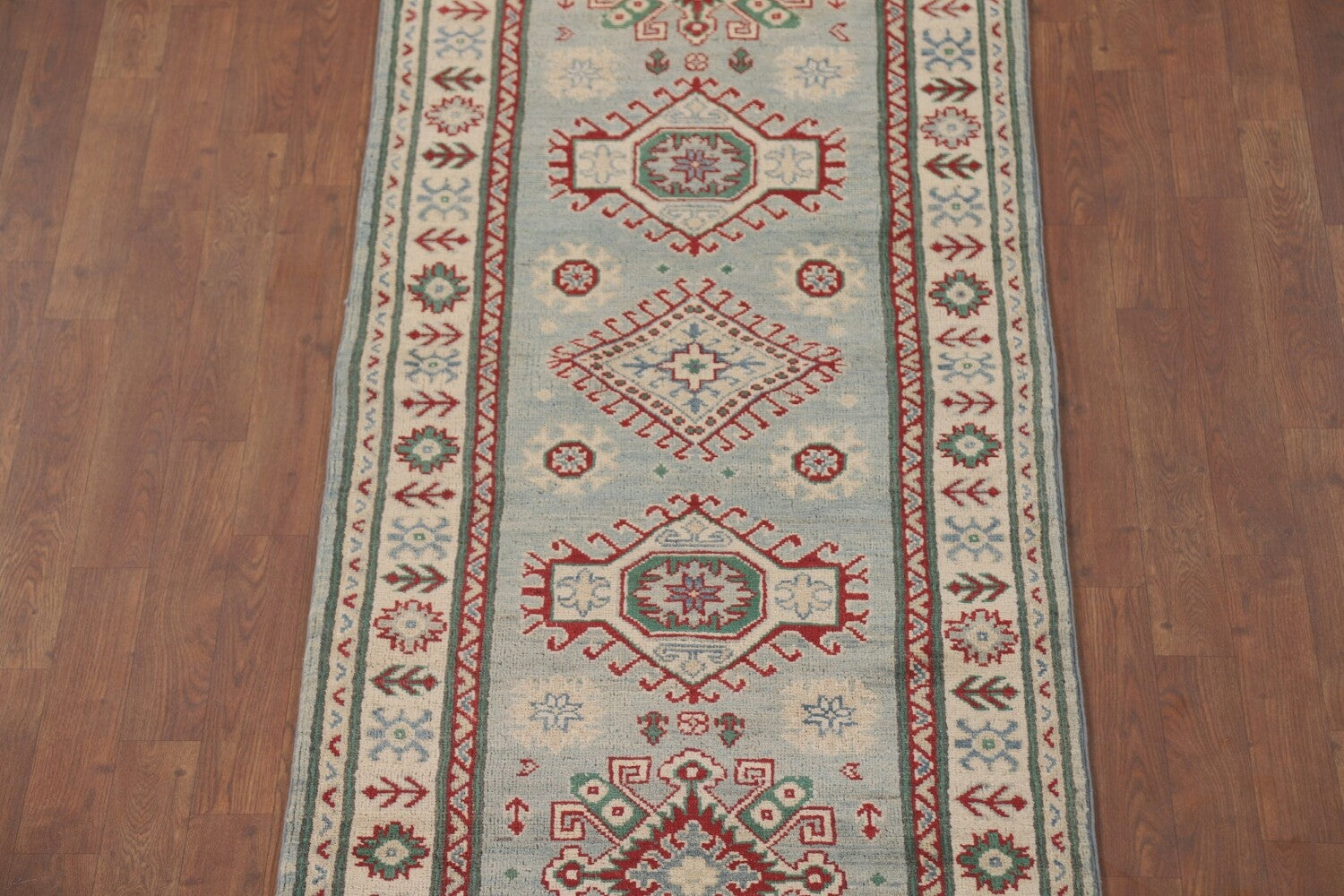 Handmade Blue Kazak Oriental Runner Rug 3x13