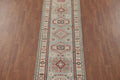 A Beautiful Genuine Pakistan Kazak rug is Hand Knotted by skillful weavers in Pakistan with 100% Wool Material. This rug is in New, First Quality condition. dimensions are 13' 5'' X 2' 8'' in foot and 409 X 81 in centimeter. the primary color is Navy Blue & Blues.