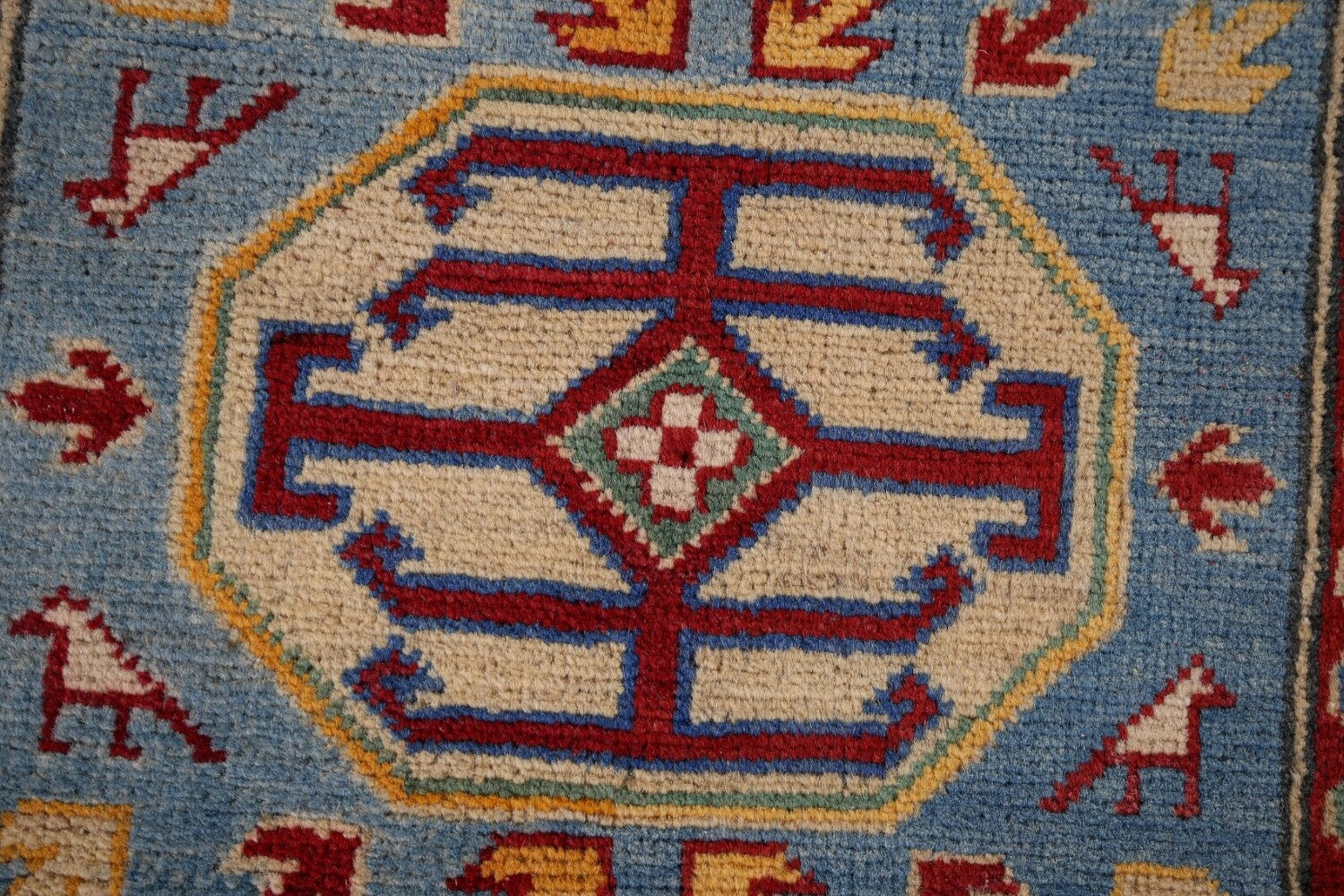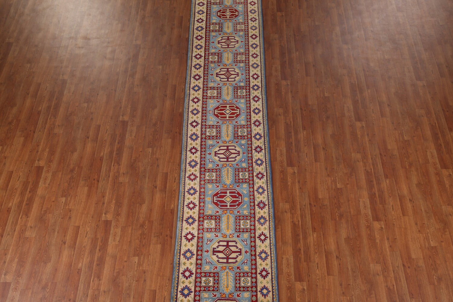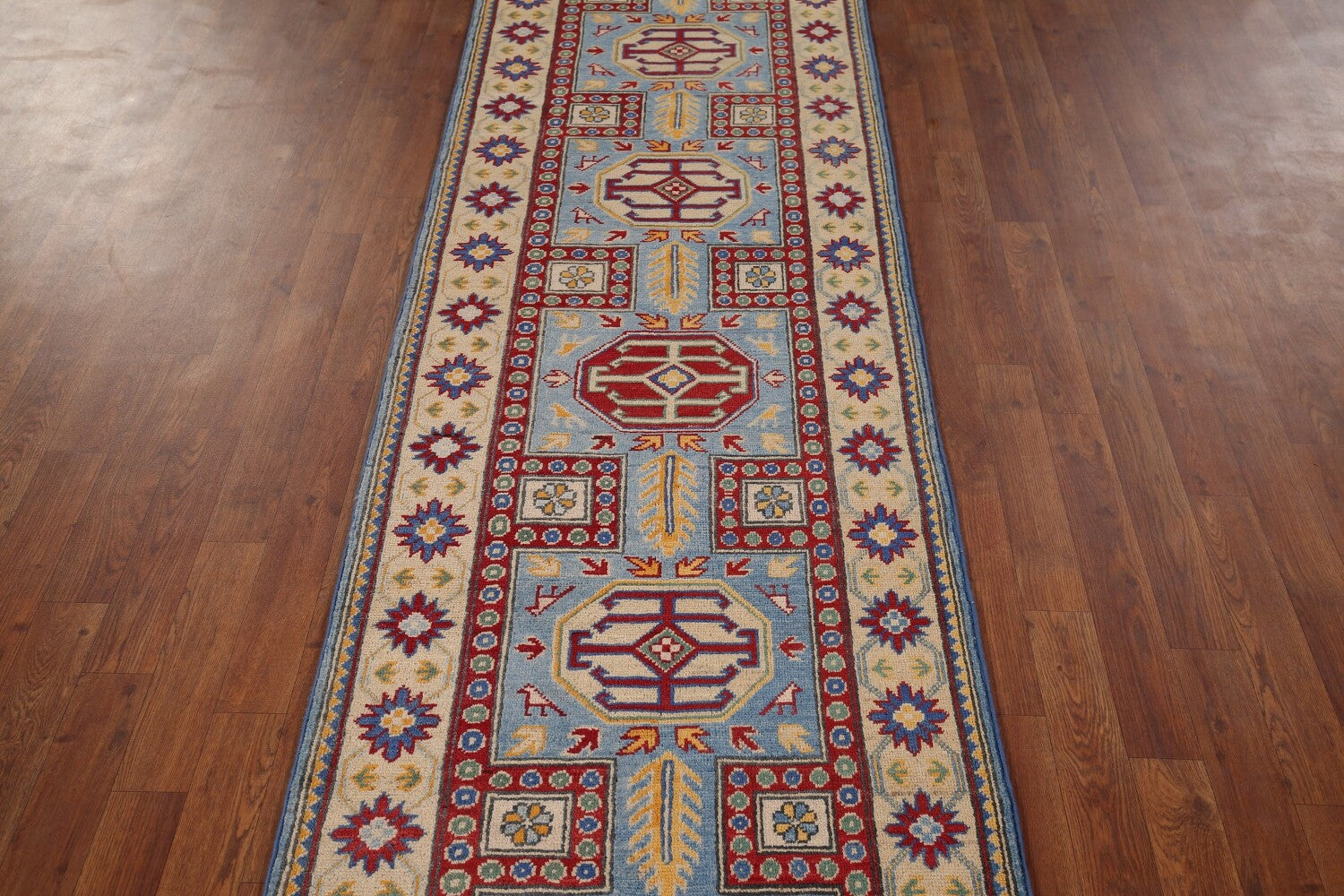 Handmade Blue Kazak Oriental Runner Rug 3x21