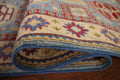 A Beautiful Genuine Pakistan Kazak rug is Hand Knotted by skillful weavers in Pakistan with 100% Wool Material. This rug is in New, First Quality condition. dimensions are 20' 6'' X 2' 7'' in foot and 625 X 79 in centimeter. the primary color is Navy Blue & Blues.