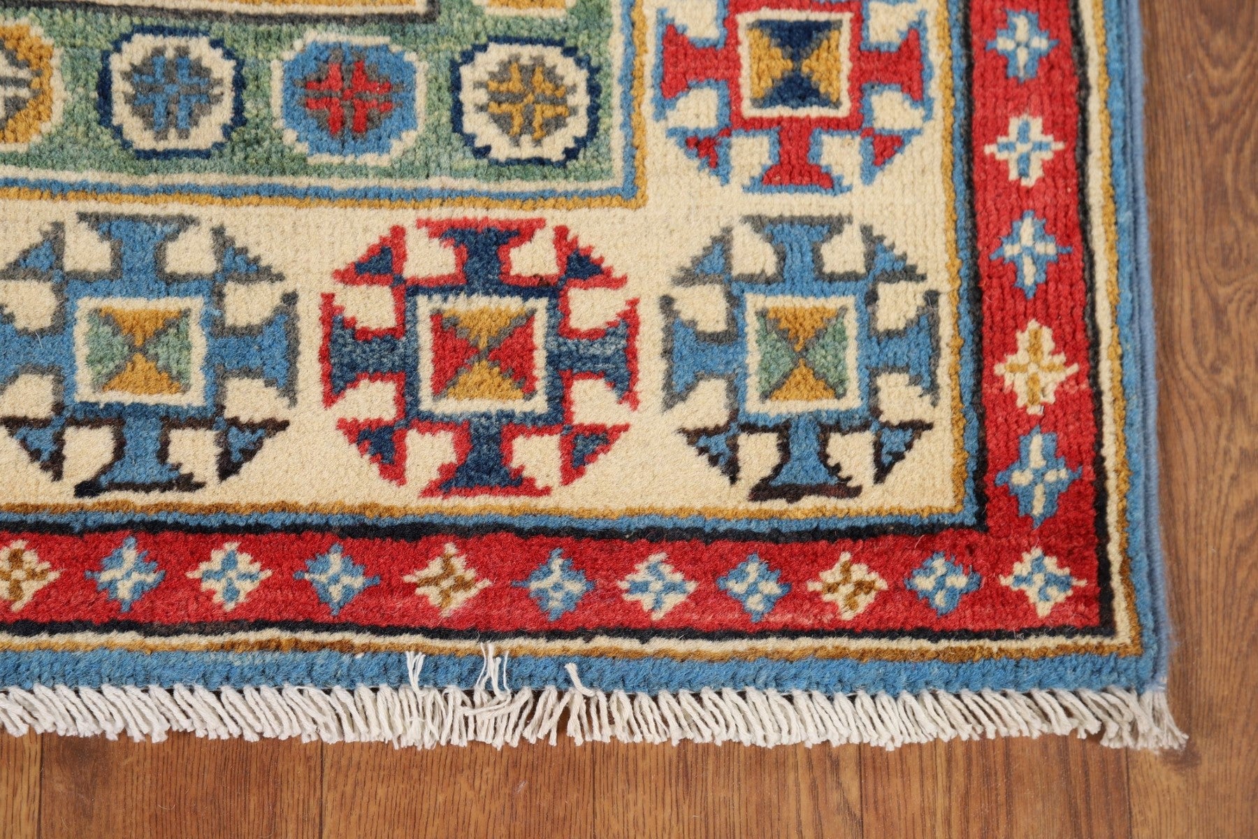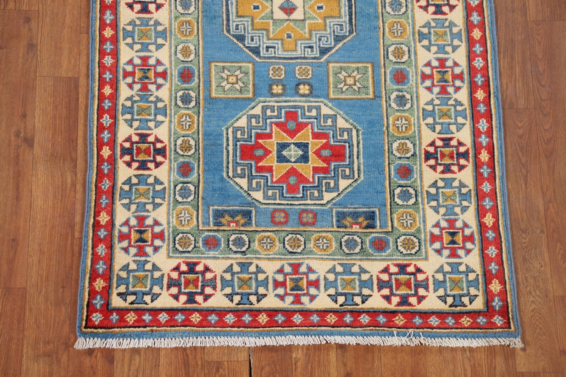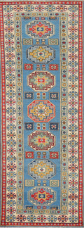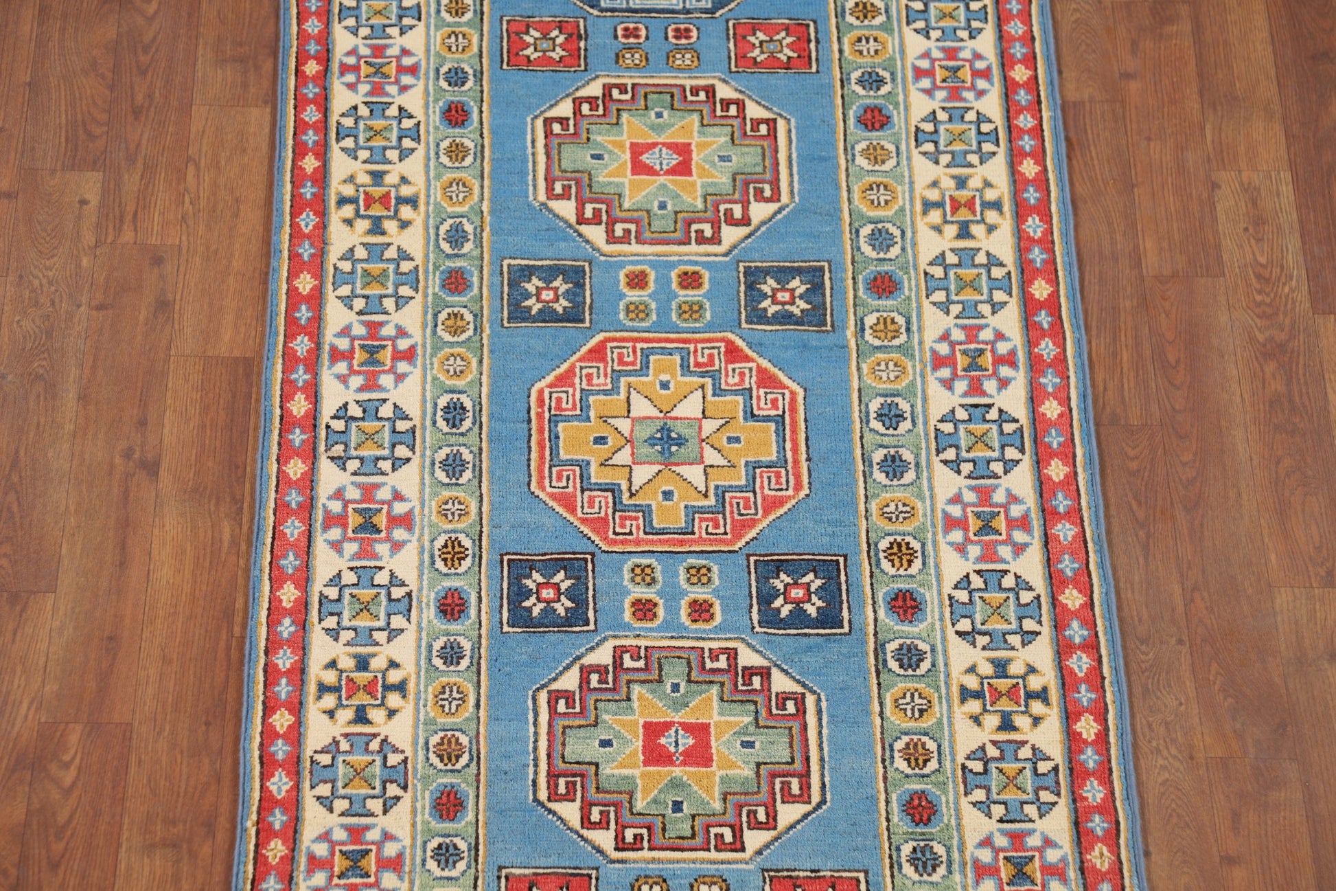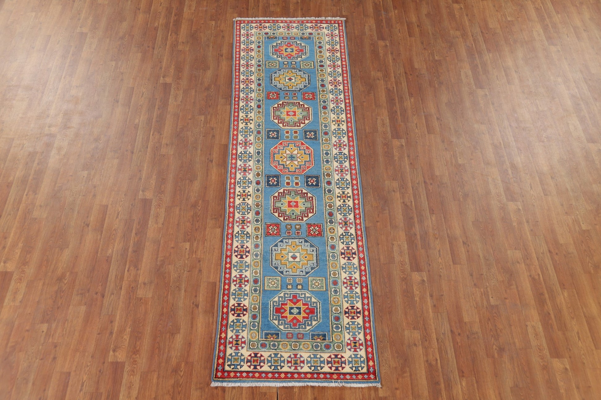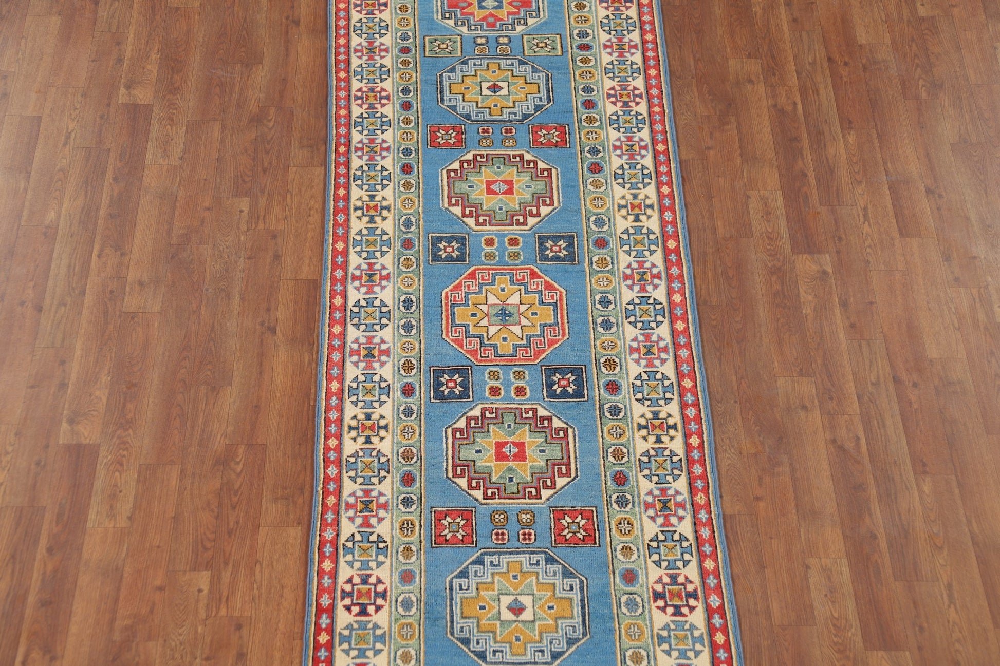 Handmade Blue Kazak Wool Runner Rug 3x9