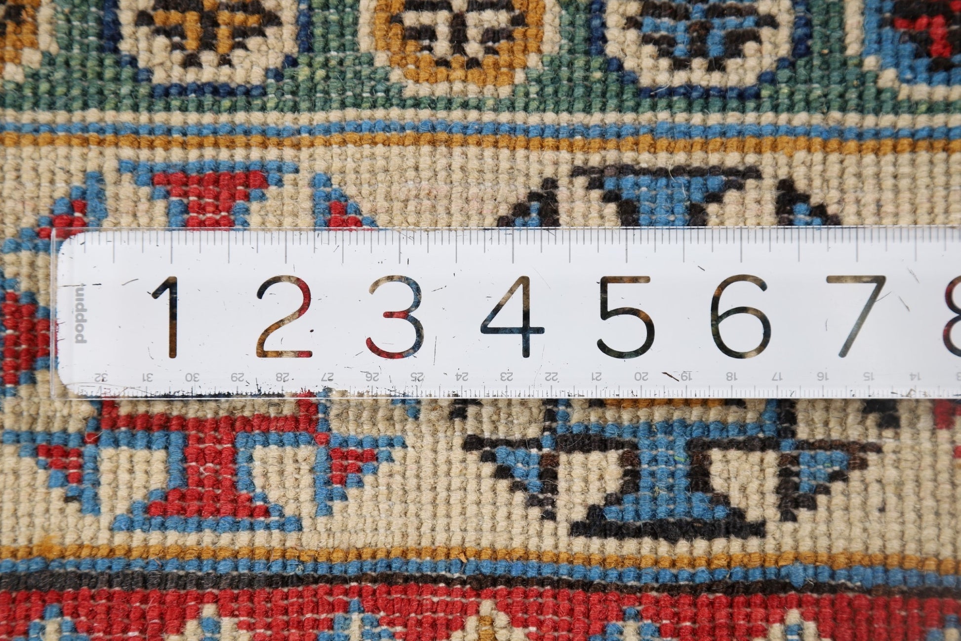 A Beautiful Genuine Pakistan Kazak rug is Hand Knotted by skillful weavers in Pakistan with 100% Wool Material. This rug is in New, First Quality condition. dimensions are 9' 3'' X 2' 9'' in foot and 282 X 84 in centimeter. the primary color is Navy Blue & Blues.