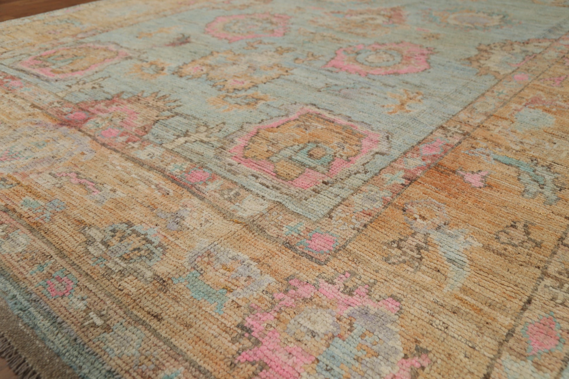 A Beautiful Genuine Turkey Oushak rug is Hand Knotted by skillful weavers in Turkey with 100% Wool Material. This rug is in New, First Quality condition. dimensions are 10' 0'' X 6' 11'' in foot and 305 X 211 in centimeter. the primary color is Navy Blue & Blues.