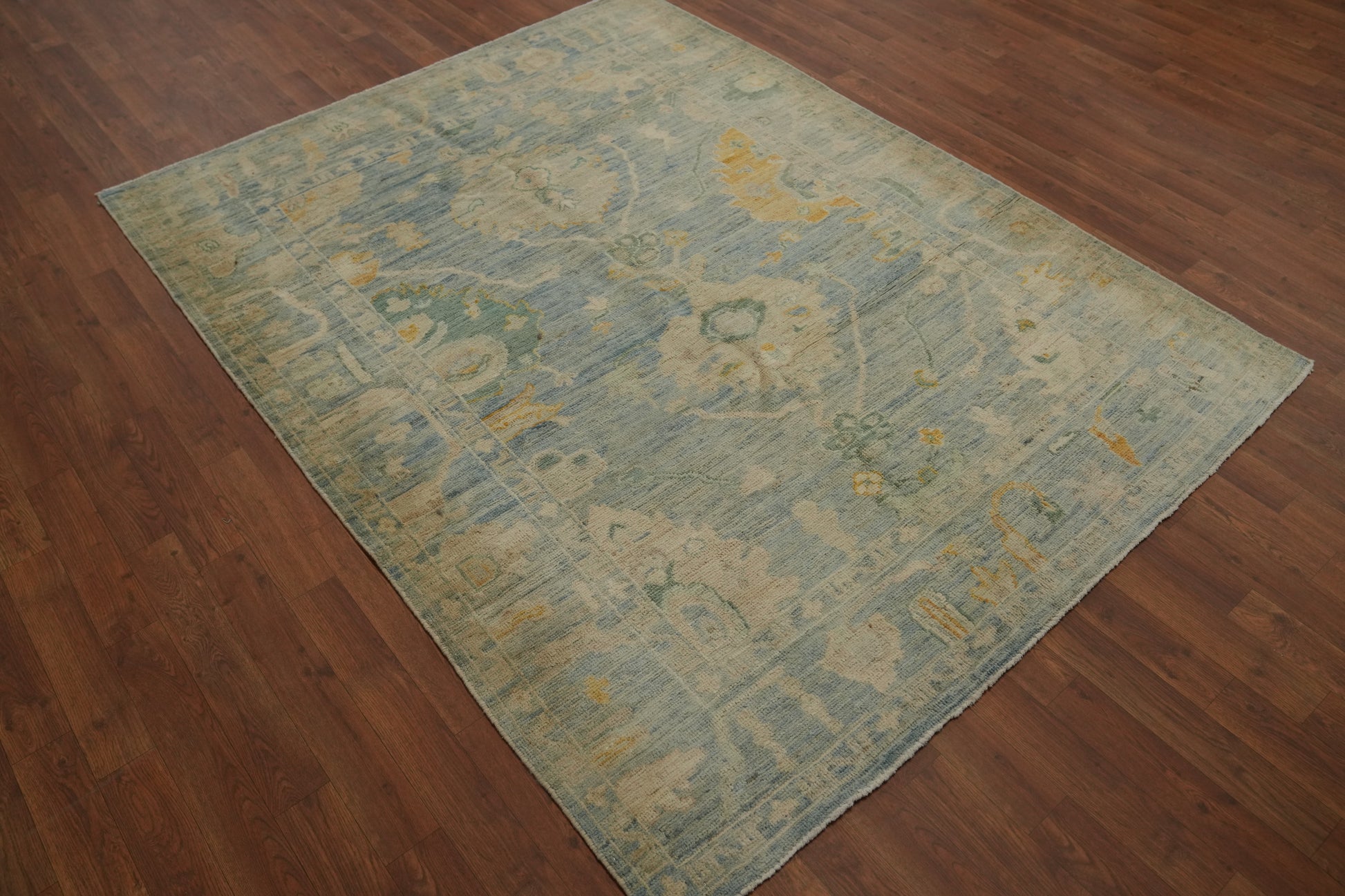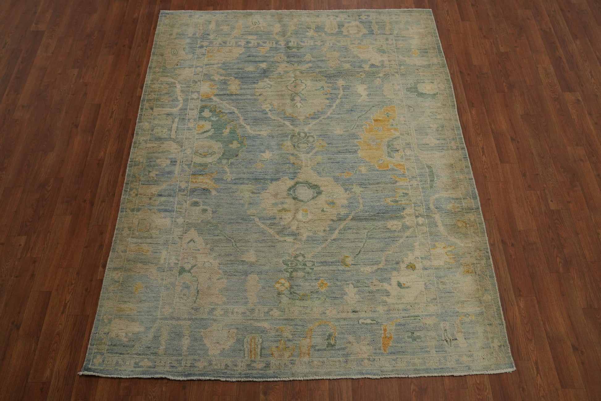 Handmade Blue Oushak Turkish Rug 5x7