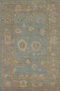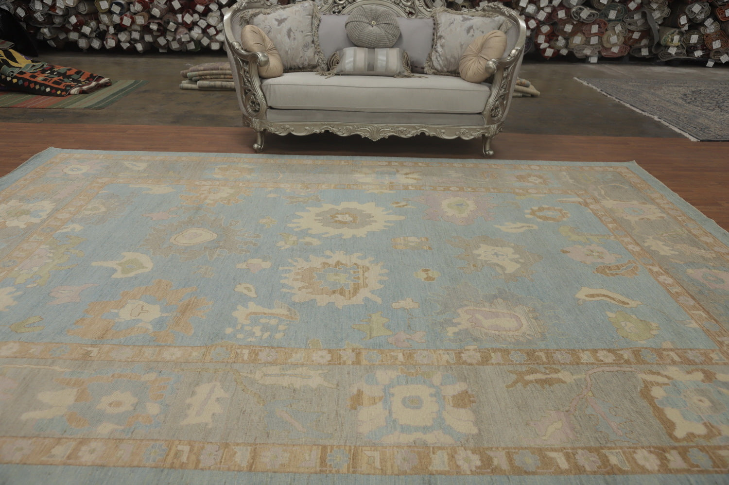 Handmade Blue Oushak Vegetable Dye Large Rug 10x14