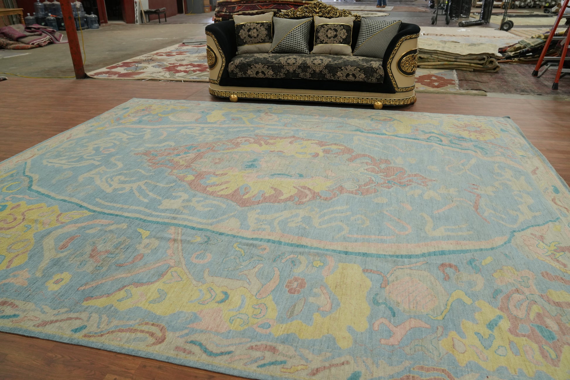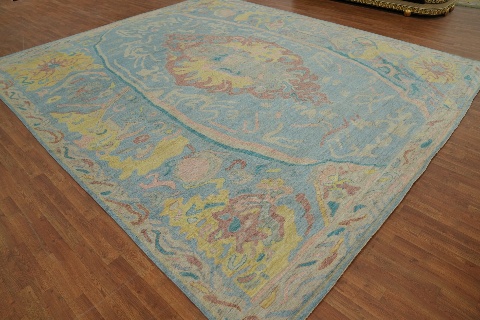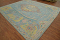 Handmade Blue Oushak Vegetable Dye Large Rug 12x15