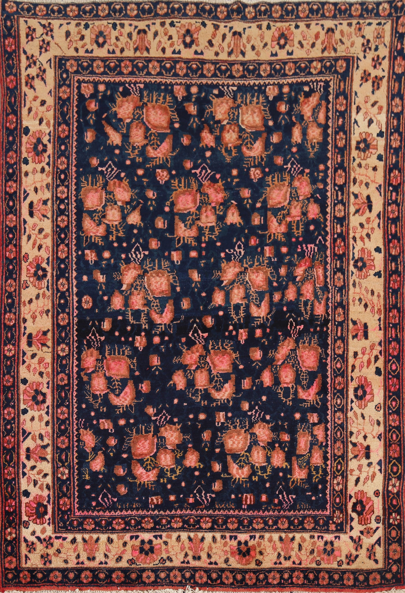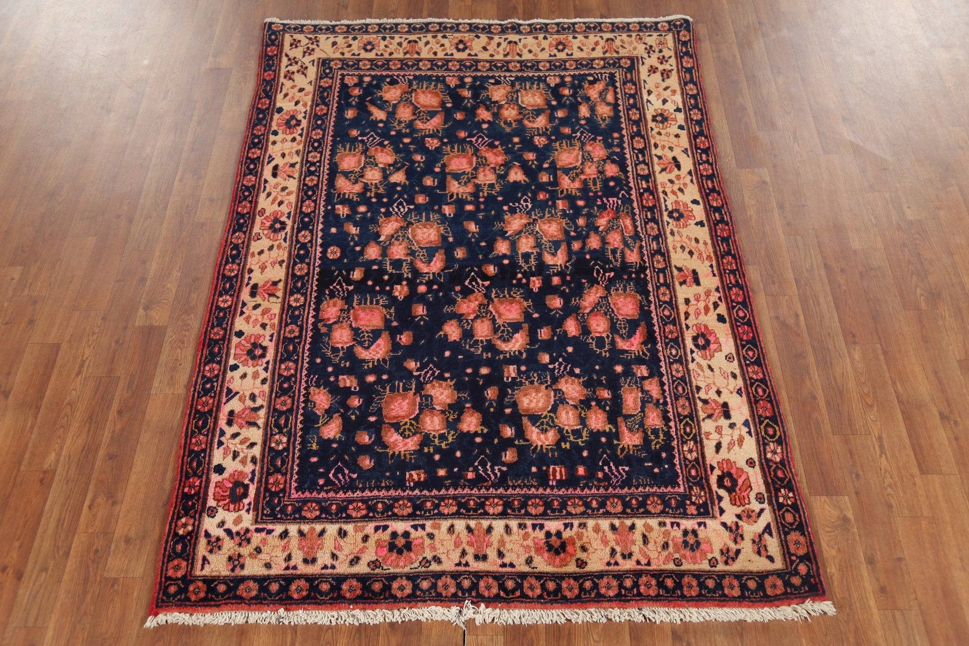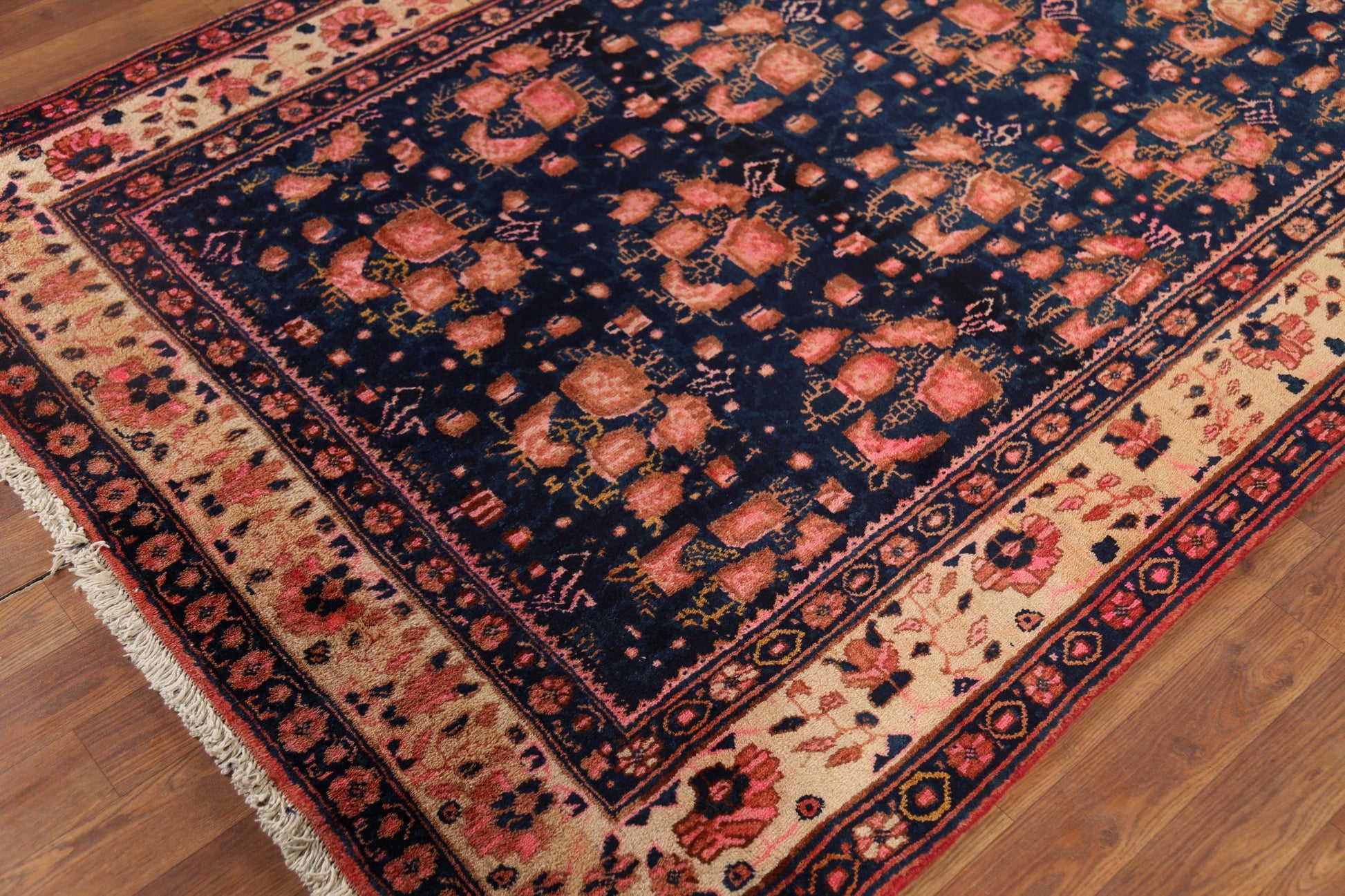 A Beautiful Genuine Persia ( Persia ) Sirjan rug is Hand Knotted by skillful weavers in Persia ( Persia ) with 100% Wool Material. This rug is in Very Good condition. dimensions are 6' 3'' X 4' 6'' in foot and 191 X 137 in centimeter. the primary color is Navy Blue & Blues.