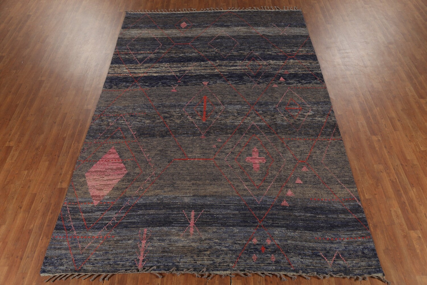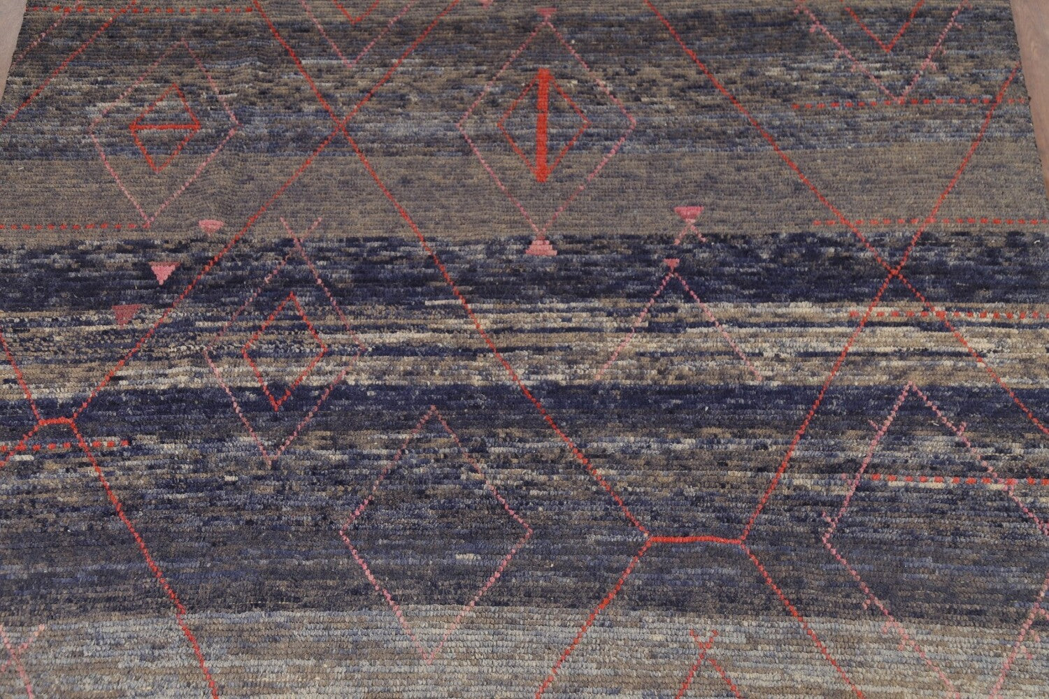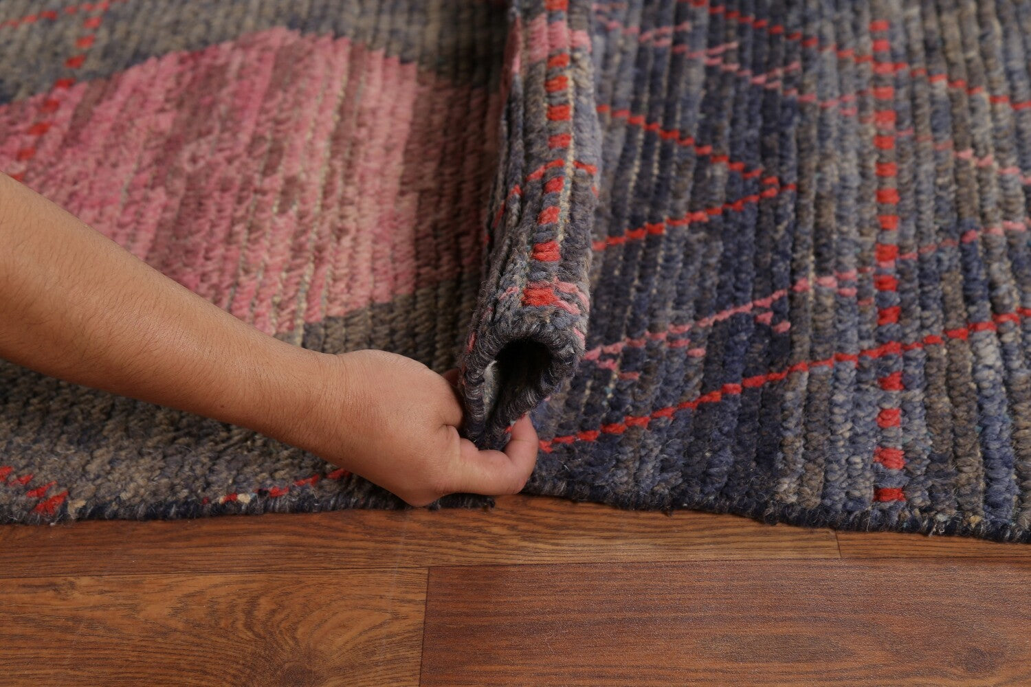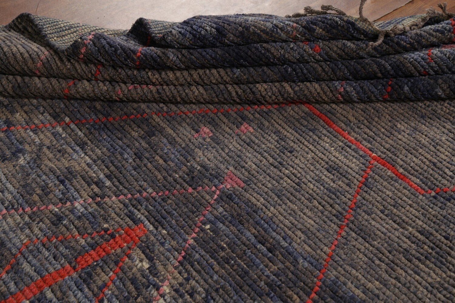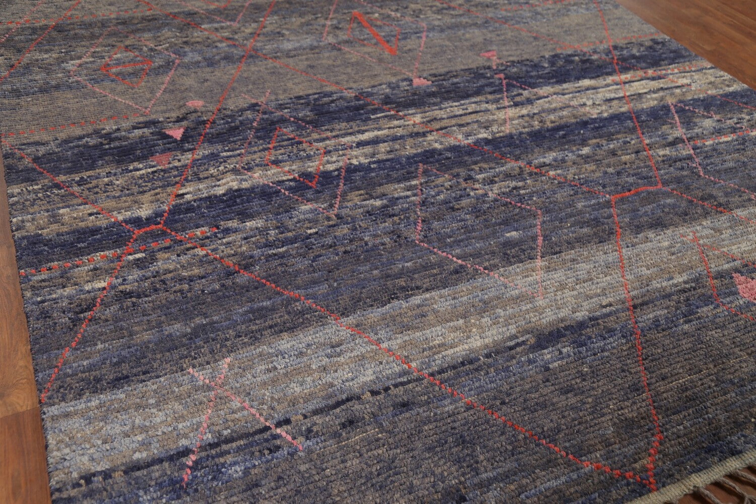 A Beautiful Genuine Pakistan Moroccan rug is Hand Knotted by skillful weavers in Pakistan with 100% Wool Material. This rug is in New, First Quality condition. dimensions are 12' 3'' X 8' 2'' in foot and 373 X 249 in centimeter. the primary color is Navy Blue & Blues.