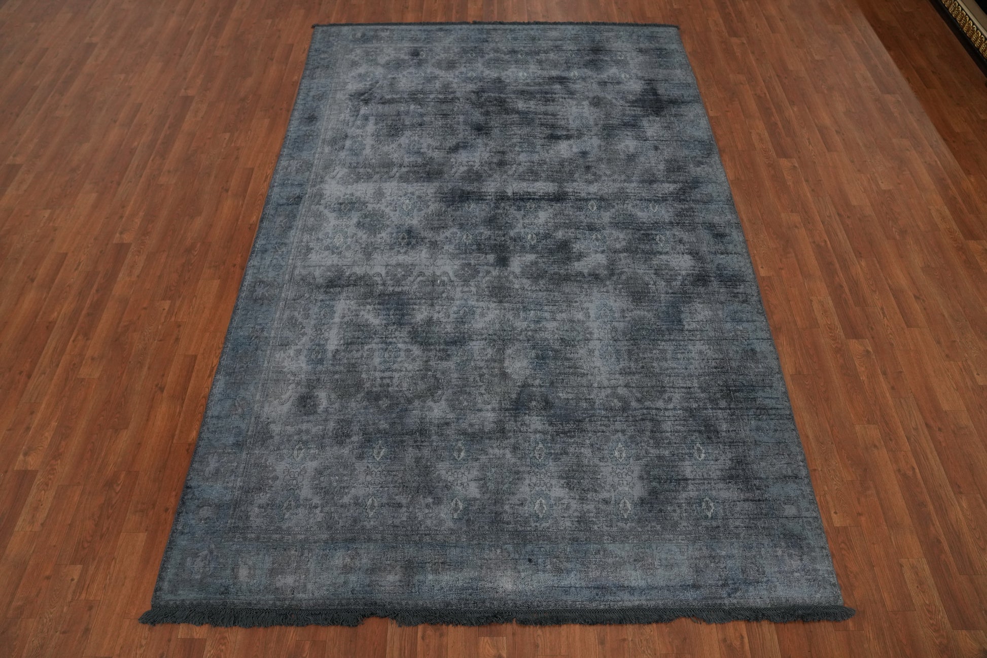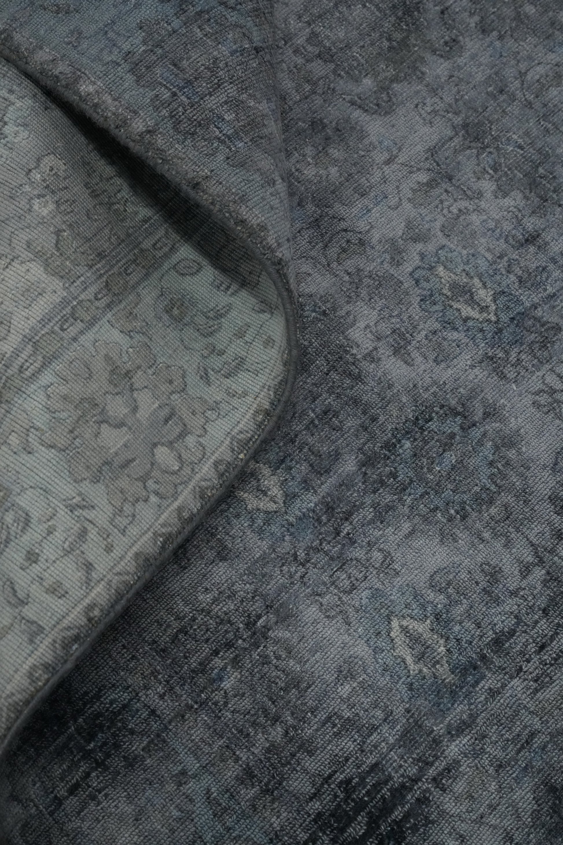 A Beautiful Genuine India Distressed rug is Hand Knotted by skillful weavers in India with Viscose Silk Material. This rug is in New, First Quality condition. dimensions are 9' 11'' X 6' 6'' in foot and 302 X 198 in centimeter. the primary color is Greys & Charcoal.