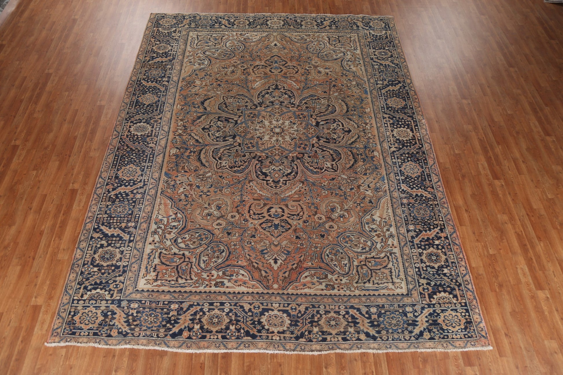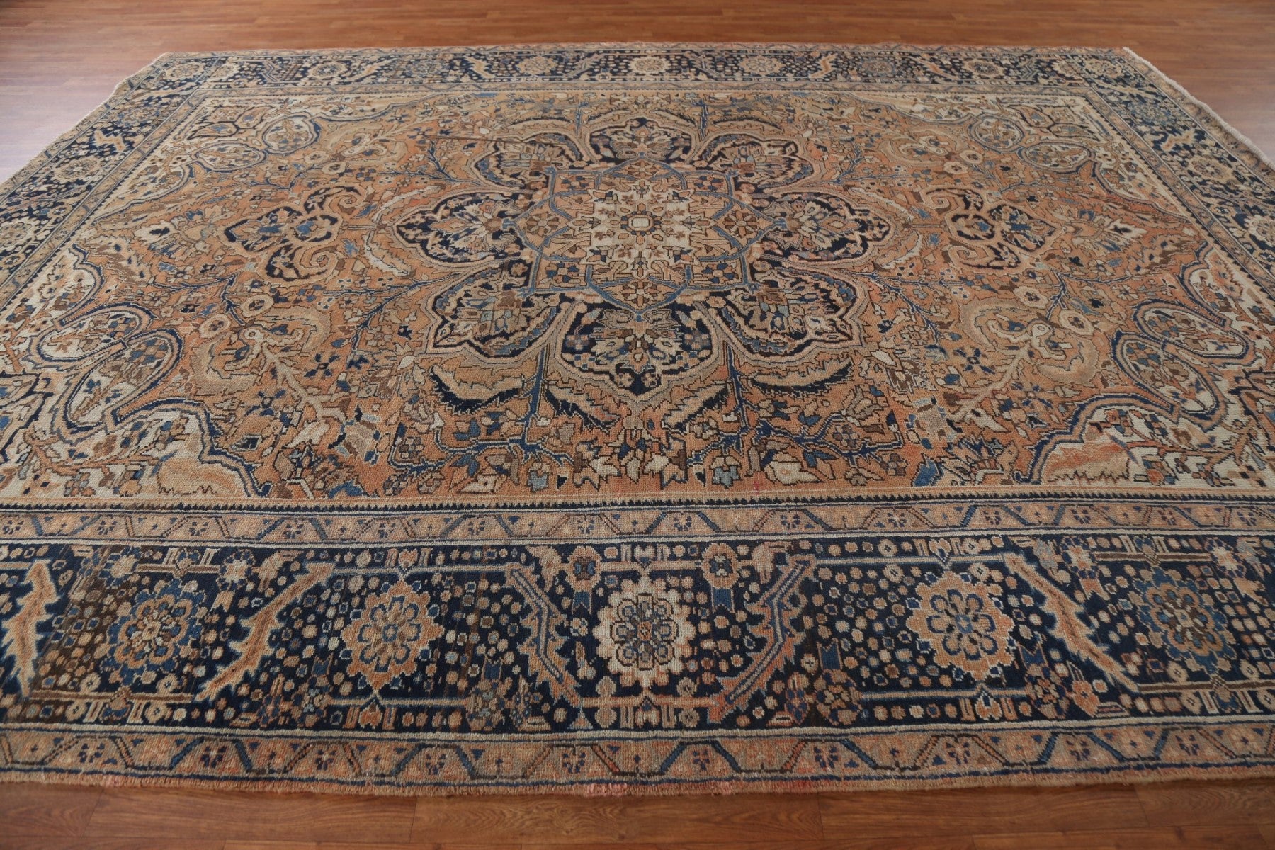 A Beautiful Genuine Persia ( Persia ) Heriz rug is Hand Knotted by skillful weavers in Persia ( Persia ) with 100% Wool Material. This rug is in Very Good condition. dimensions are 12' 7'' X 9' 7'' in foot and 384 X 292 in centimeter. the primary color is Oranges & Rust.