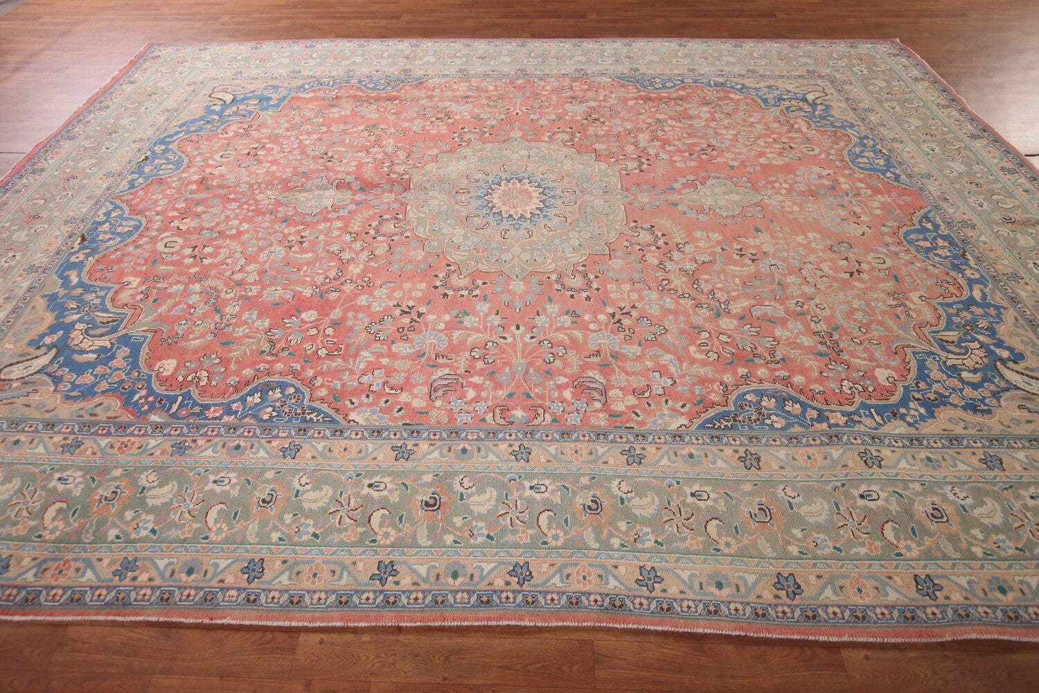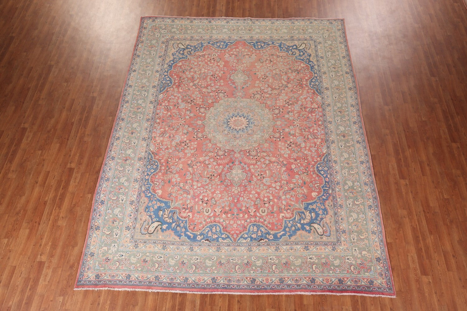 A Beautiful Genuine Persia ( Persia ) Mashad rug is Hand Knotted by skillful weavers in Persia ( Persia ) with 100% Wool Material. This rug is in Very Good ( Low Pile ) condition. dimensions are 12' 3'' X 9' 6'' in foot and 373 X 290 in centimeter. the primary color is Coral.