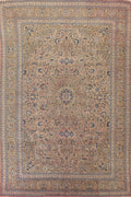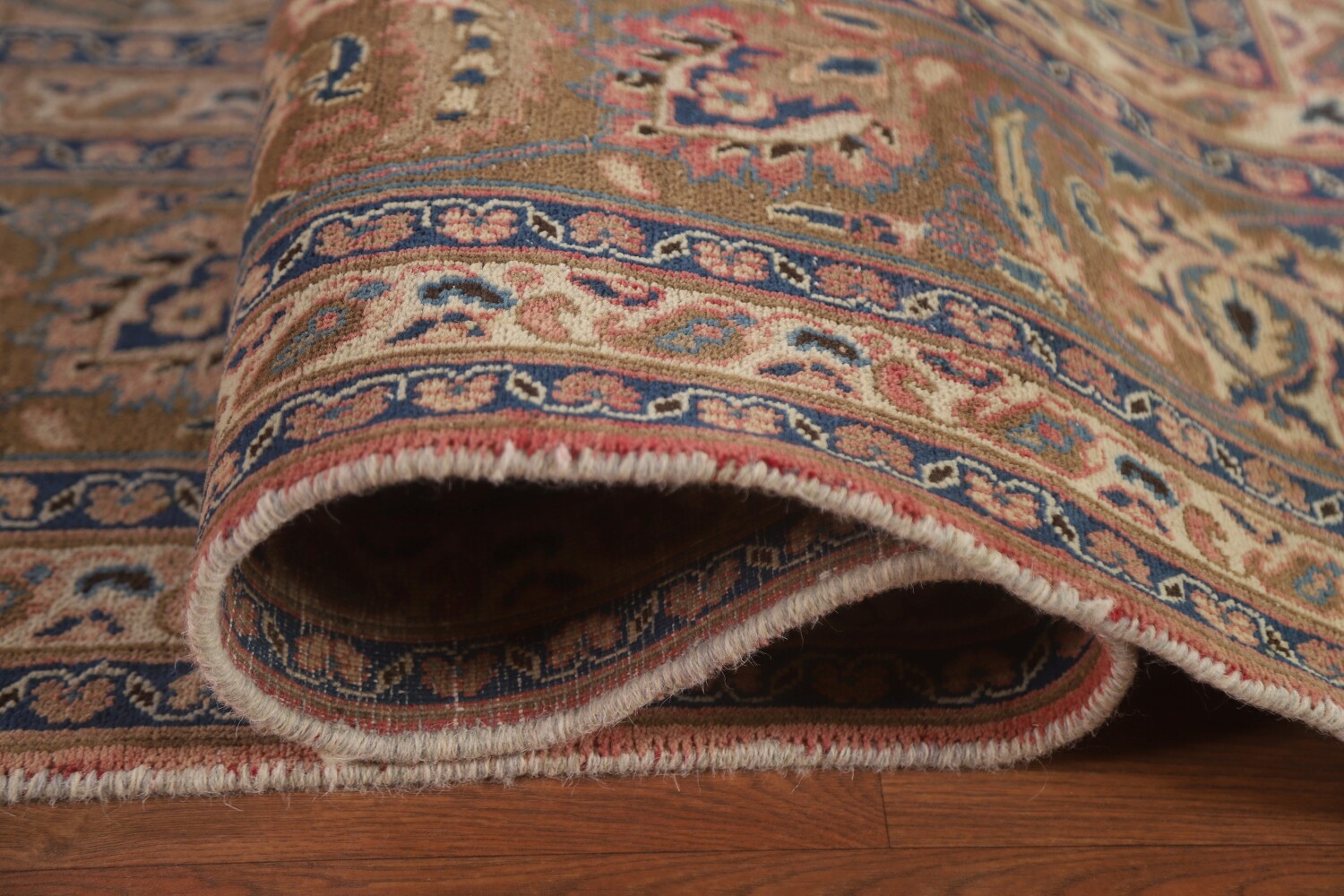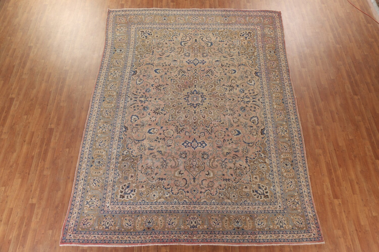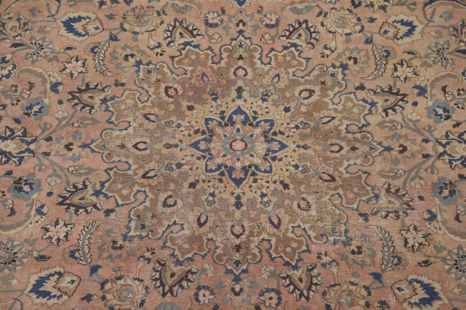 A Beautiful Genuine Persia ( Persia ) Mashad rug is Hand Knotted by skillful weavers in Persia ( Persia ) with 100% Wool Material. This rug is in Very Good (Evenly Low Pile) condition. dimensions are 12' 5'' X 9' 4'' in foot and 378 X 284 in centimeter. the primary color is Pink.
