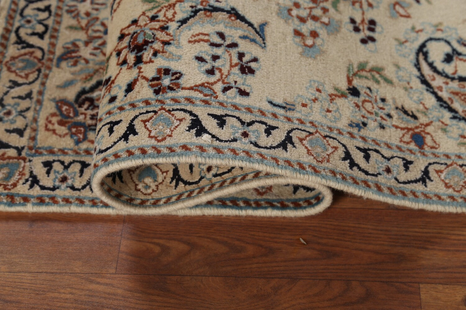 A Beautiful Genuine Persia ( Persia ) Nain rug is Hand Knotted by skillful weavers in Persia ( Persia ) with 100% Wool Material. This rug is in Very Good condition. dimensions are 4' 4'' X 2' 11'' in foot and 132 X 89 in centimeter. the primary color is Beige & Ivories.
