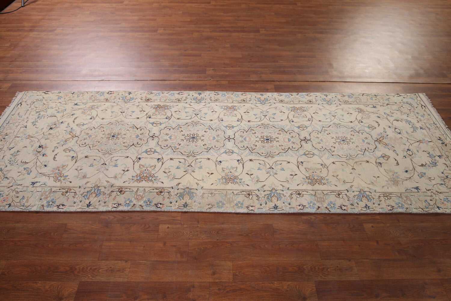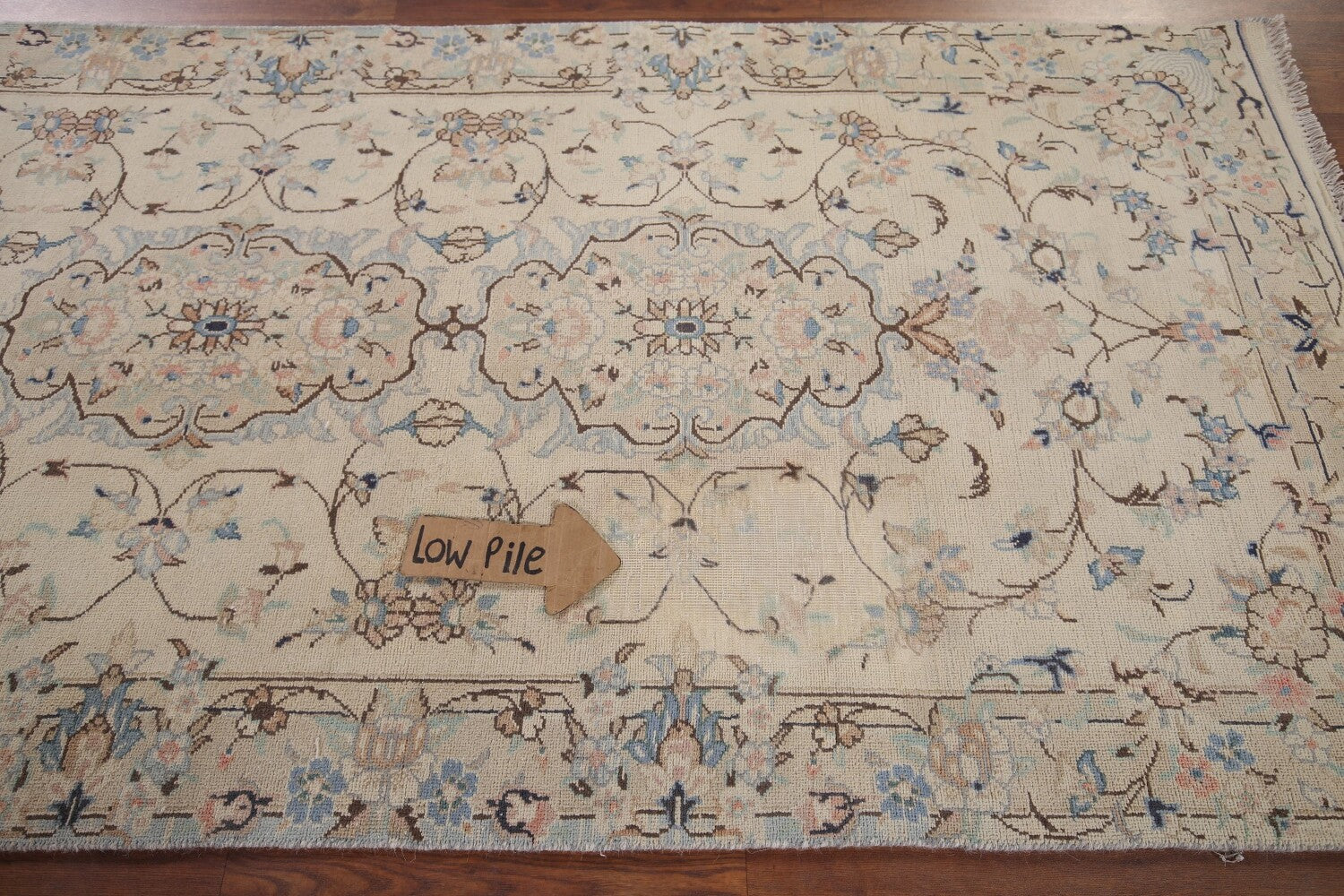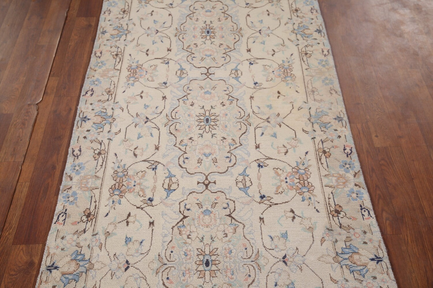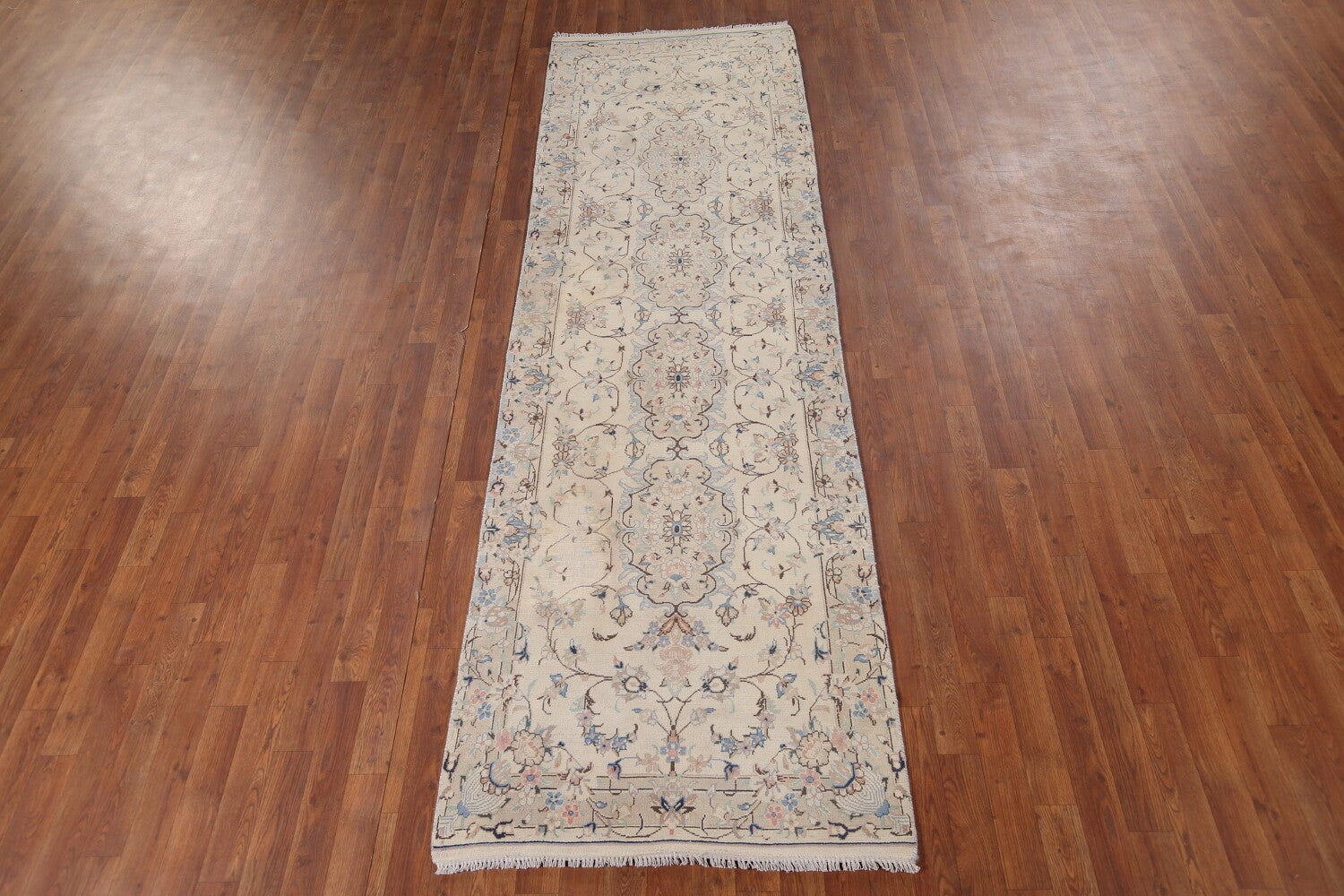 A Beautiful Genuine Persia ( Persia ) Nain rug is Hand Knotted by skillful weavers in Persia ( Persia ) with 100% Wool Material. This rug is in Very Good ( Low Pile ) condition. dimensions are 9' 9'' X 3' 1'' in foot and 297 X 94 in centimeter. the primary color is Beige & Ivories.