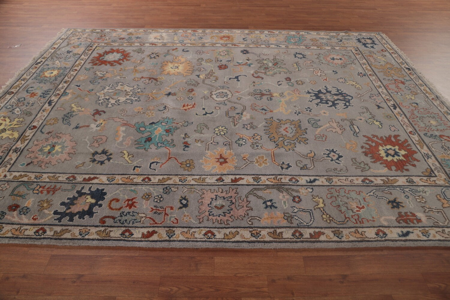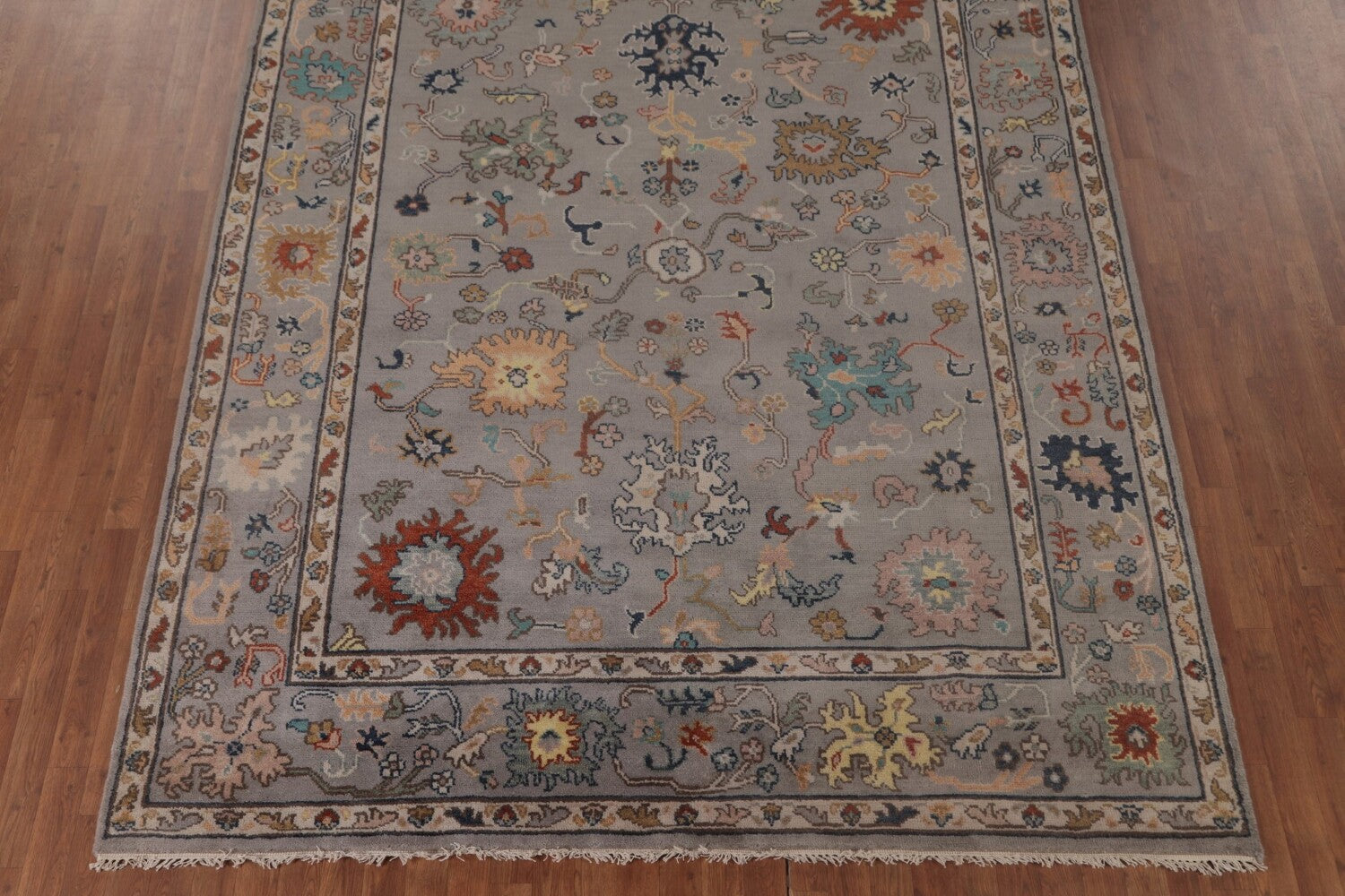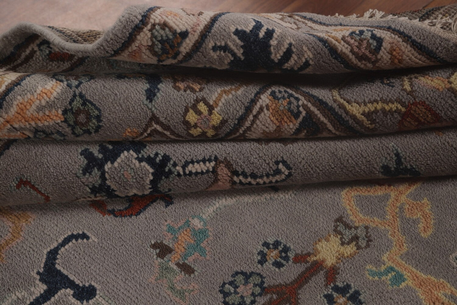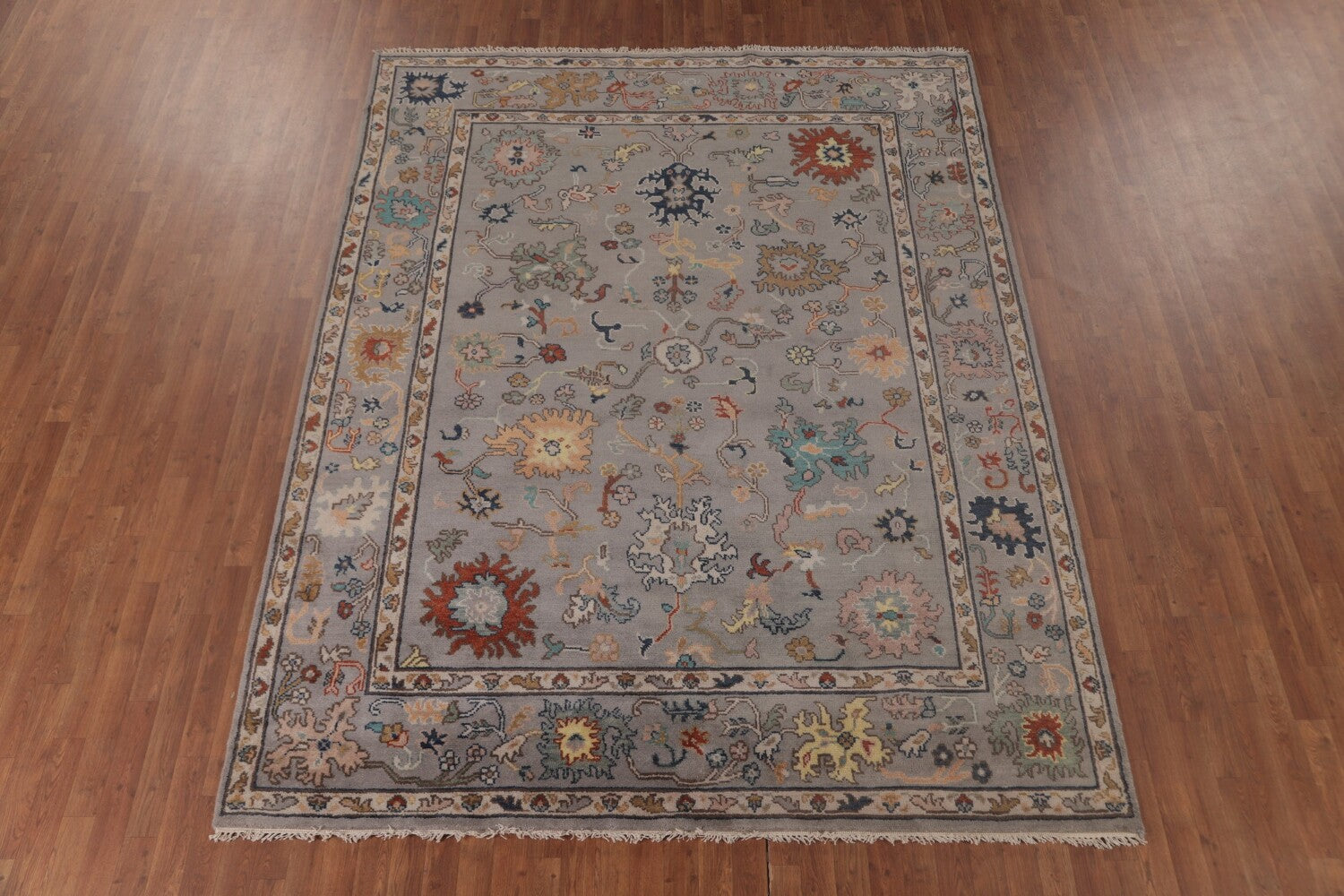 A Beautiful Genuine India Oushak rug is Hand Knotted by skillful weavers in India with 100% Wool Material. This rug is in New, First Quality condition. dimensions are 9' 10'' X 7' 8'' in foot and 300 X 234 in centimeter. the primary color is Greys & Charcoal.