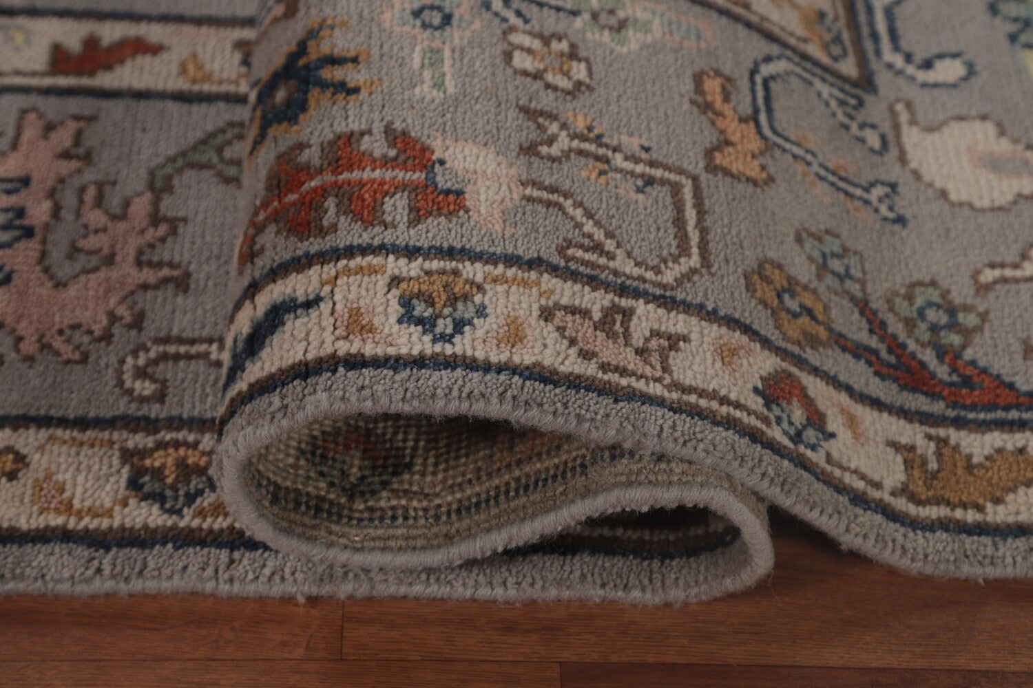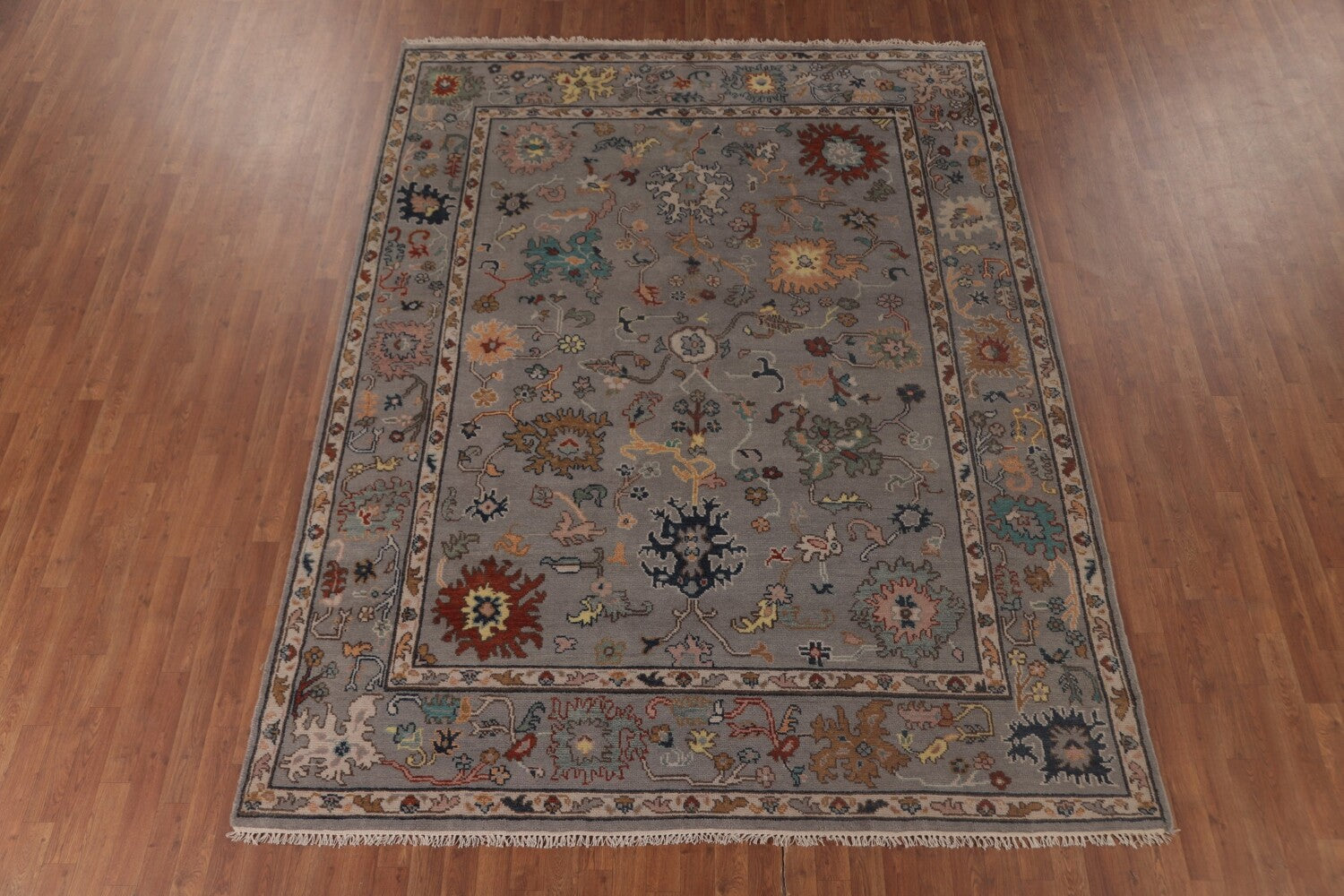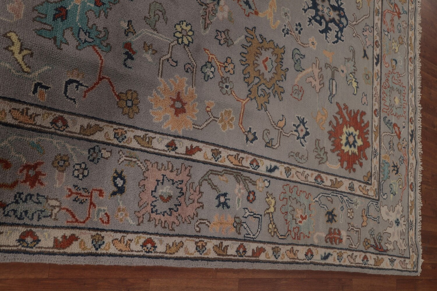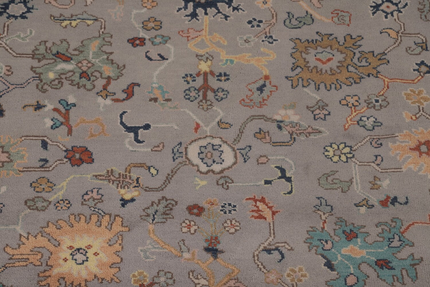 A Beautiful Genuine India Oushak rug is Hand Knotted by skillful weavers in India with 100% Wool Material. This rug is in New, First Quality condition. dimensions are 9' 10'' X 7' 8'' in foot and 300 X 234 in centimeter. the primary color is Greys & Charcoal.