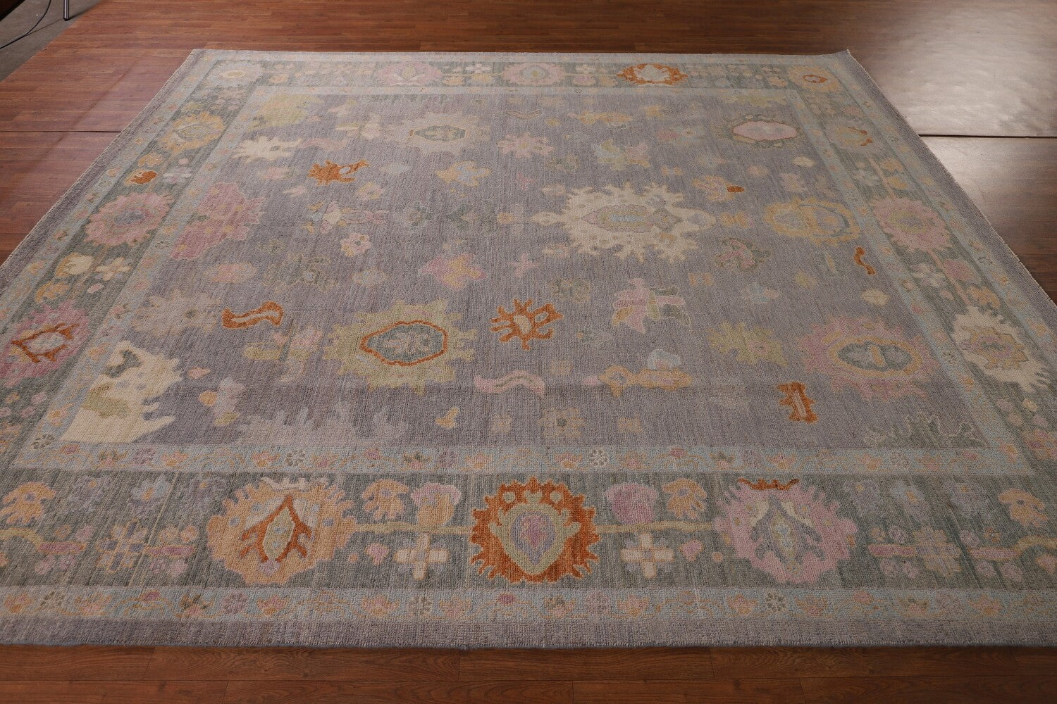 A Beautiful Genuine Turkey Oushak rug is Hand Knotted by skillful weavers in Turkey with 100% Wool Material. This rug is in New, First Quality condition. dimensions are 9' 9'' X 8' 4'' in foot and 297 X 254 in centimeter. the primary color is Greys & Charcoal.