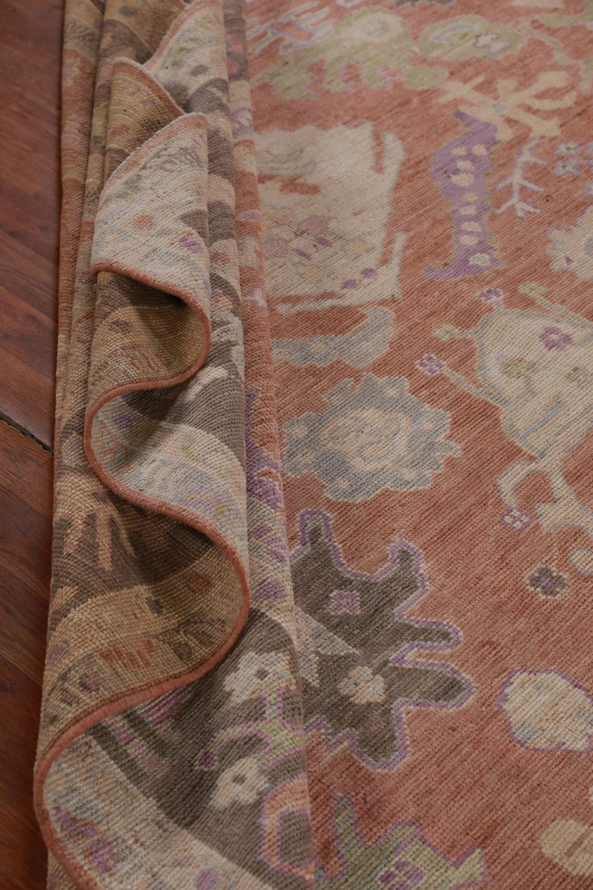 A Beautiful Genuine Turkey Oushak rug is Hand Knotted by skillful weavers in Turkey with 100% Wool Material. This rug is in New, First Quality condition. dimensions are 12' 0'' X 8' 11'' in foot and 366 X 272 in centimeter. the primary color is Oranges & Rust.