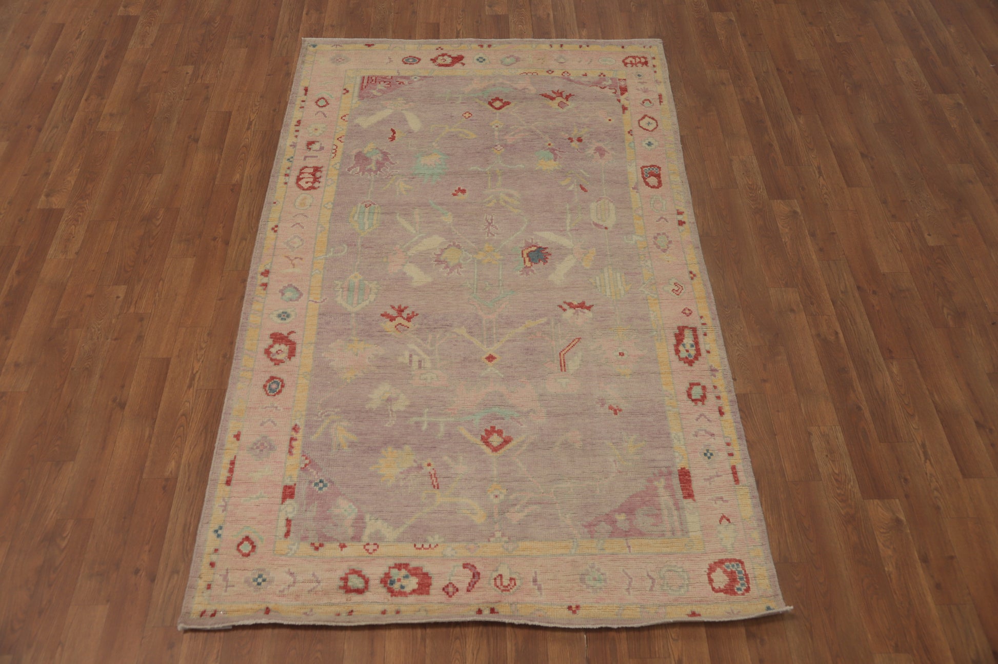 A Beautiful Genuine Turkey Oushak rug is Hand Knotted by skillful weavers in Turkey with 100% Wool Material. This rug is in New, First Quality condition. dimensions are 6' 11'' X 4' 2'' in foot and 211 X 127 in centimeter. the primary color is Purples.