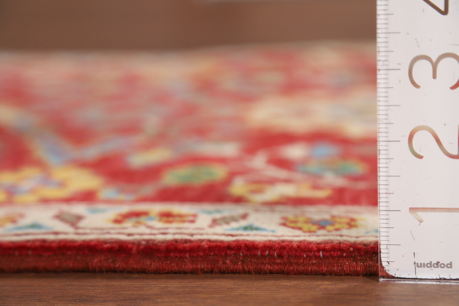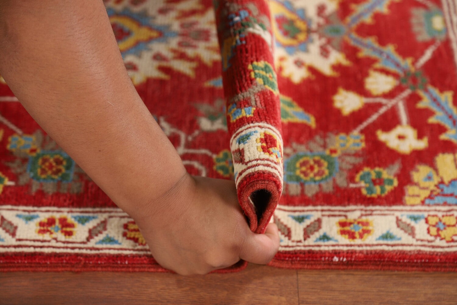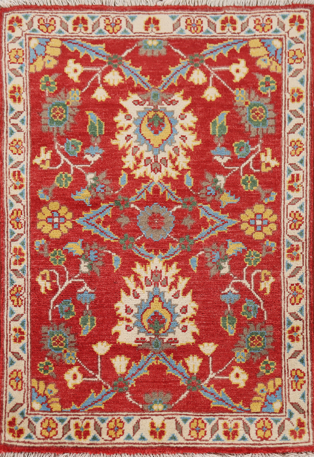 A Beautiful Genuine Pakistan Kazak rug is Hand Knotted by skillful weavers in Pakistan with 100% Wool Material. This rug is in New, First Quality condition. dimensions are 2' 11'' X 2' 0'' in foot and 89 X 61 in centimeter. the primary color is Red.
