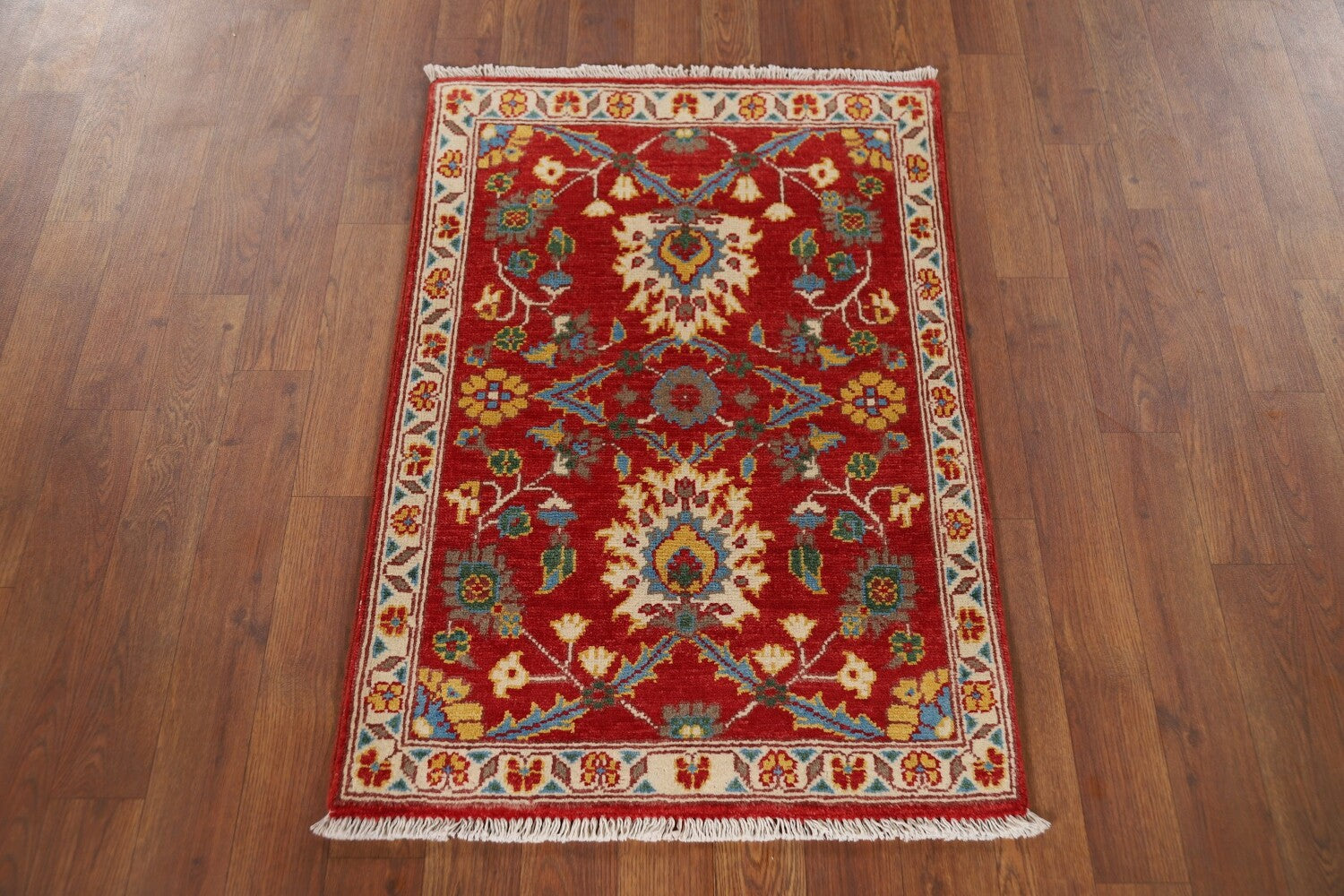 Handmade Floral Red Kazak Oriental Accent Rug 2x3