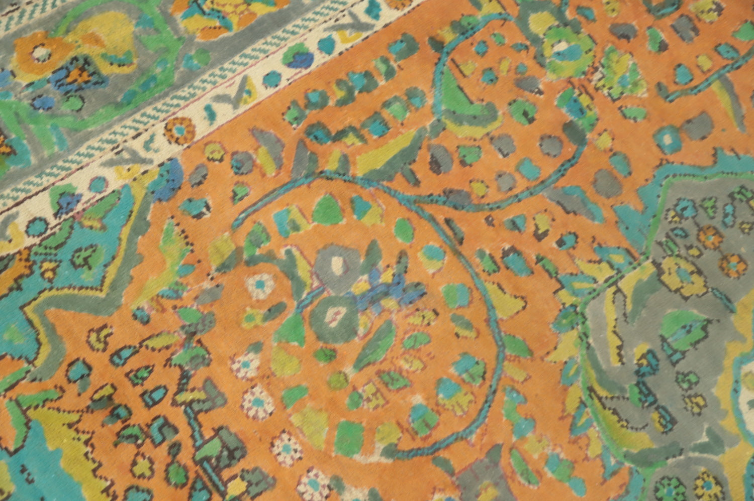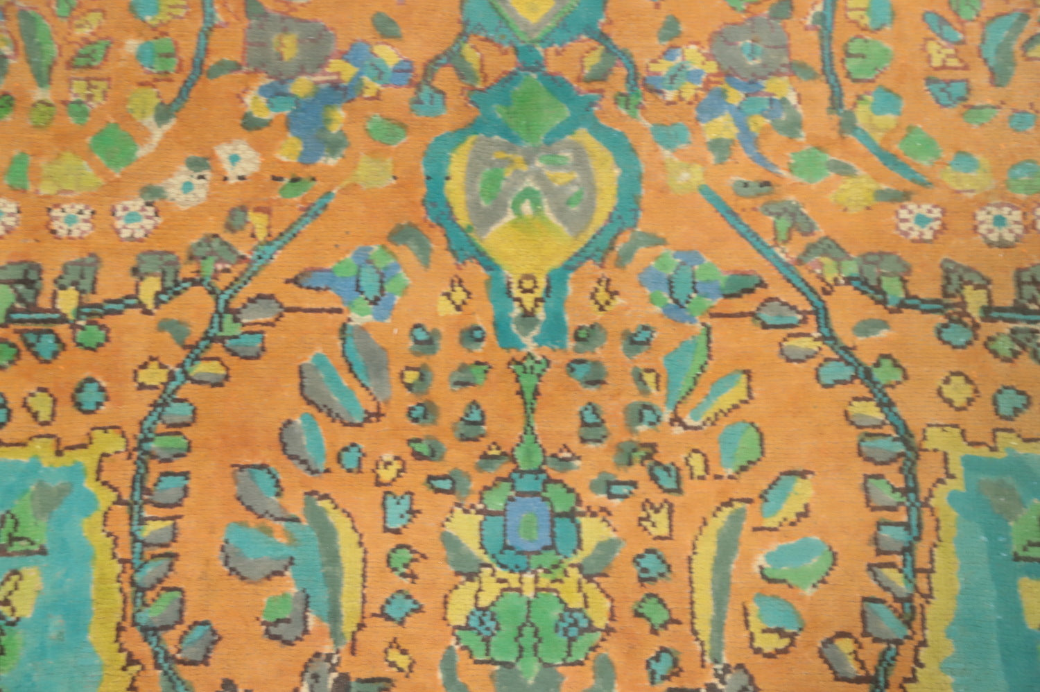 A Beautiful Genuine Persia ( Persia ) Tabriz rug is Hand Knotted by skillful weavers in Persia ( Persia ) with 100% Wool Material. This rug is in Very Good (Evenly Low Pile) condition. dimensions are 9' 2'' X 6' 3'' in foot and 279 X 191 in centimeter. the primary color is Oranges & Rust.