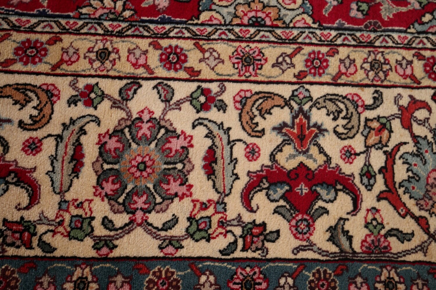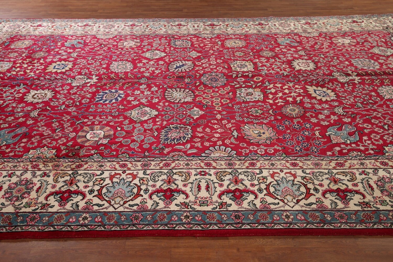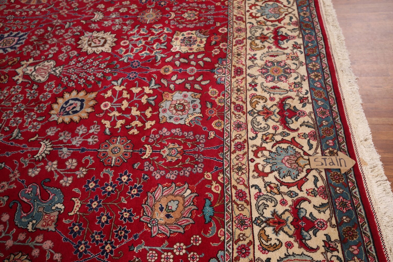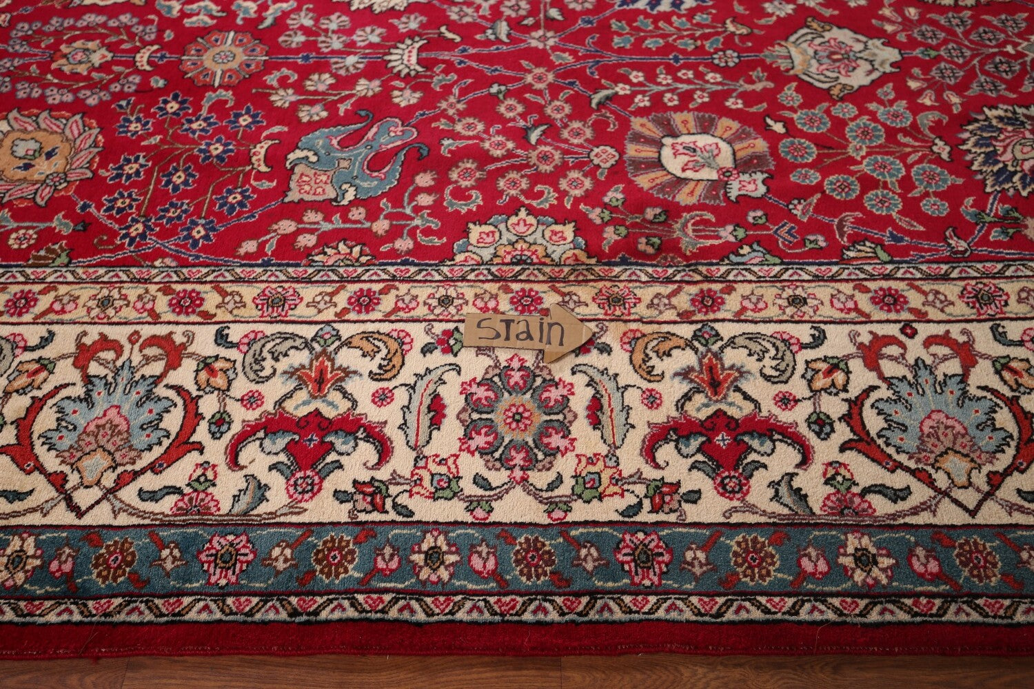A Beautiful Genuine Persia ( Persia ) Tabriz rug is Hand Knotted by skillful weavers in Persia ( Persia ) with 100% Wool Material. This rug is in Very Good (Stain) condition. dimensions are 15' 8'' X 9' 9'' in foot and 478 X 297 in centimeter. the primary color is Red.