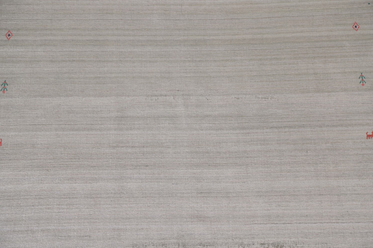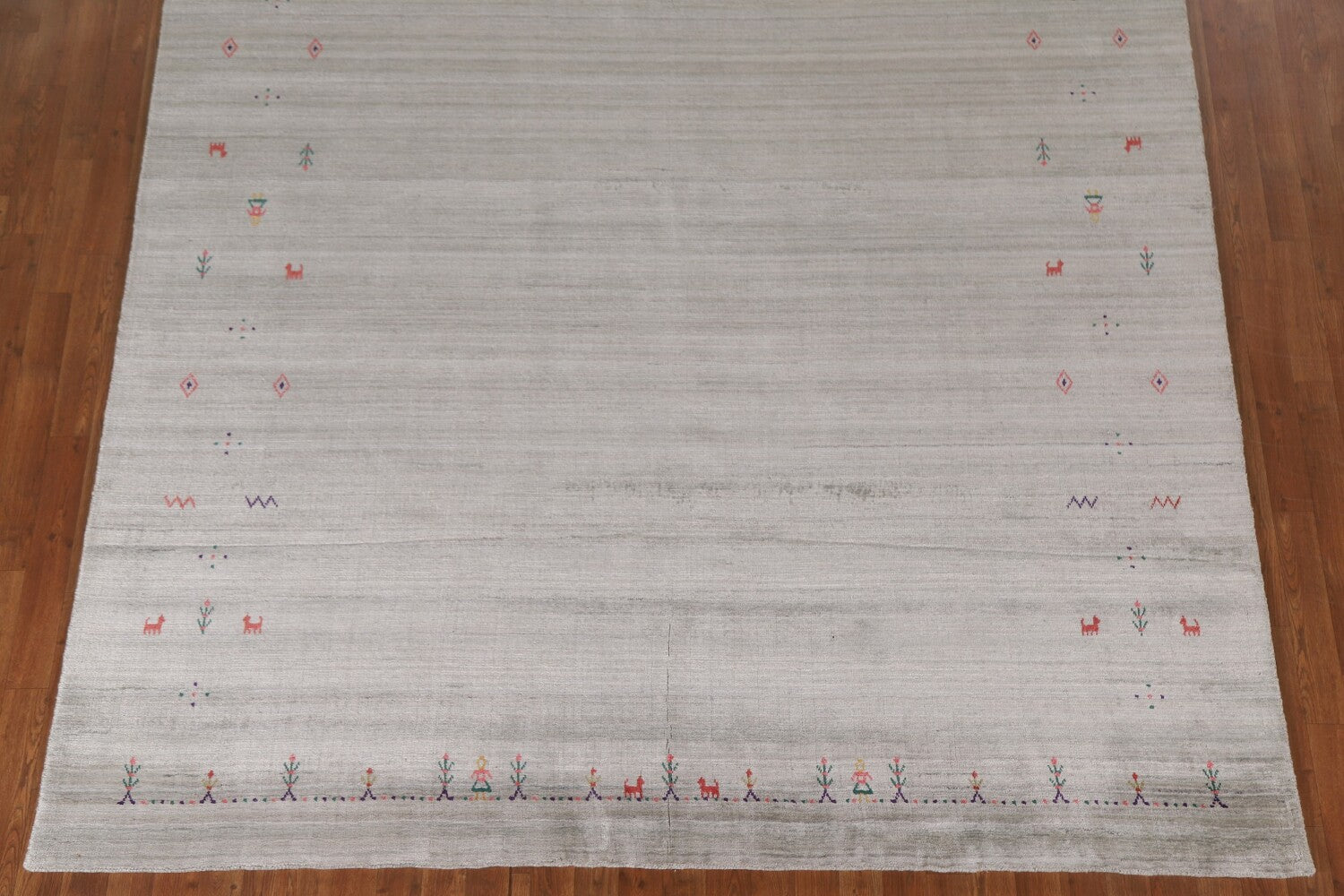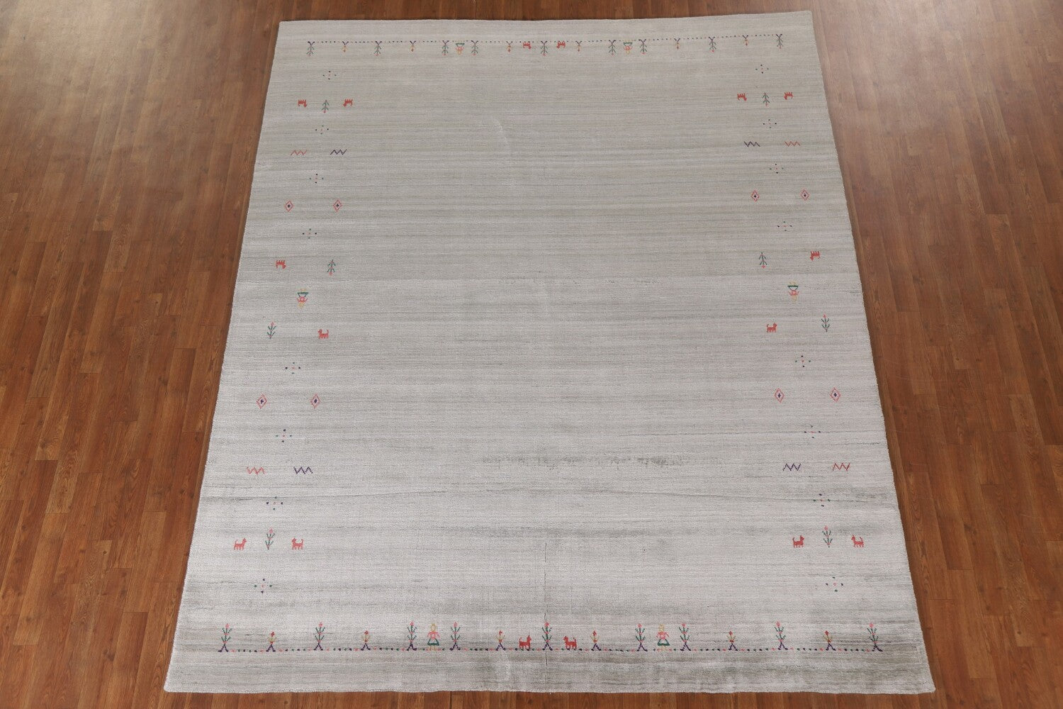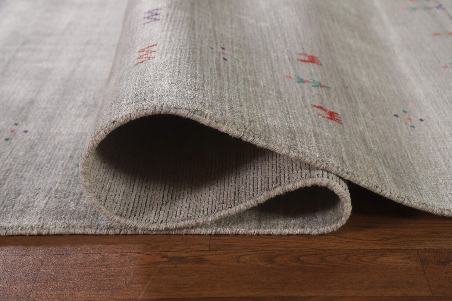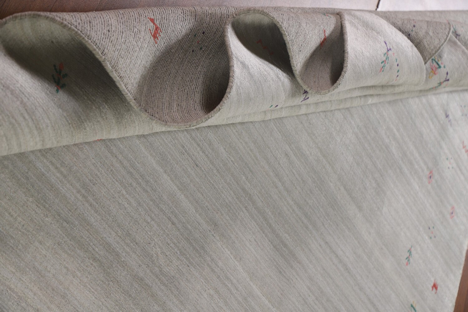 A Beautiful Genuine India Gabbeh rug is Hand Knotted by skillful weavers in India with 100% Wool Material. This rug is in New, First Quality condition. dimensions are 9' 9'' X 7' 10'' in foot and 297 X 239 in centimeter. the primary color is Greys & Charcoal.