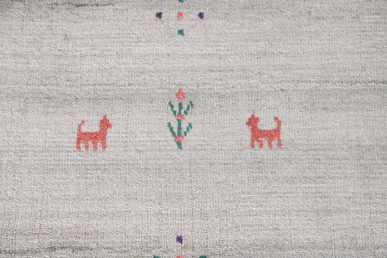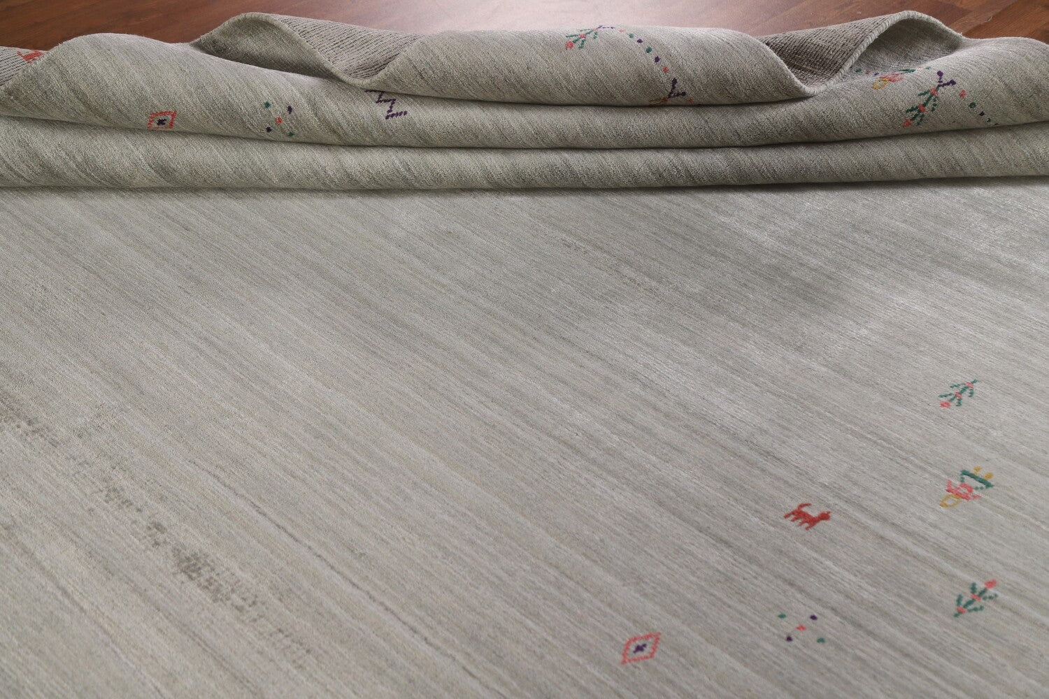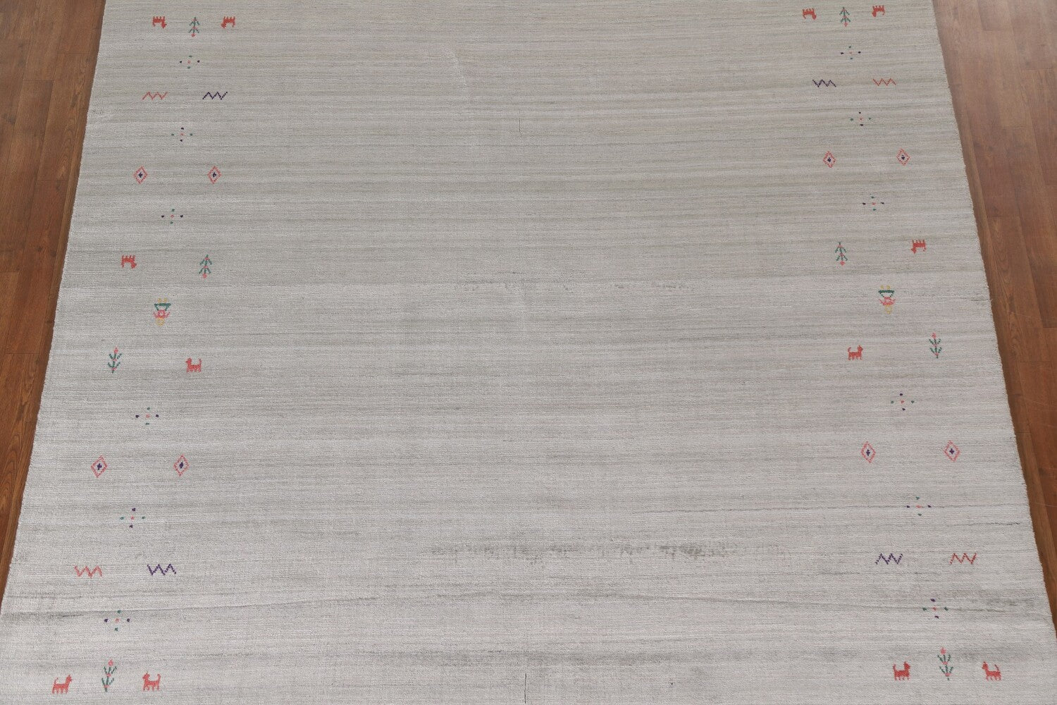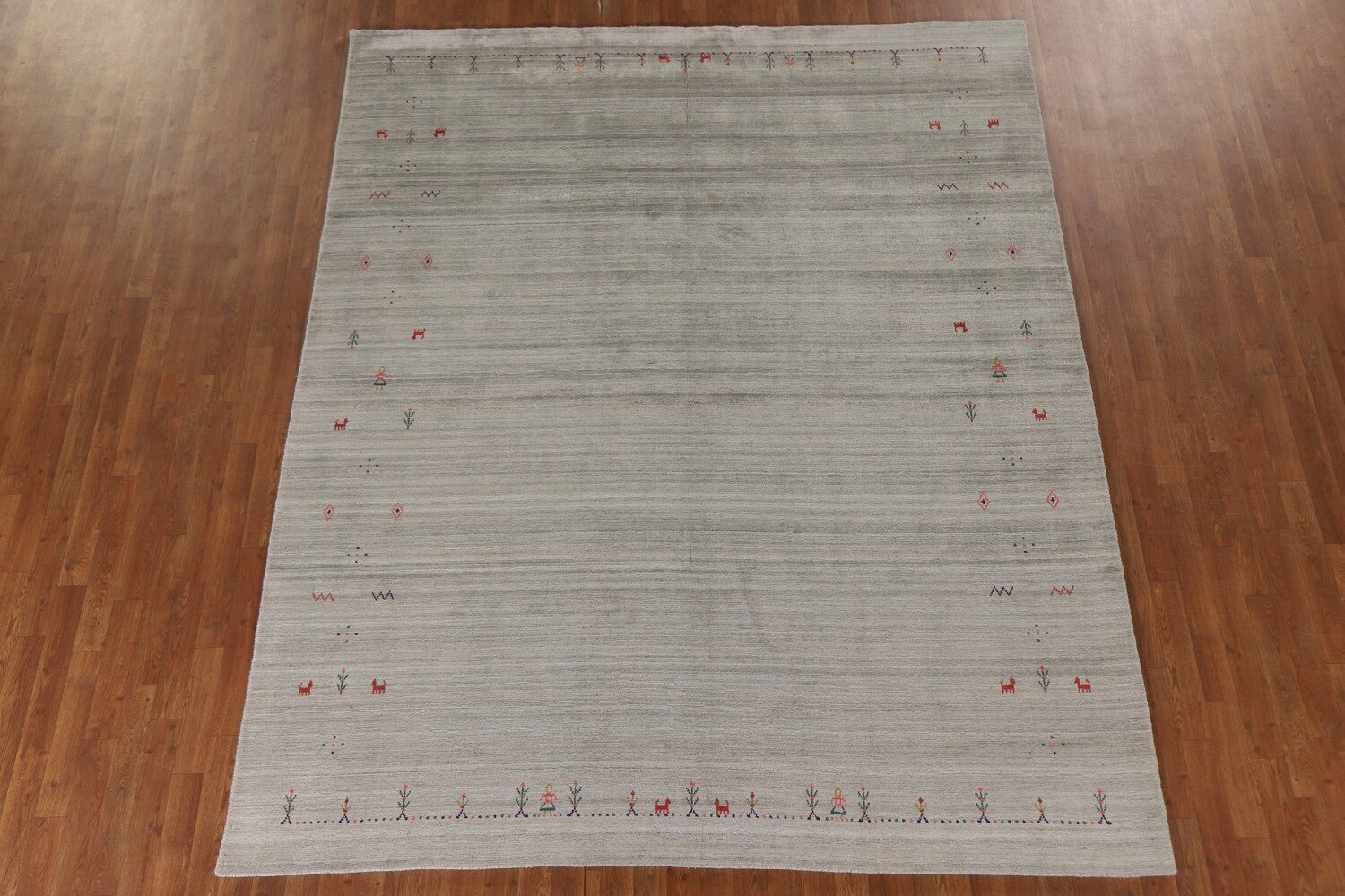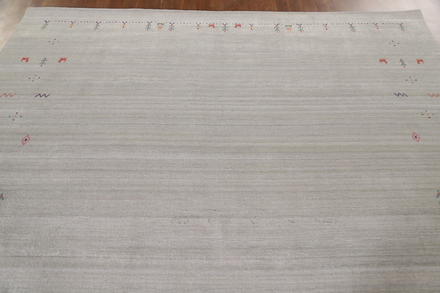 A Beautiful Genuine India Gabbeh rug is Hand Knotted by skillful weavers in India with 100% Wool Material. This rug is in New, First Quality condition. dimensions are 9' 9'' X 7' 10'' in foot and 297 X 239 in centimeter. the primary color is Greys & Charcoal.