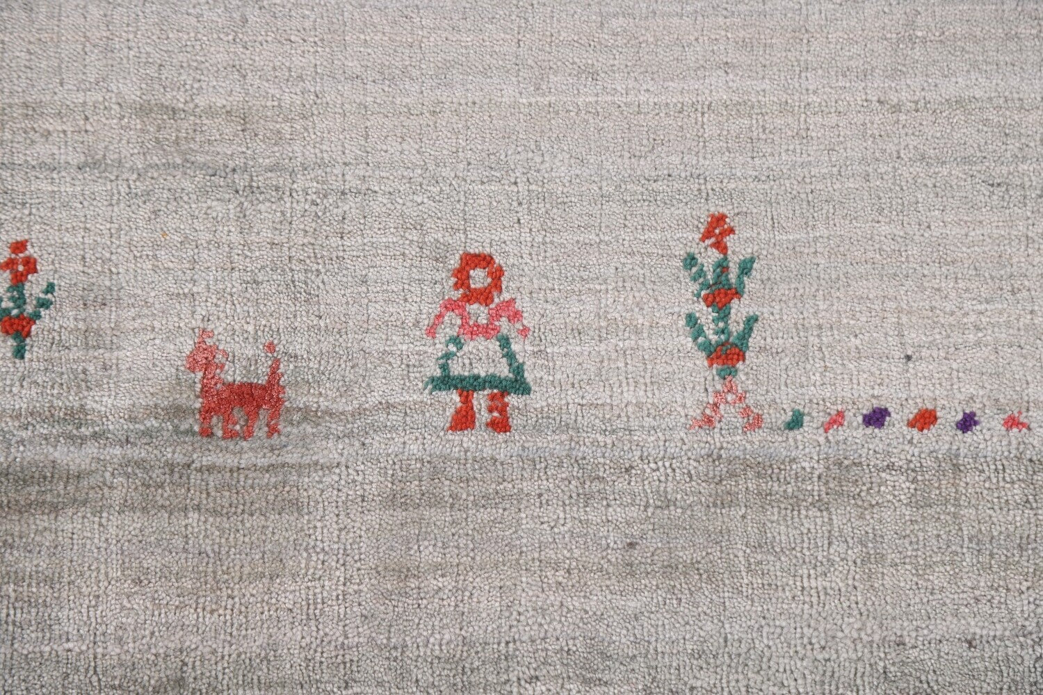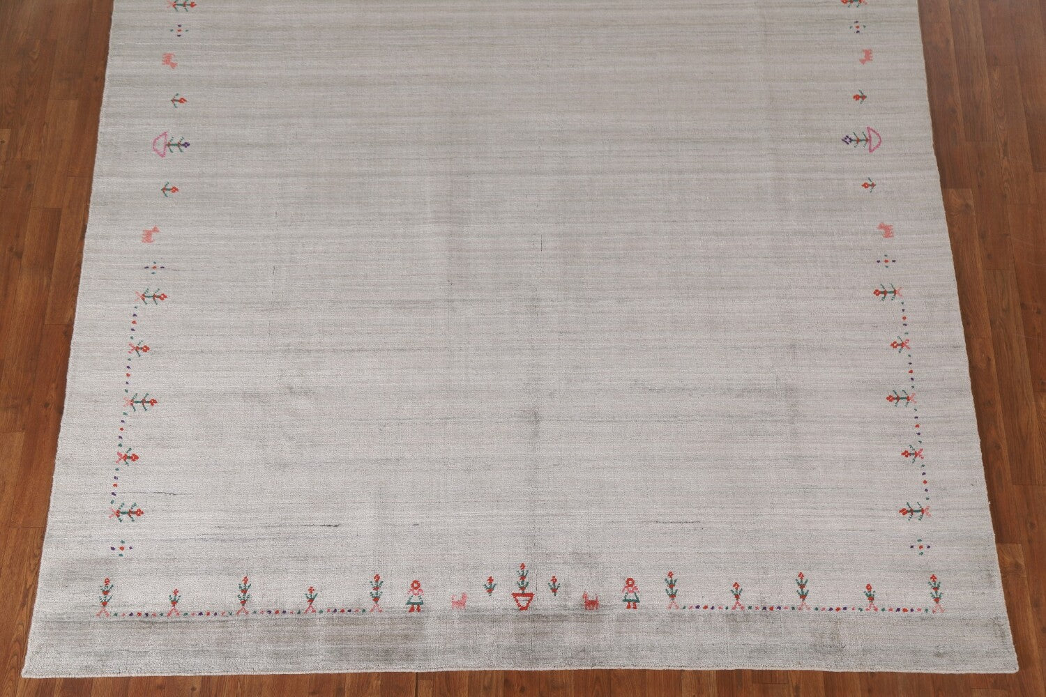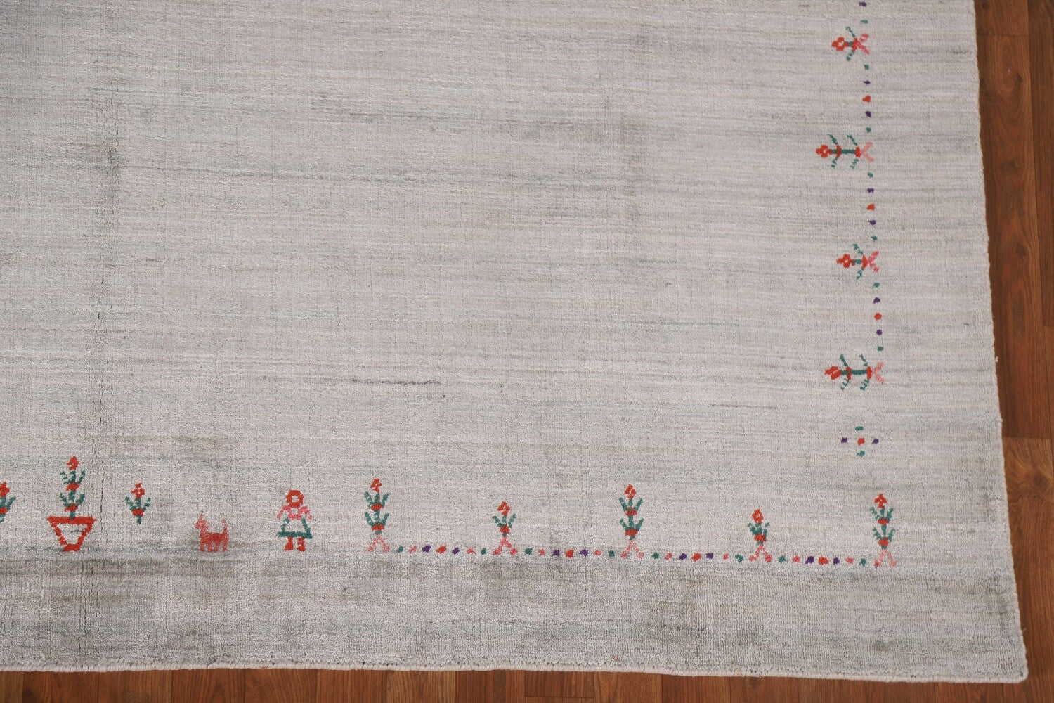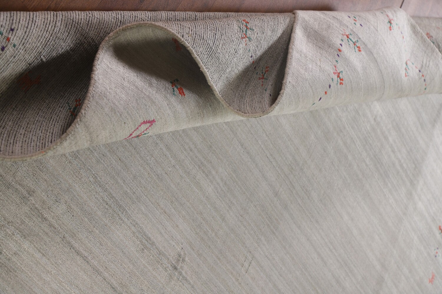 A Beautiful Genuine India Gabbeh rug is Hand Knotted by skillful weavers in India with 100% Wool Material. This rug is in New, First Quality condition. dimensions are 9' 8'' X 7' 7'' in foot and 295 X 231 in centimeter. the primary color is Beige & Ivories.