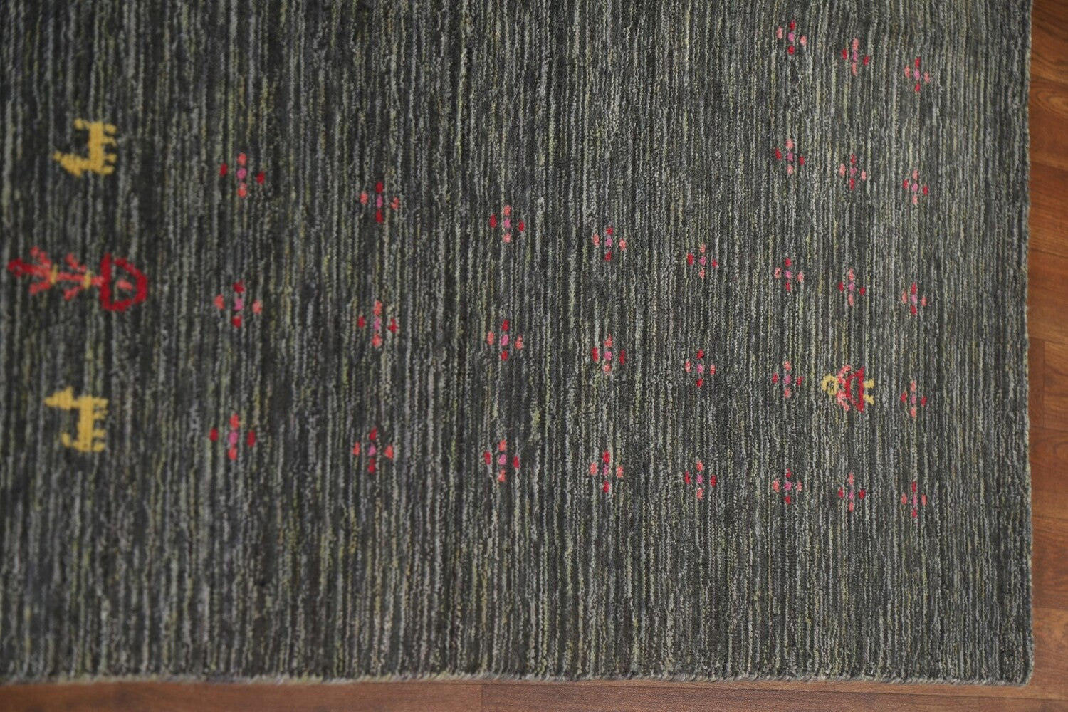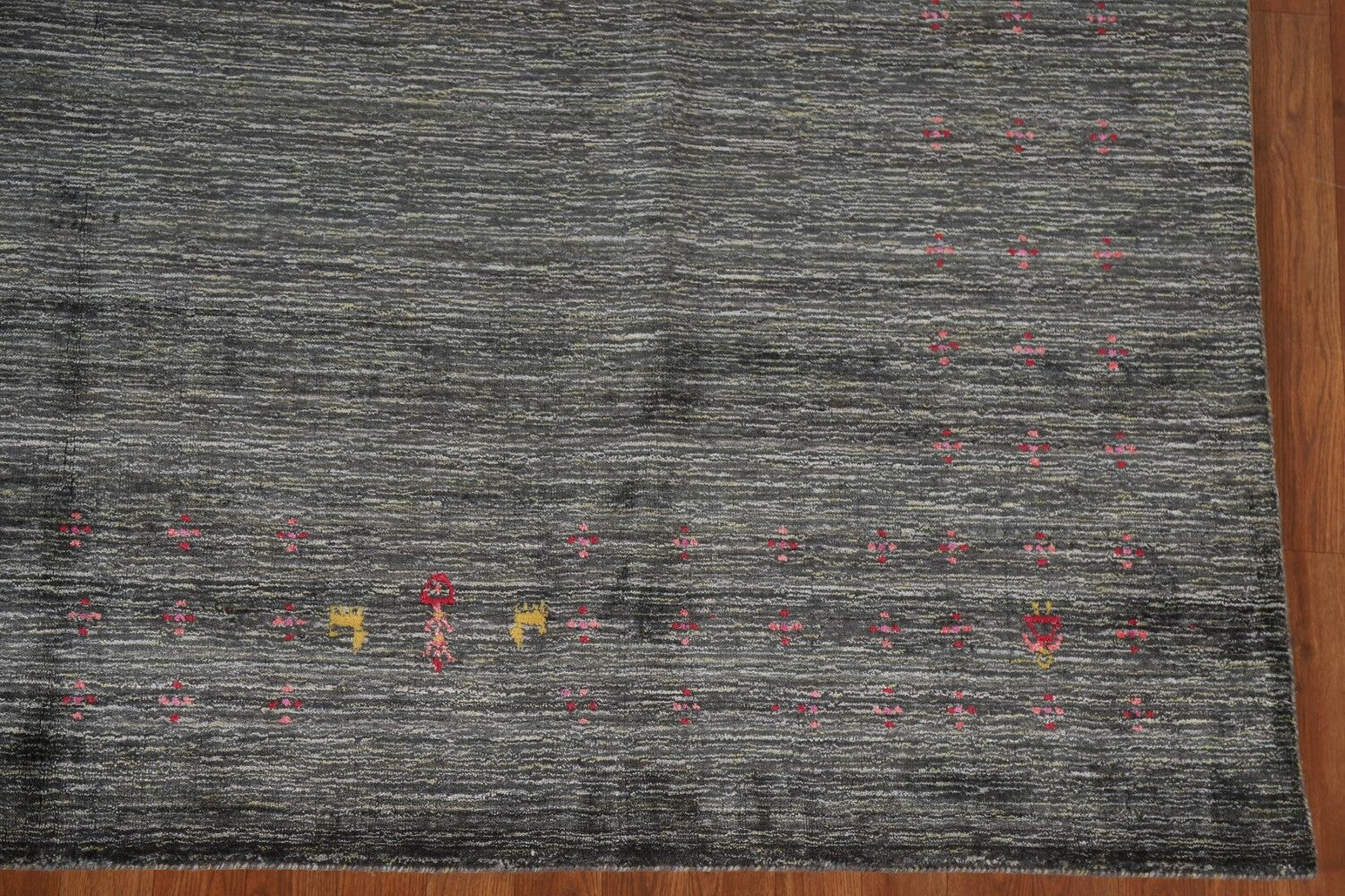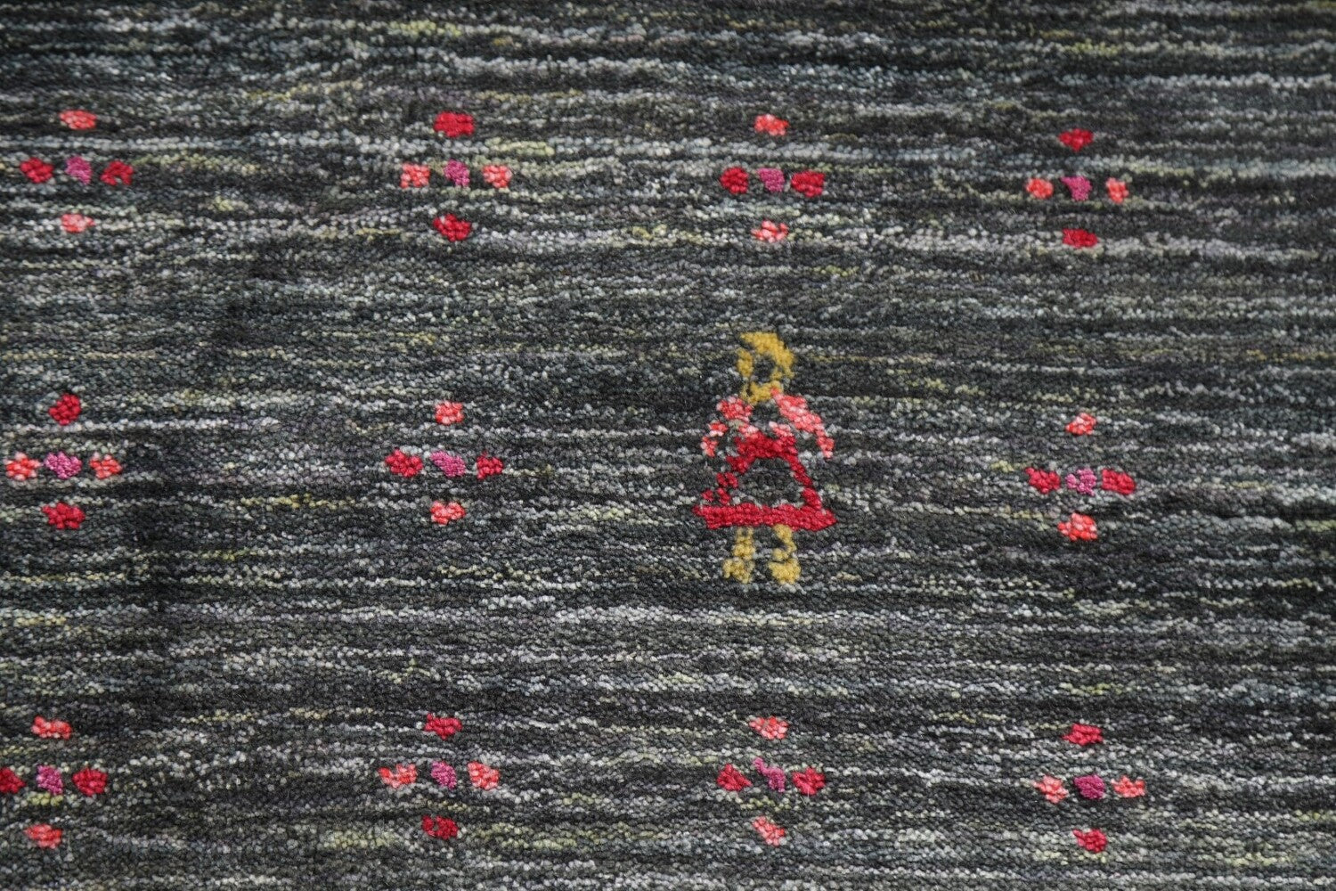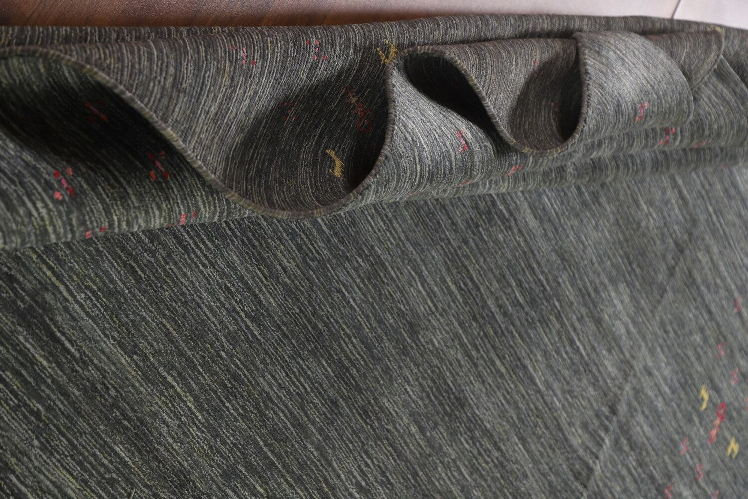 A Beautiful Genuine India Gabbeh rug is Hand Knotted by skillful weavers in India with 100% Wool Material. This rug is in New, First Quality condition. dimensions are 9' 10'' X 7' 11'' in foot and 300 X 241 in centimeter. the primary color is Greys & Charcoal.