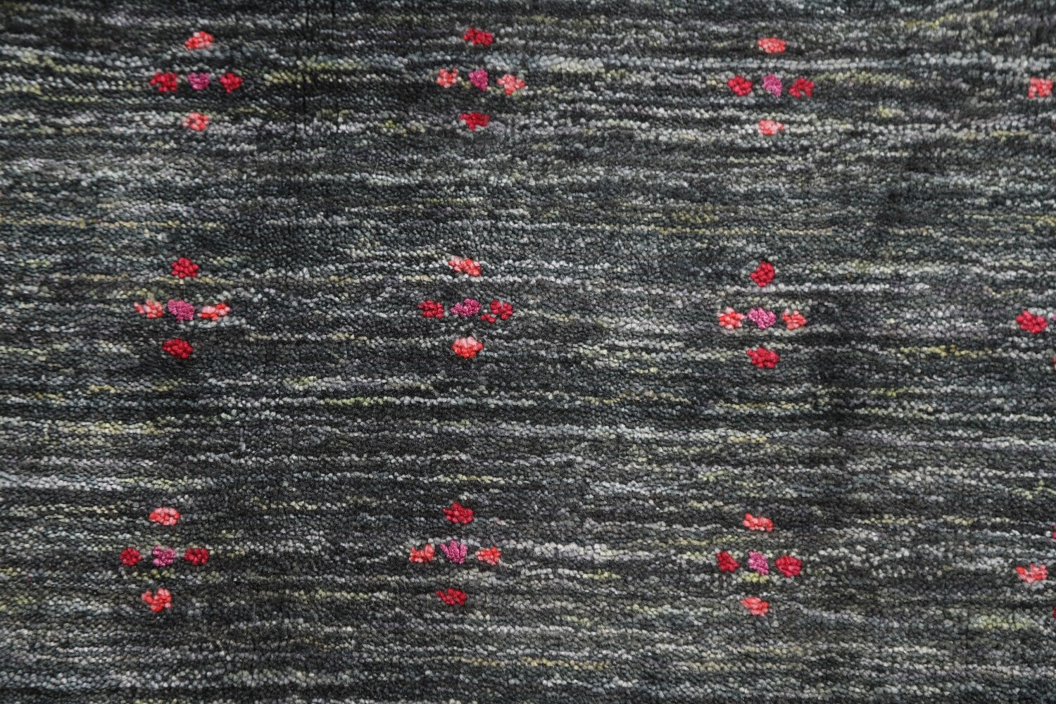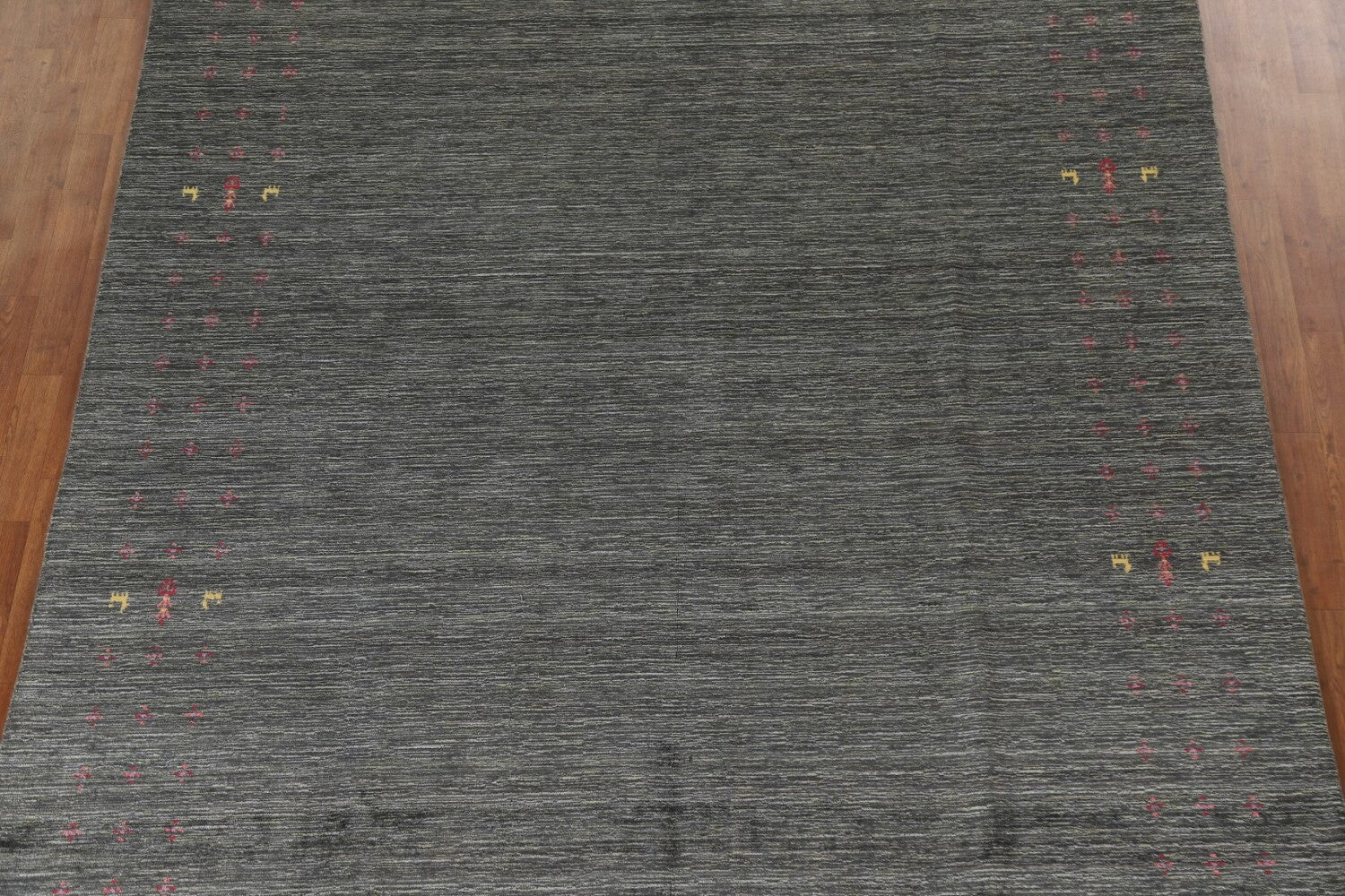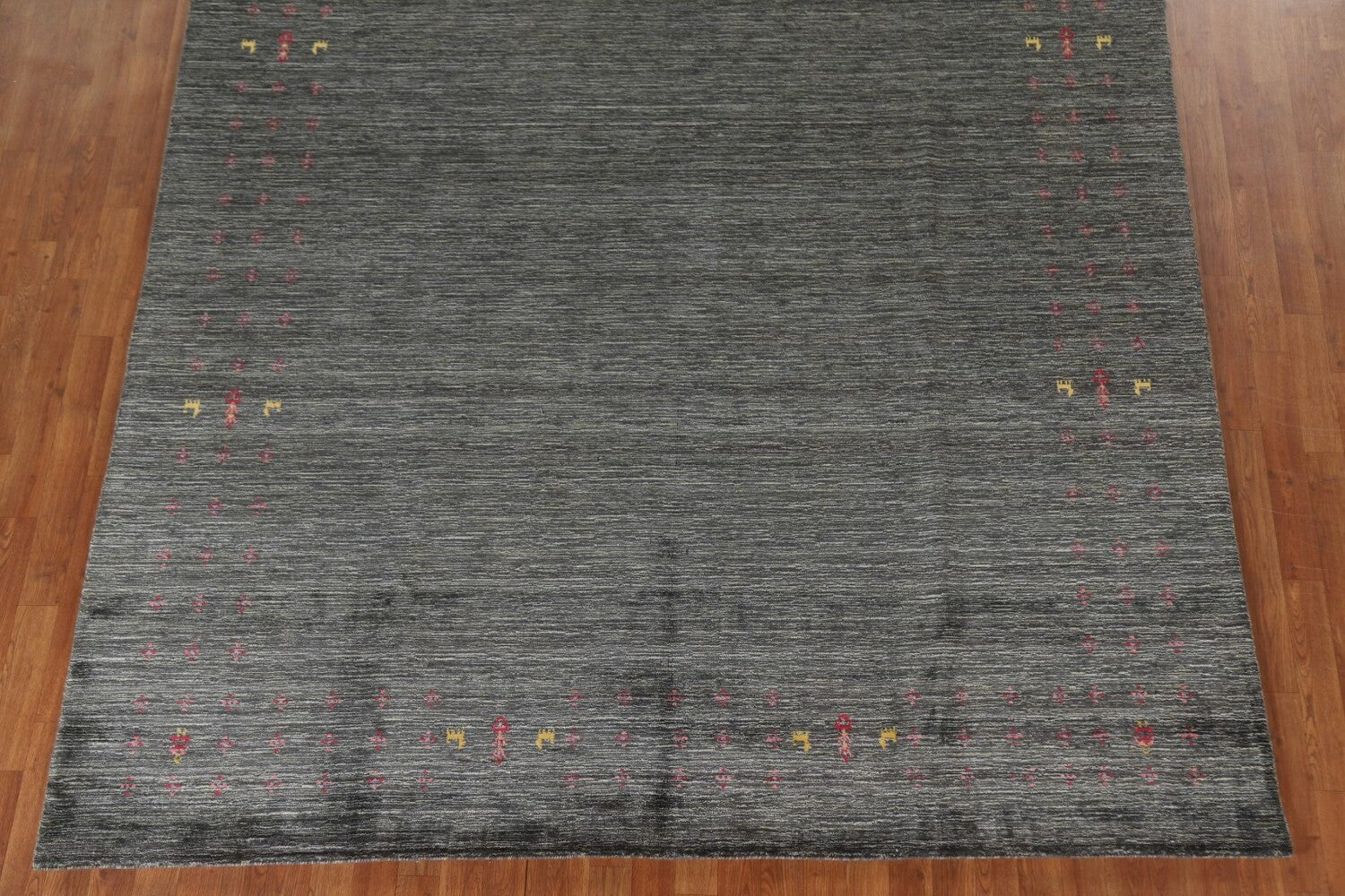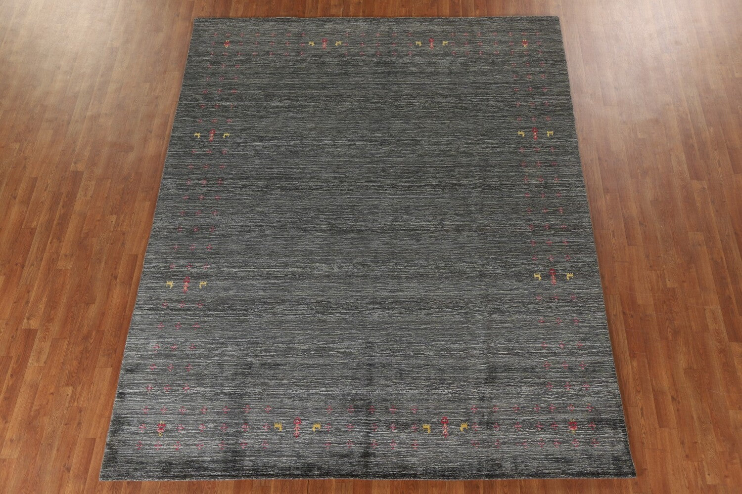 A Beautiful Genuine India Gabbeh rug is Hand Knotted by skillful weavers in India with 100% Wool Material. This rug is in New, First Quality condition. dimensions are 9' 10'' X 7' 11'' in foot and 300 X 241 in centimeter. the primary color is Greys & Charcoal.
