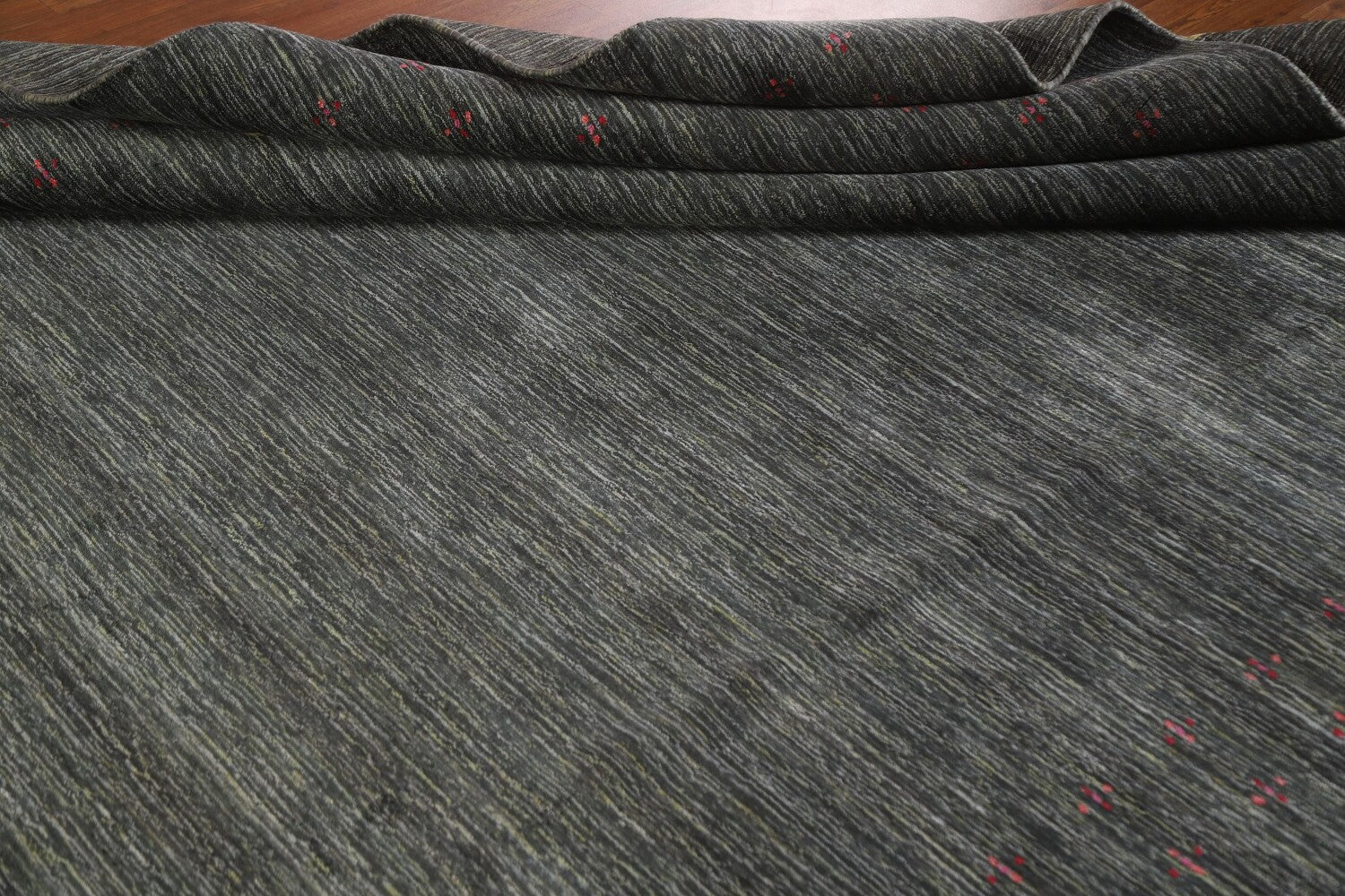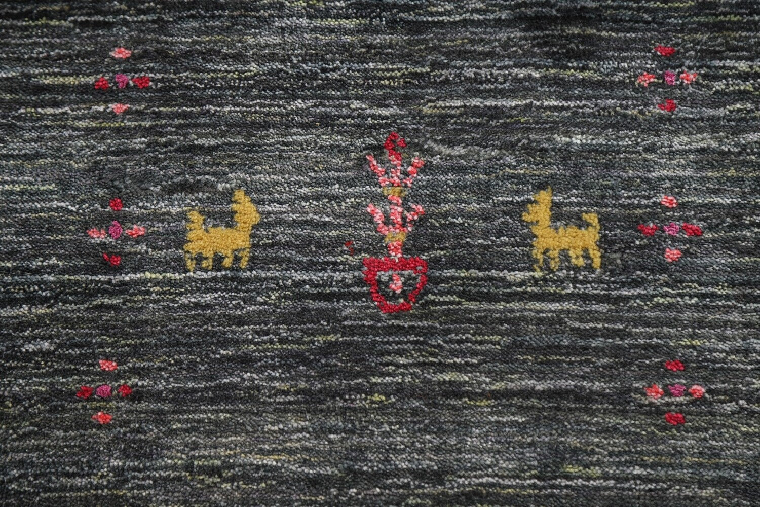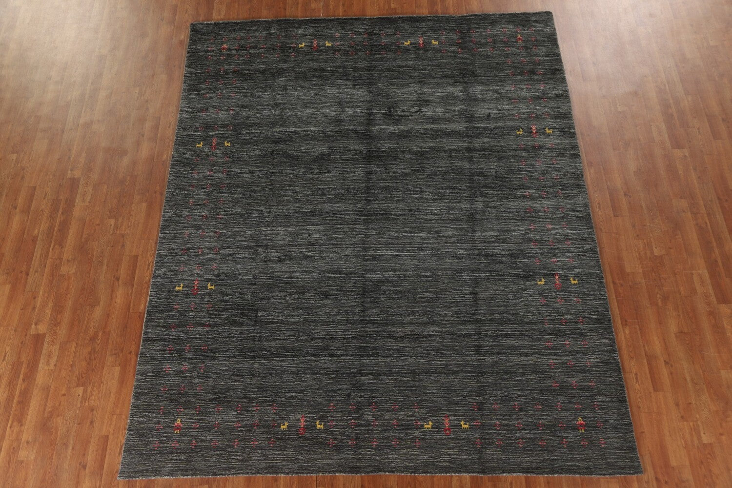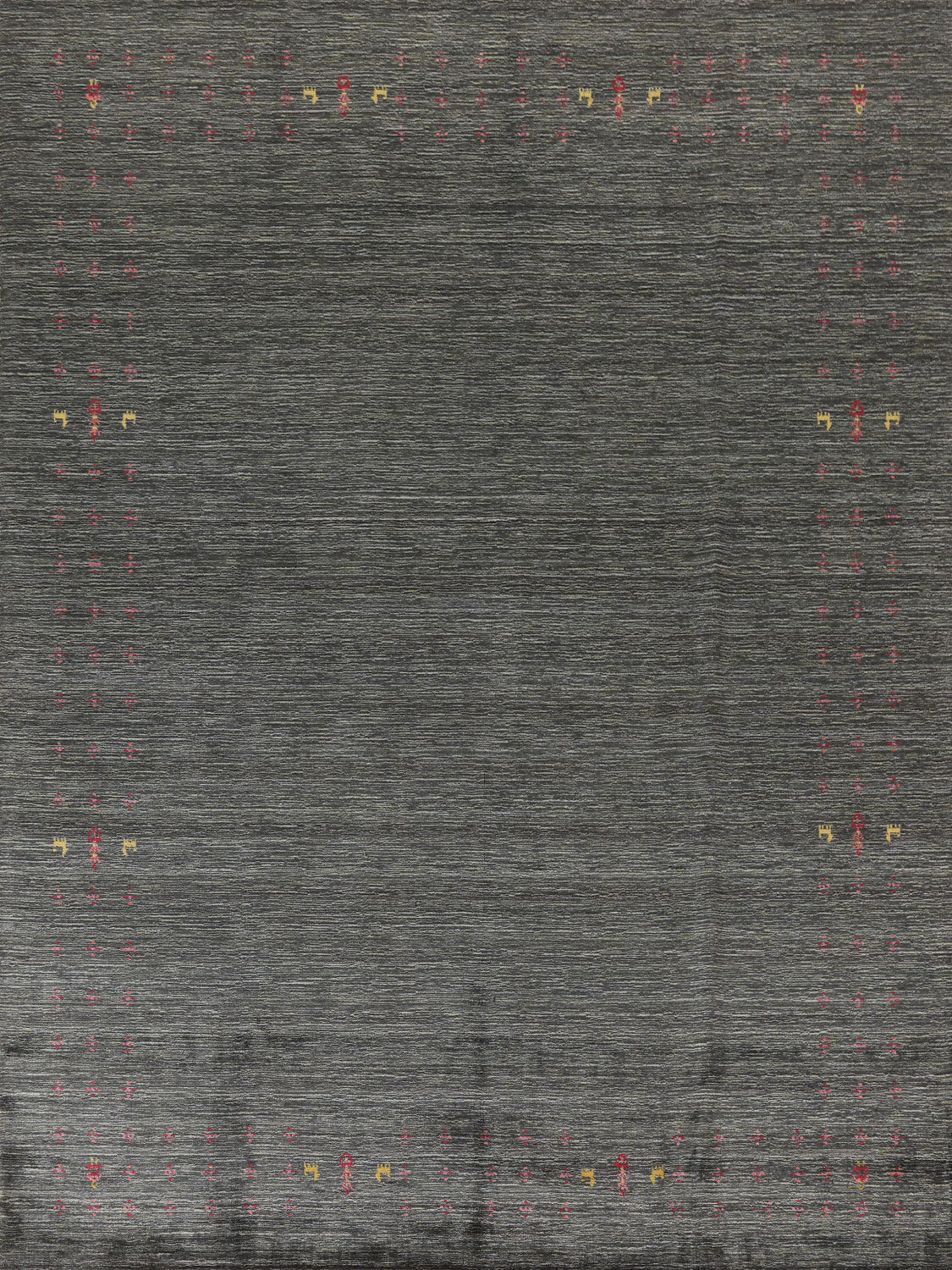 A Beautiful Genuine India Gabbeh rug is Hand Knotted by skillful weavers in India with 100% Wool Material. This rug is in New, First Quality condition. dimensions are 9' 10'' X 7' 11'' in foot and 300 X 241 in centimeter. the primary color is Greys & Charcoal.