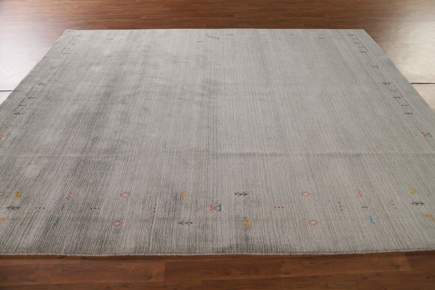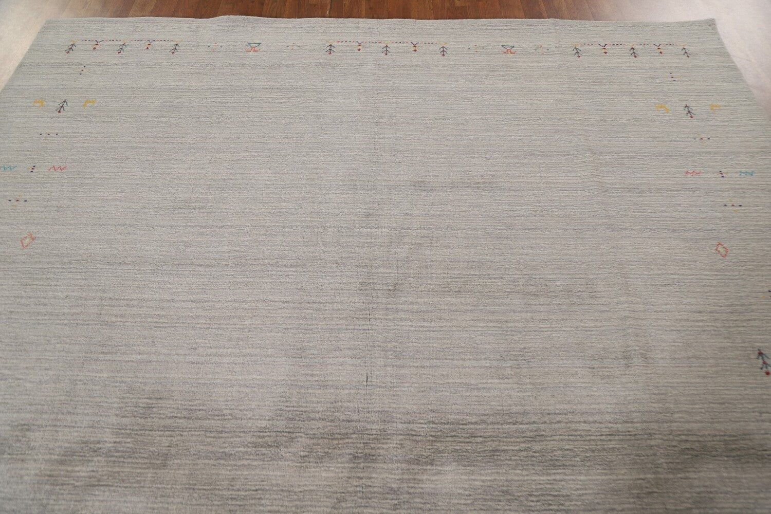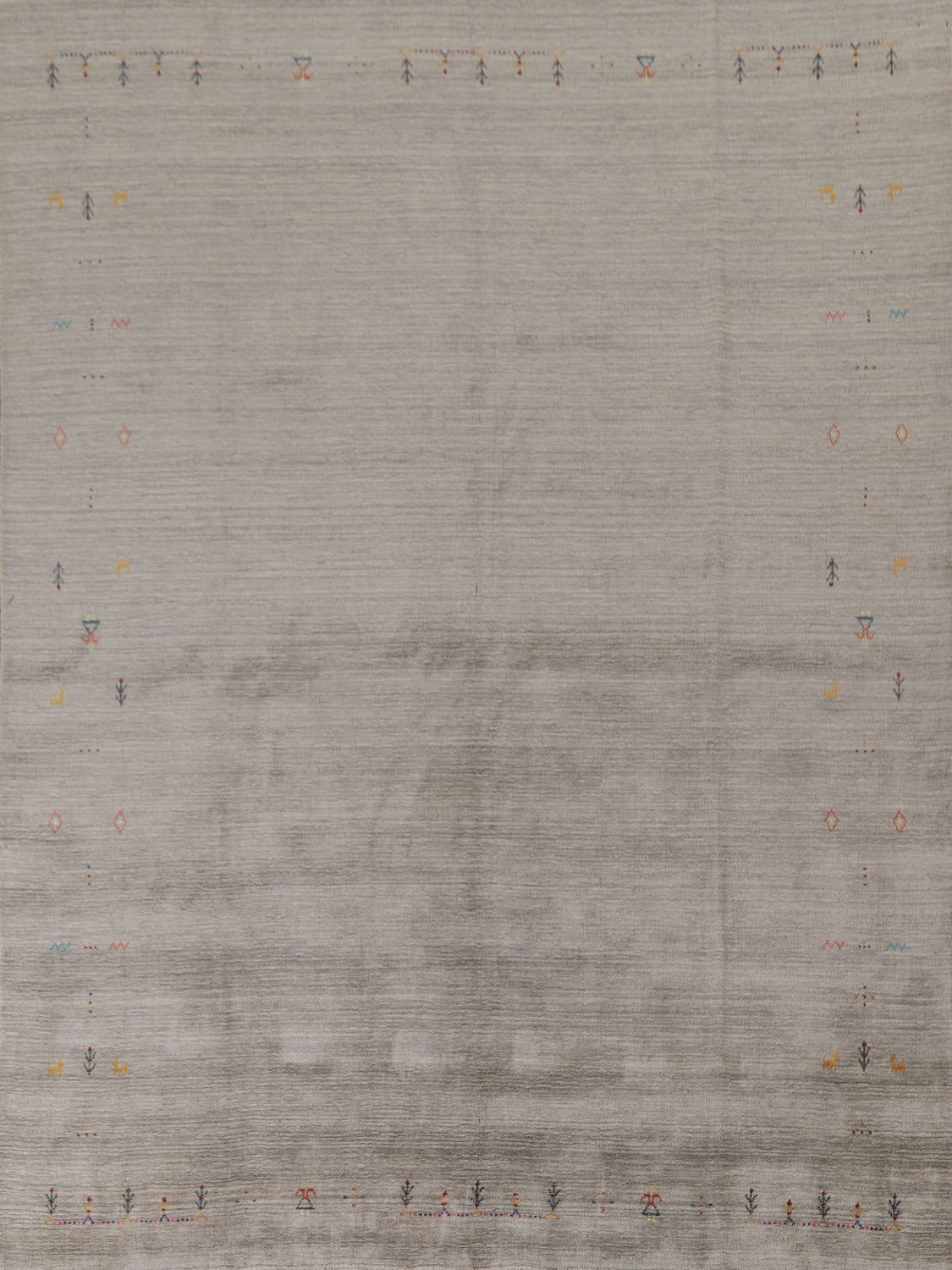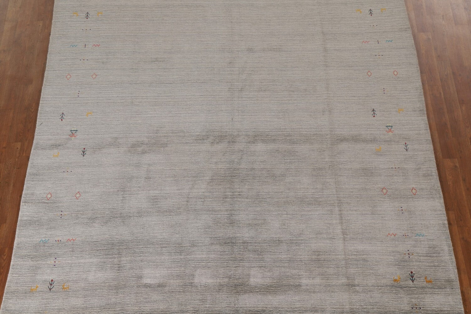 A Beautiful Genuine India Gabbeh rug is Hand Knotted by skillful weavers in India with 100% Wool Material. This rug is in condition. dimensions are 9' 7'' X 8' 0'' in foot and 292 X 244 in centimeter. the primary color is Beige & Ivories.