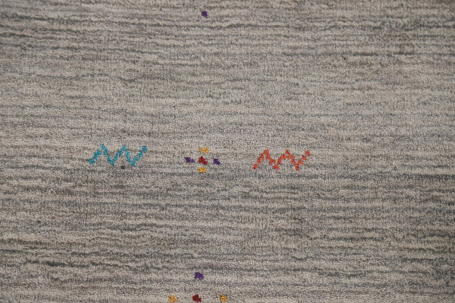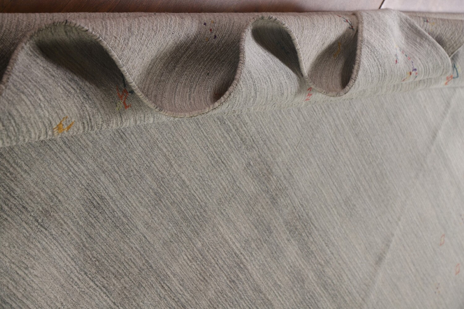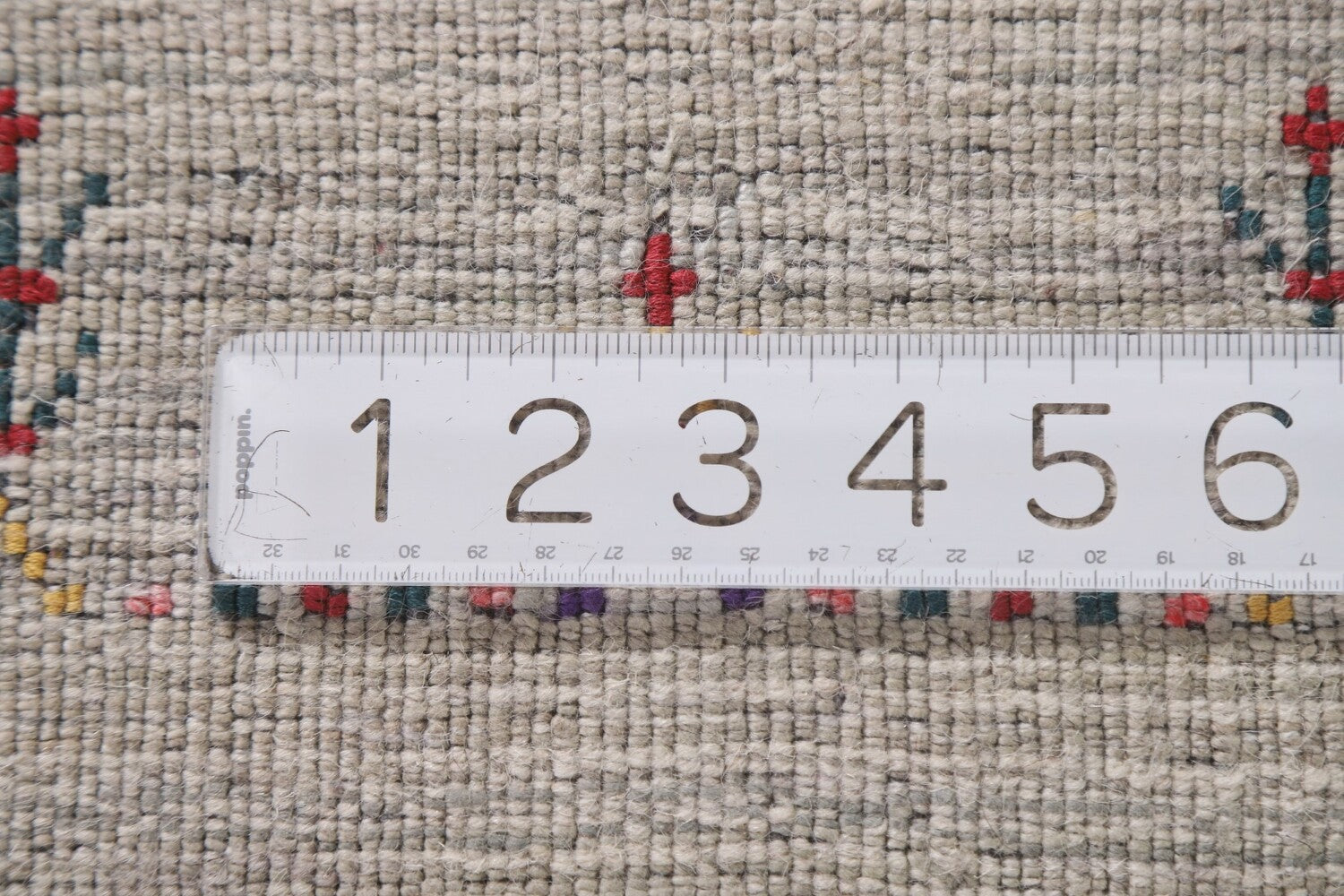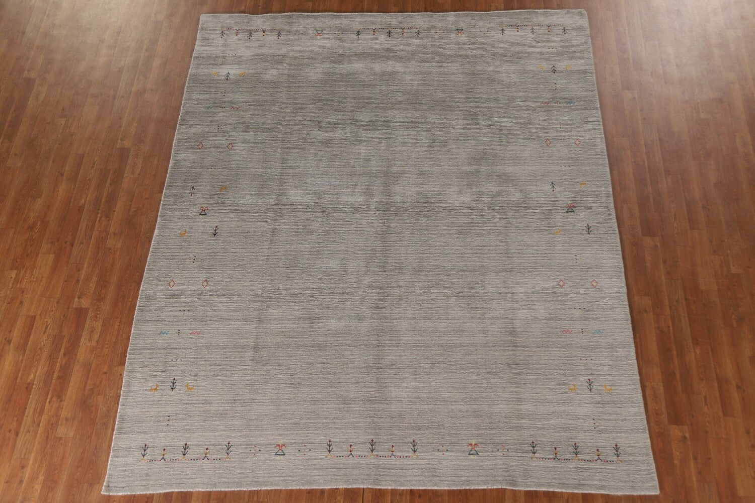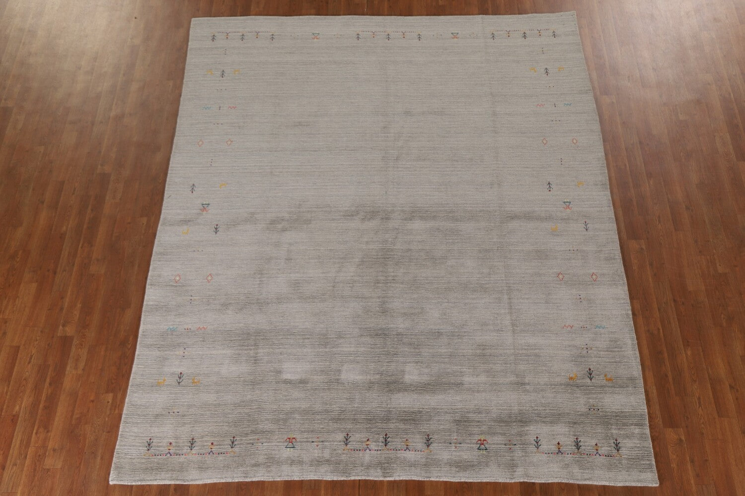 A Beautiful Genuine India Gabbeh rug is Hand Knotted by skillful weavers in India with 100% Wool Material. This rug is in condition. dimensions are 9' 7'' X 8' 0'' in foot and 292 X 244 in centimeter. the primary color is Beige & Ivories.