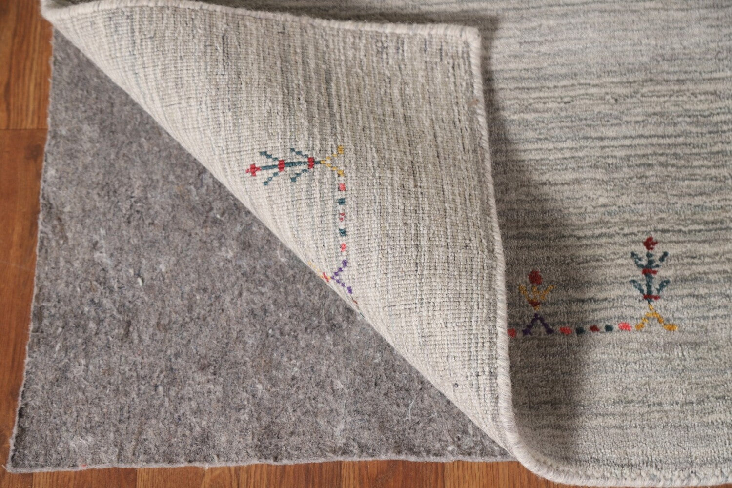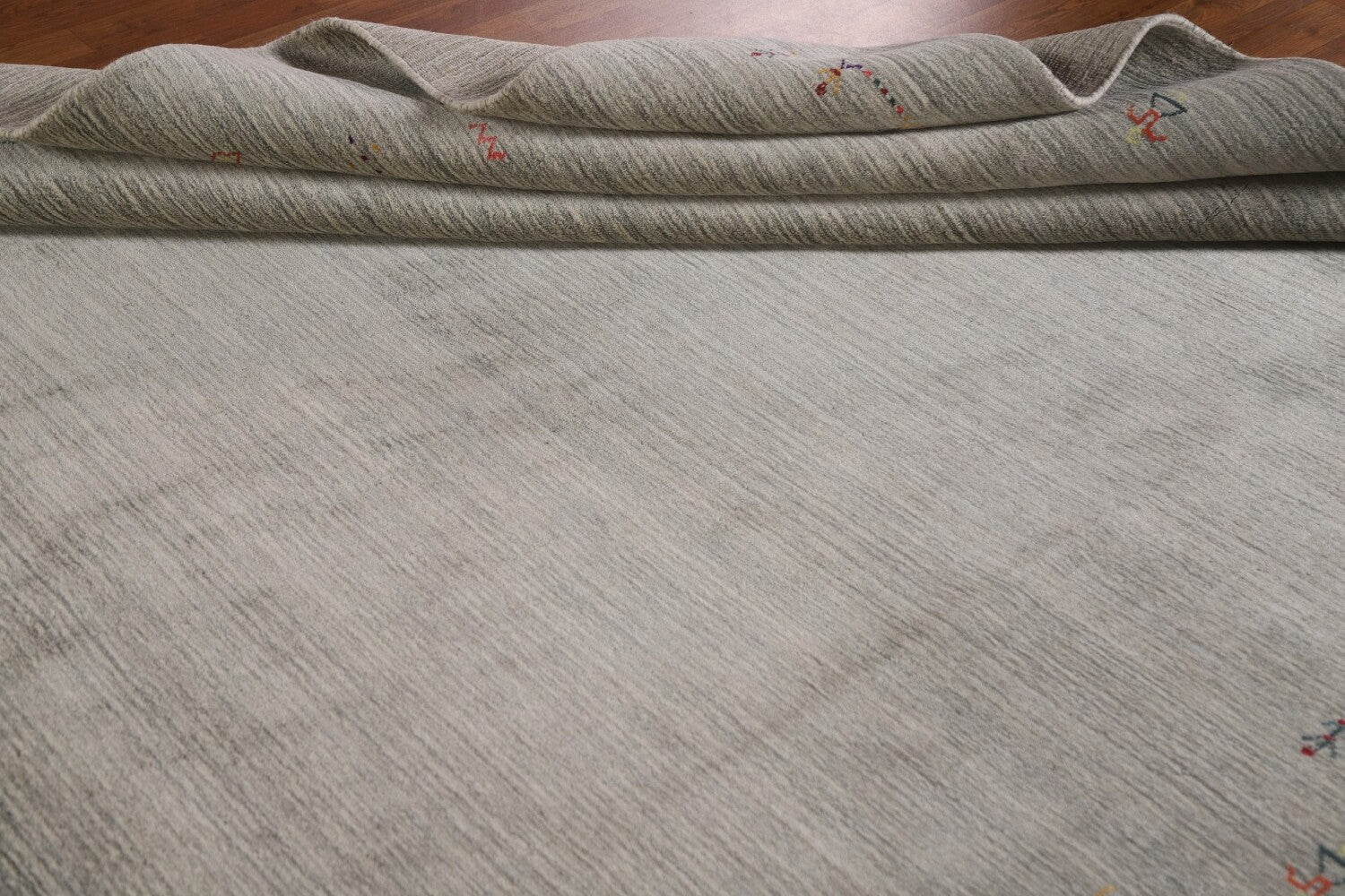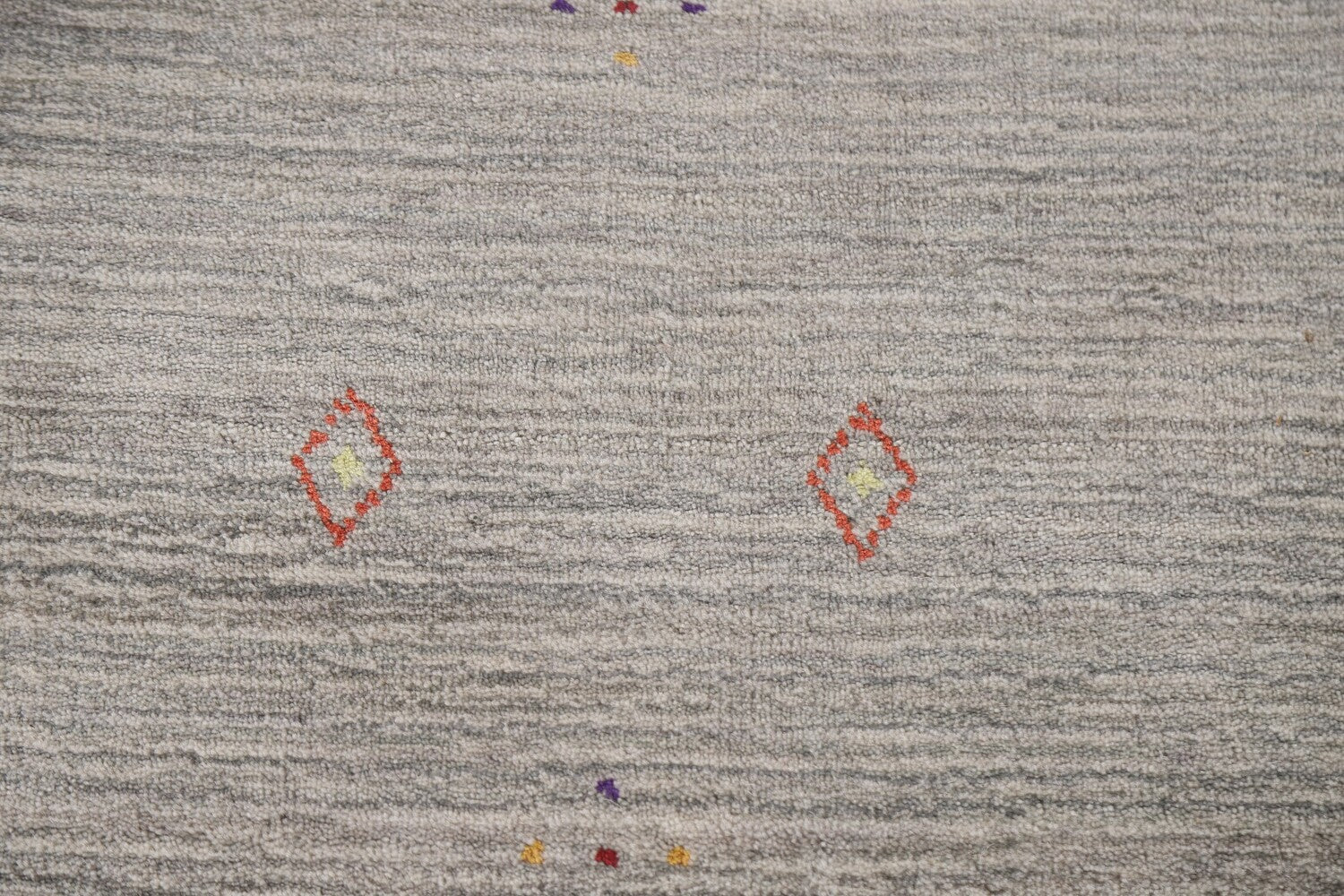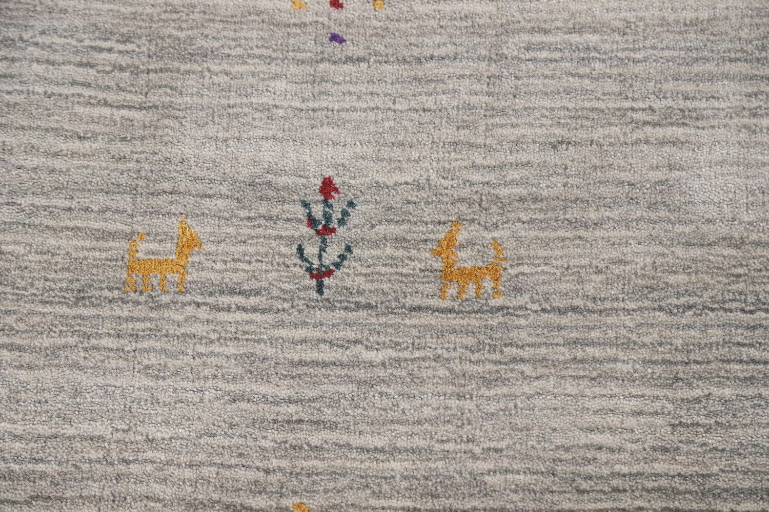 A Beautiful Genuine India Gabbeh rug is Hand Knotted by skillful weavers in India with 100% Wool Material. This rug is in condition. dimensions are 9' 7'' X 8' 0'' in foot and 292 X 244 in centimeter. the primary color is Beige & Ivories.
